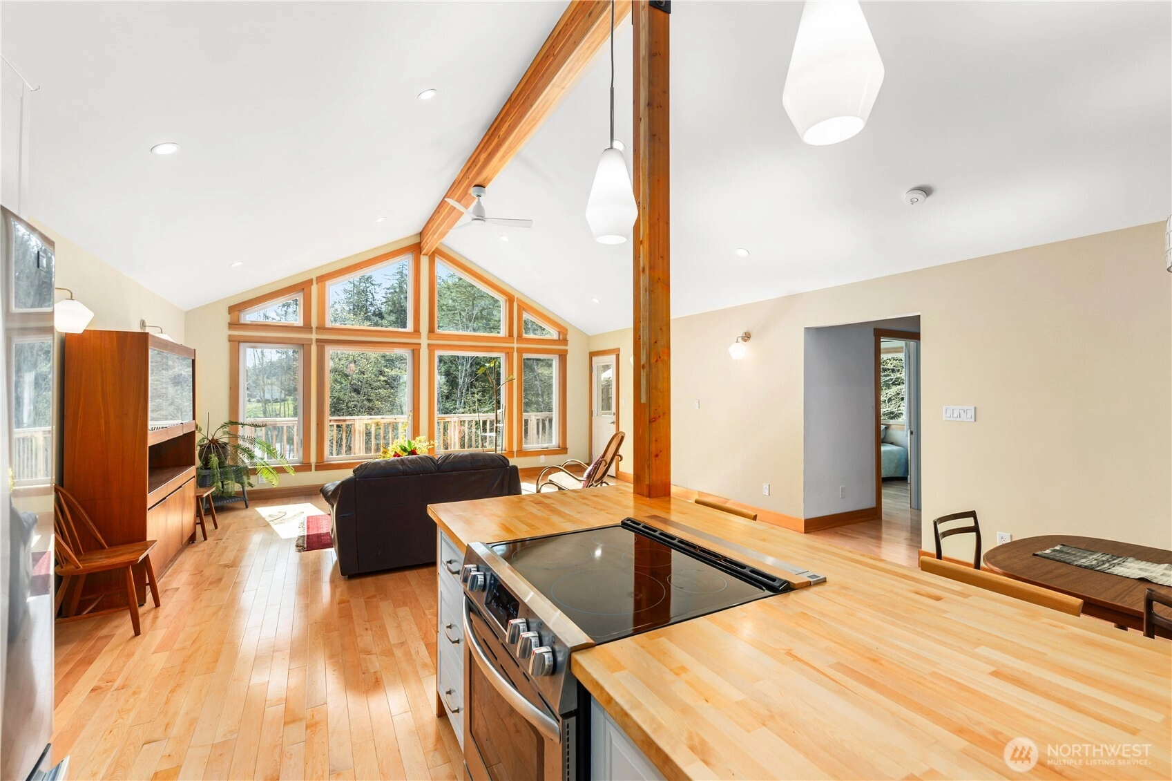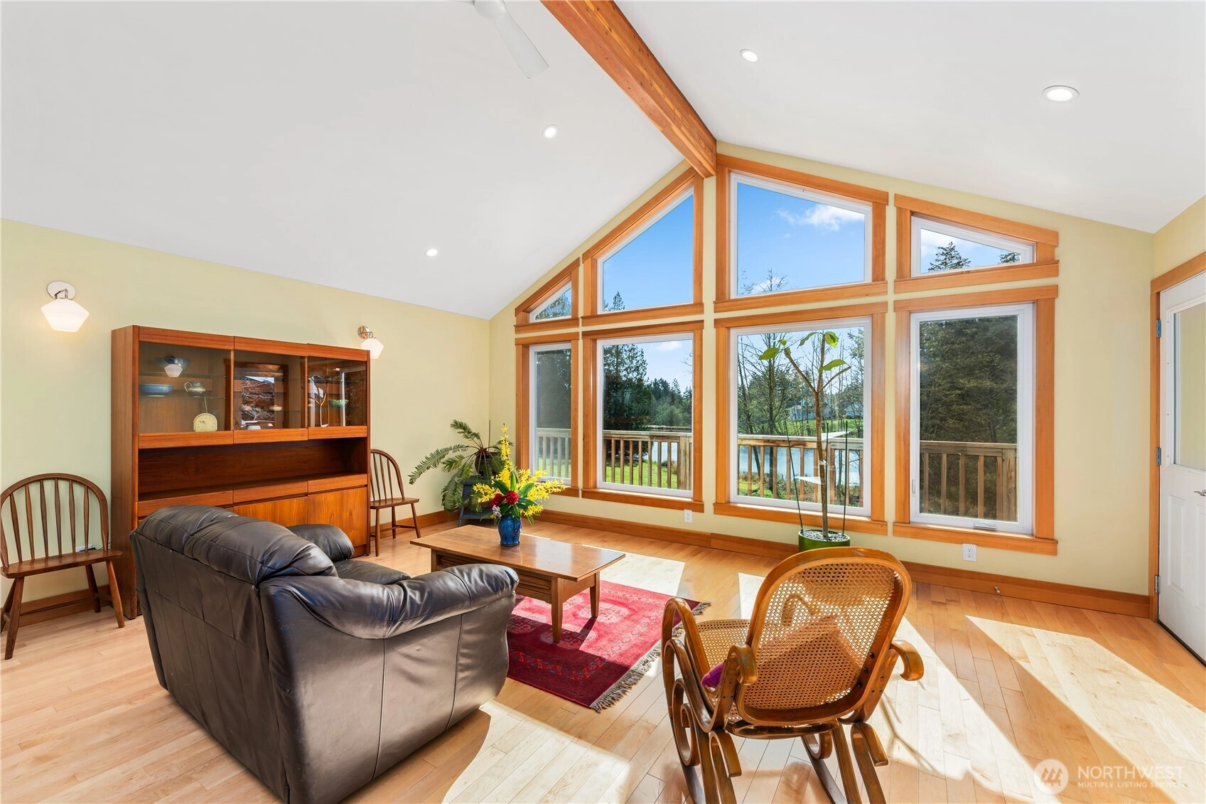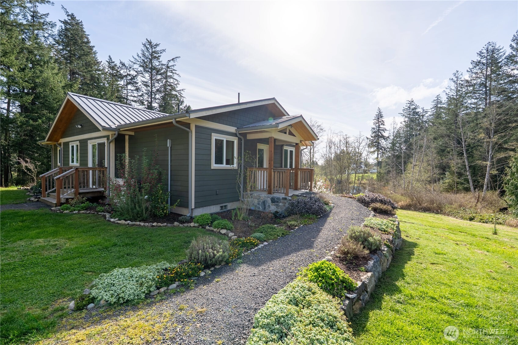 This inviting 1,368 sq. ft. lakefront home offers two bedrooms and one and three-quarter baths in a spacious great room design. Set on 5.5± acres with coveted south-facing exposure, the home is bathed in natural light and showcases stunning views of the lake. A large fenced garden with orchard provides a perfect setting for those who love to grow and harvest, while the 1,380 sq. ft. garage/shop with attached studio or office creates abundant space for work, hobbies, or storage. A charming detached studio adds even more versatility—ideal as a guest retreat or art space Private well, a 4-bedroom septic system, and serene mix of woods and meadow, this property blends comfort, functionality, and natural beauty into a rare and peaceful retreat.