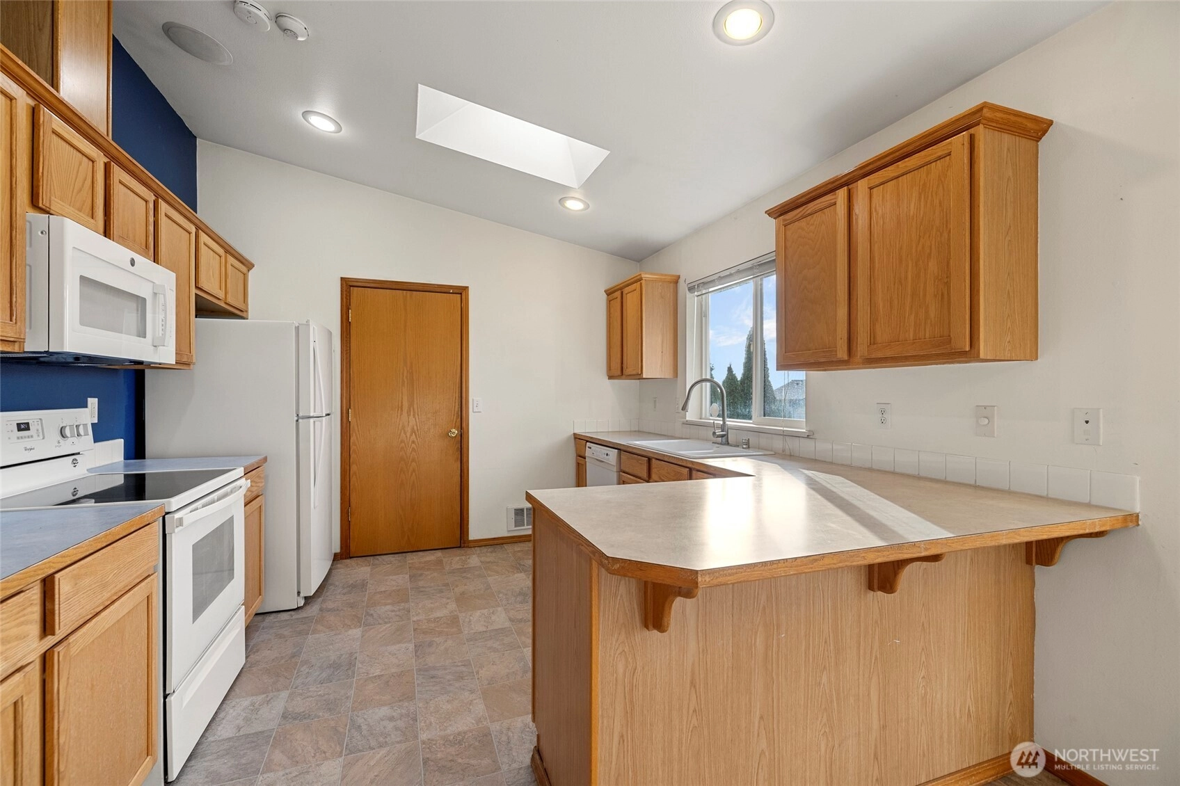 Charming Rambler featuring 3 bedrooms and 2 full baths in the desirable Madrona Beach community. Bright open floor plan with vaulted ceilings, hardwood flooring throughout the main living areas, and vinyl in the kitchen and bathrooms. Cozy gas fireplace in the living room. Kitchen and dining area offer a peek-a-boo view and open to a fenced, level back yard with a cement patio; great for outdoor living. Attractive river rock stone accents enhance the front exterior. Home includes a central vacuum system, washer and dryer, 2-car garage, RV parking, and ample off-street parking. Excellent north-end location close to schools, shopping, I-5, and just minutes from Camano’s beaches.