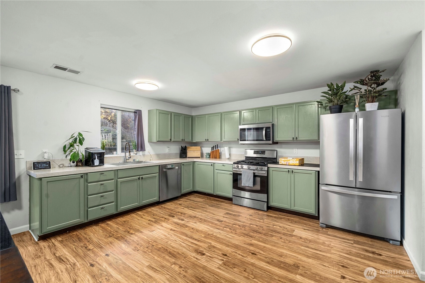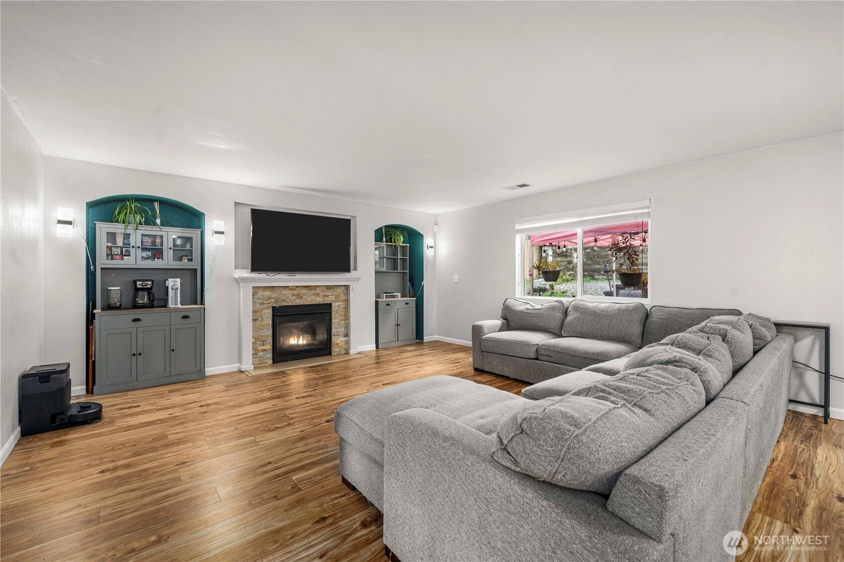 Charming Richmond Homes resale with over 3,000 sq ft located in the highly desirable, gated Lake Park community. This spacious two-story home offers 5 bedrooms, bonus room, and dedicated home office—ideal for remote work, multigenerational living, or flexible space needs. Open-concept floor plan features a large living room with gas fireplace and stone surround flowing into the kitchen and dining area. Kitchen includes stainless steel appliances, modern green cabinetry, large pantry, and sliding glass doors to a three-tiered backyard with patio—perfect for entertaining and outdoor living. Main floor features formal dining room, office, half bath, and newer luxury vinyl plank flooring throughout. Primary suite includes custom walk-in closet and en-suite bathroom with tile flooring, oversized vanity, and walk-in shower. Fully fenced backyard offers terraced garden spaces, stone steps, and room to create your dream outdoor retreat. Located near parks, schools, shopping, and commuter routes. Rare opportunity for a large home in a gated community.