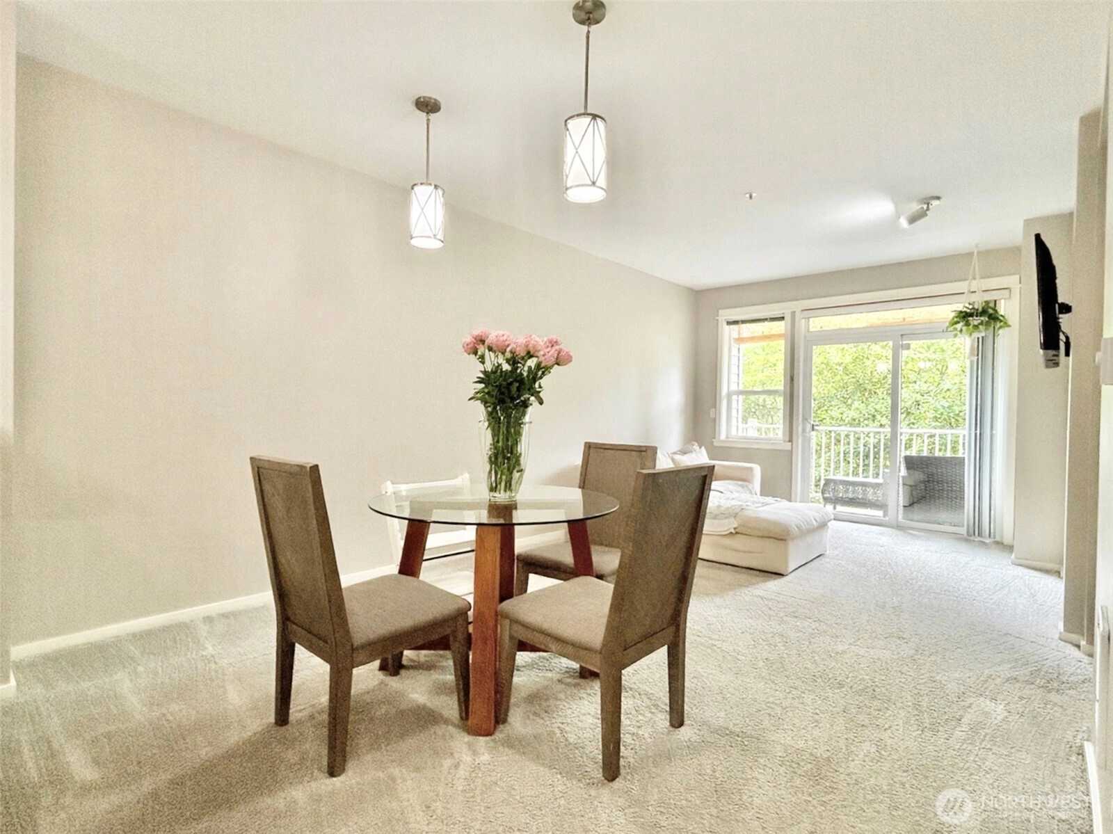 Enjoy this bright, open-concept condo with excellent natural lighting throughout. It is situated in a quiet neighborhood and conveniently located just minutes from 405, I-5, and shopping. A private staircase leads to the front door, with no neighboring doors beside it. The spacious primary bedroom includes a full bath and walk-in closet. Washer, dryer, and kitchen appliances all stay. The private patio looks out onto a greenbelt. The condo includes a detached garage and a prime parking spot right in front of the building. It features a brand-new roof and low HOA fees. No rental cap. Inspection report available upon request.