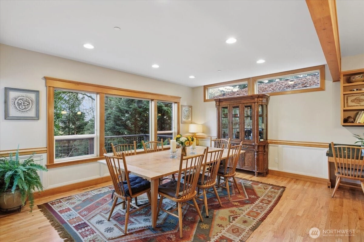 Step inside this extraordinary home where treehouse charm meets lodge-like warmth & rare privacy.Quietly tucked off the street on a large street-to-street lot, it offers a park-like setting, an expansive private deck & patio, newer windows, a new Carrier furnace, & recently added central AC.Xtra off-street prkg. The main floor features a great-room layout w/large view windows & fresh paint. A lower level room functions beautifully as an office with built-ins and a Murphy bed/6th bedroom. The lower level includes a gas fireplace & walk-out patio, plus abundant storage. Deeded access to the Lake Forest Park Civic Club(beach access/dock/picnic), top-rated Shoreline schools, & a short walk to Town Center shops&dining.Welcome home to the Park!