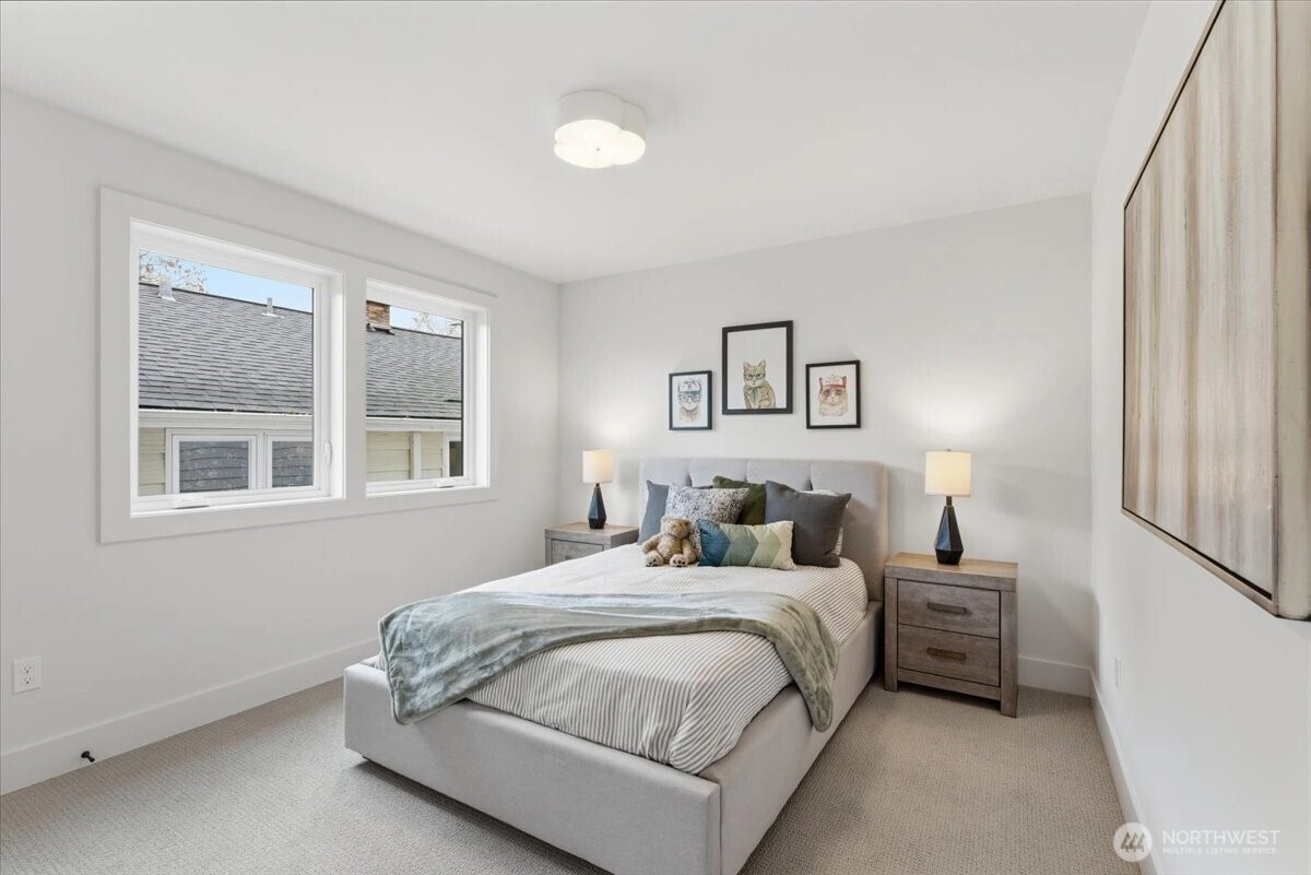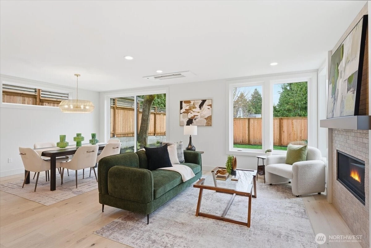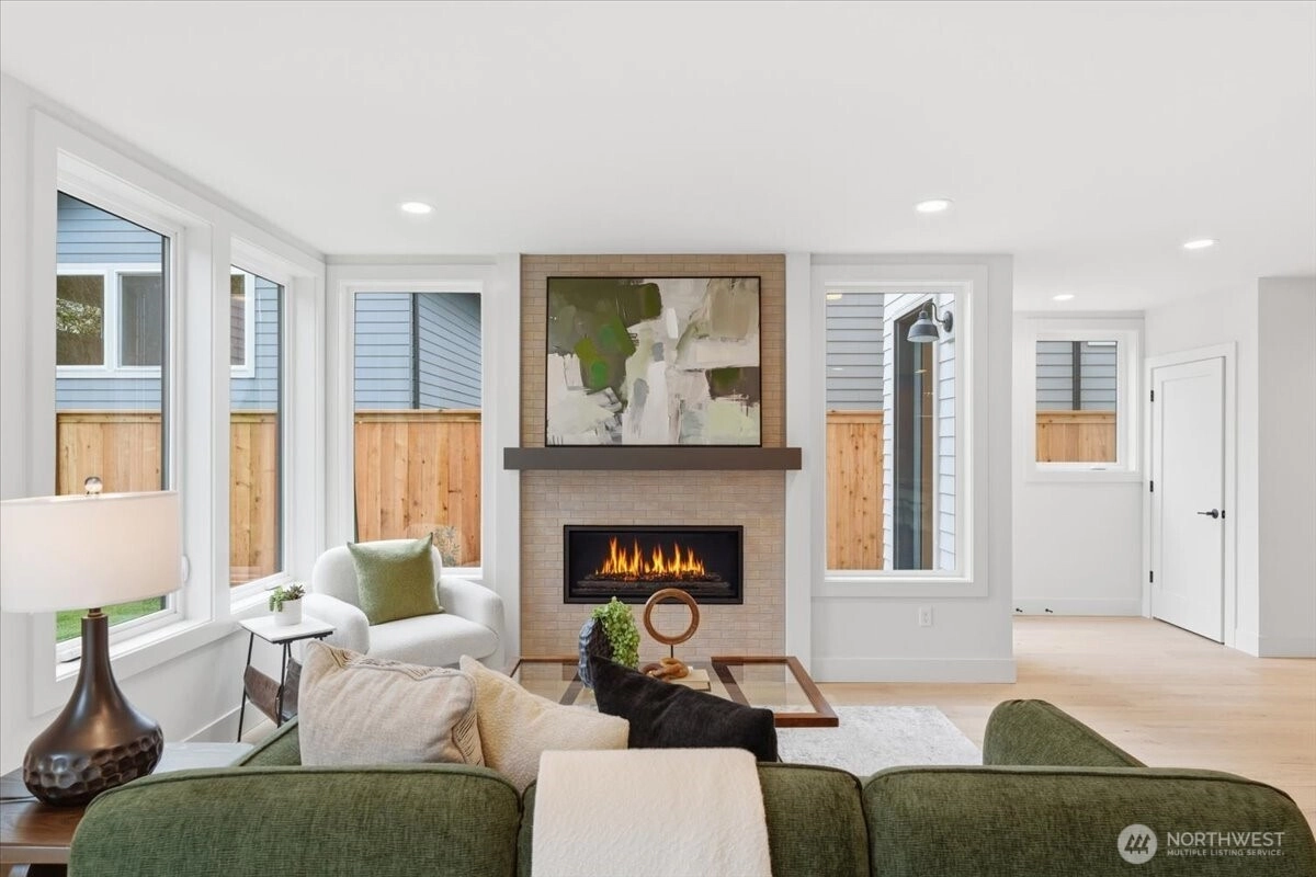 This 2025 custom-built Loyal Heights residence embodies contemporary elegance and thoughtful design. Expansive ceilings and walls of windows create a light-filled, sophisticated atmosphere perfect for modern living and entertaining. Clean architectural lines flow throughout the 4-bedroom, 3.5-bath layout. The chef’s kitchen showcases a generous quartz-topped island, sleek built-in cabinetry, and premium stainless steel appliances. A stylish living room with a designer fireplace anchors the main floor, while the top-floor great room opens to a large deck capturing sweeping city and mountain views. The fenced yard provides an inviting space for outdoor gatherings, and the two-car garage completes this remarkable home.