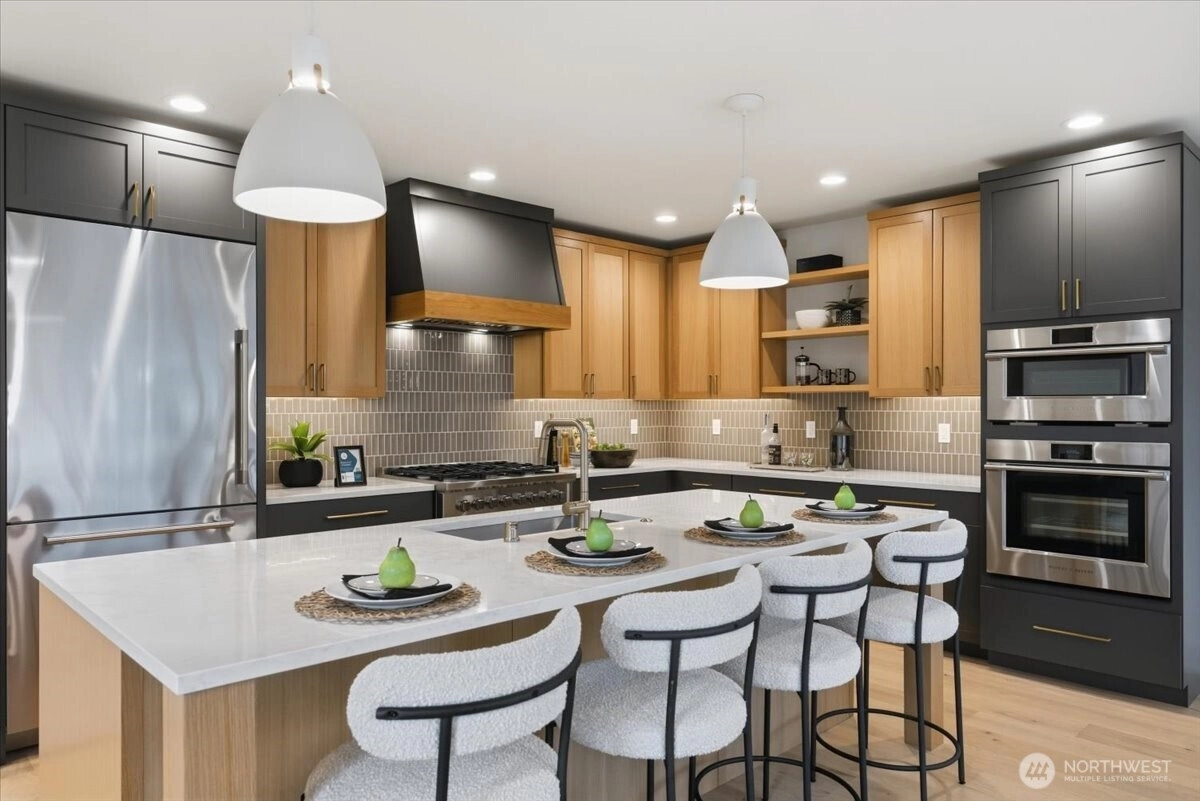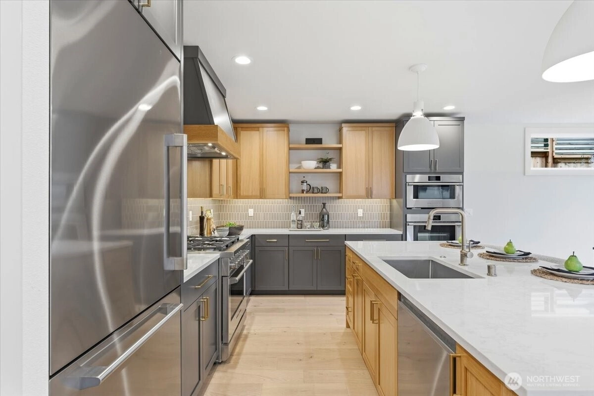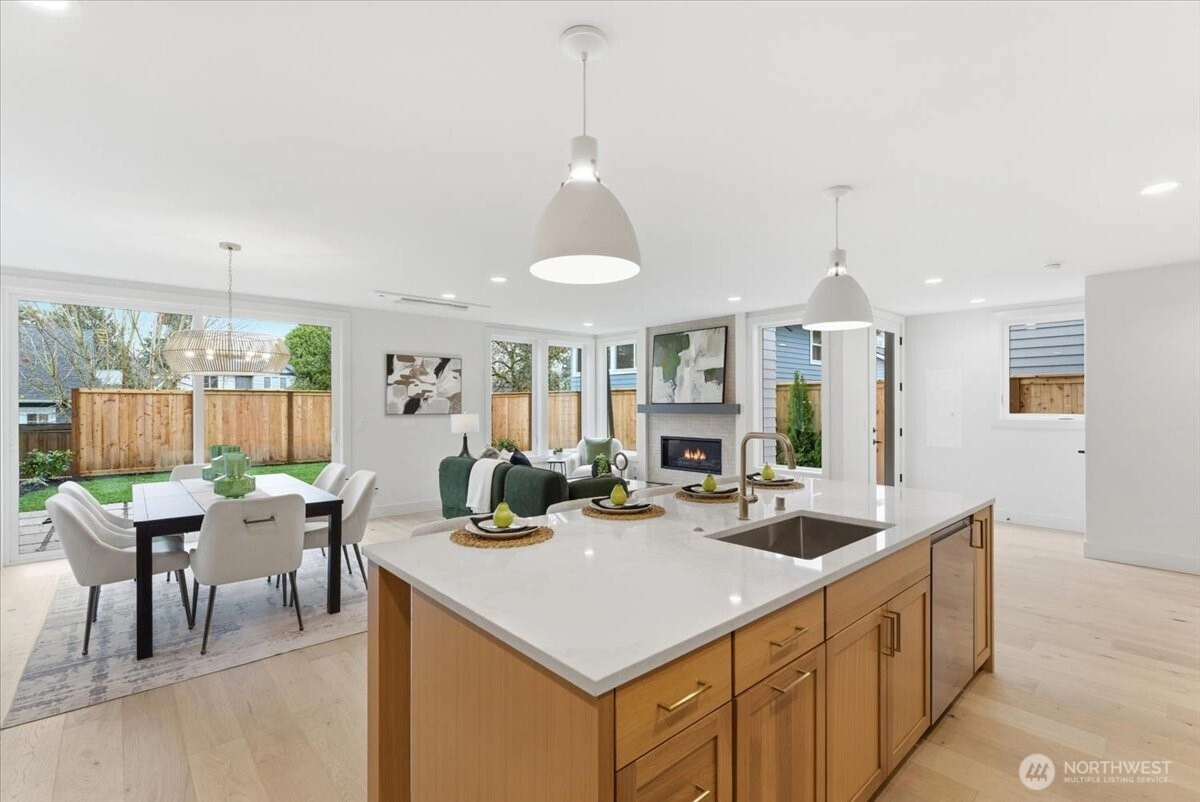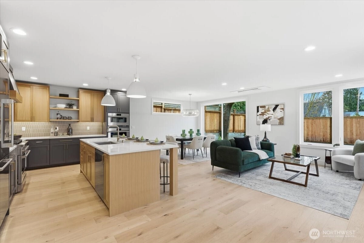 This 2025 custom-built Loyal Heights residence embodies contemporary elegance and thoughtful design. Expansive ceilings and walls of windows create a light-filled, sophisticated atmosphere perfect for modern living and entertaining. Clean architectural lines flow throughout the 4-bedroom, 3.5-bath layout. The chef’s kitchen showcases a generous quartz-topped island, sleek built-in cabinetry, and premium stainless steel appliances. A stylish living room with a designer fireplace anchors the main floor, while the top-floor great room opens to a large deck capturing sweeping city and mountain views. The fenced yard provides an inviting space for outdoor gatherings, and the two-car garage completes this remarkable home.