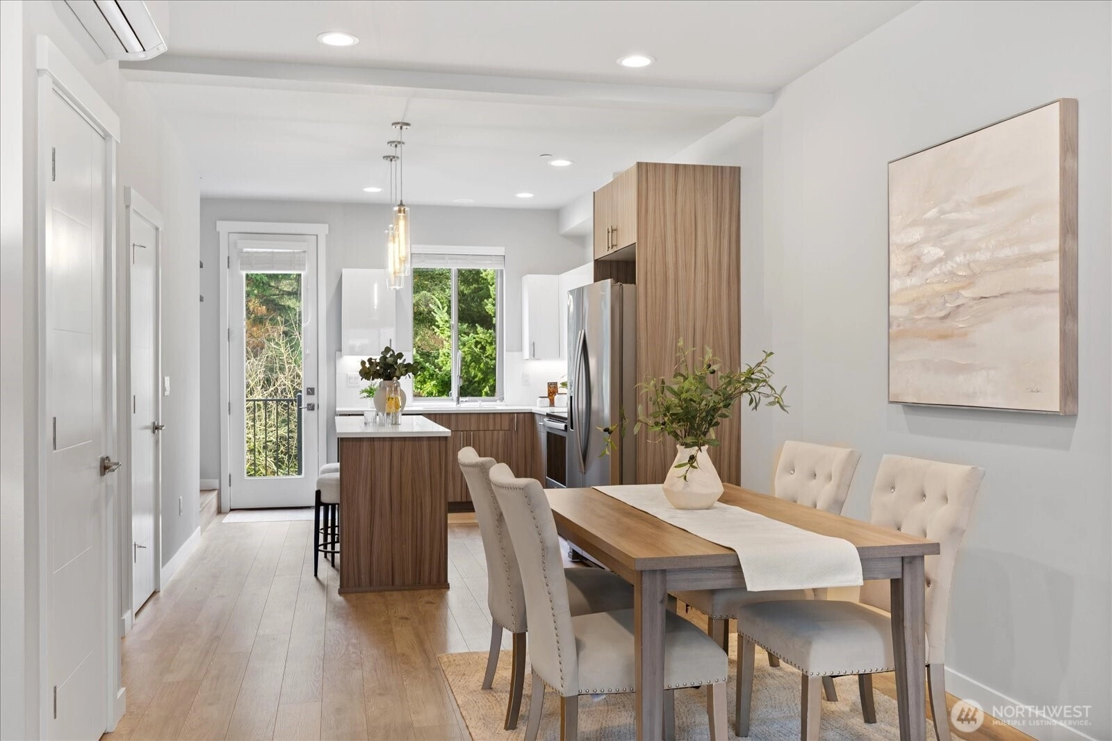 Modern living in Edmonds! Nestled in an intimate Edmonds enclave, this 2019-built 2-bed, 2.25-bath townhouse offers modern comfort and standout amenities, including a one-of-a-kind private fenced dog park and close proximity to local community parks. HOA-maintained landscaping and additional guest parking add ease of ownership. Inside, enjoy superior finishes such as a gourmet kitchen with island seating, designer Bellmont cabinets, quartz countertops, and an stylish floor-to-ceiling tile-wrapped electric fireplace. A split HVAC system and dedicated office nook complement the space. All appliances are included, along with two covered parking spots and one uncovered.