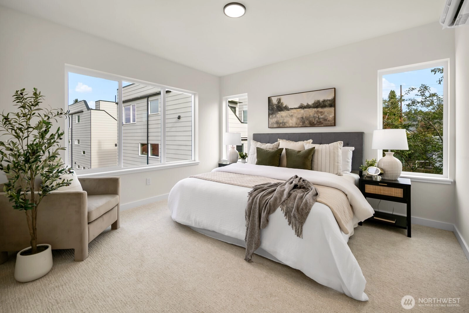 Stunning. Urban. Ballard. Nestled on a tree-lined street, these amazing new Olsen Anderson townhomes offer rare quality + exceptional design. Drenched in natural light, TH1 features an open floor-plan, generous rooms, designer finishes throughout. Prepare meals in an island kitchen. Retreat to a dreamy full floor primary suite which includes private spa-inspired bath, walk-in closet, and adjacent den/office. Covered deck off living room for year-round BBQ's. Targeting Built Green 4 Star. Enjoy all the benefits of high-end new construction: AC, state-of-the-art systems, EV-ready parking spot, much more. Stroll to great local dining, shops, cafes, night life, parks, Ballard Farmer's Market, transit. Builder-paid 3.99% rate available!