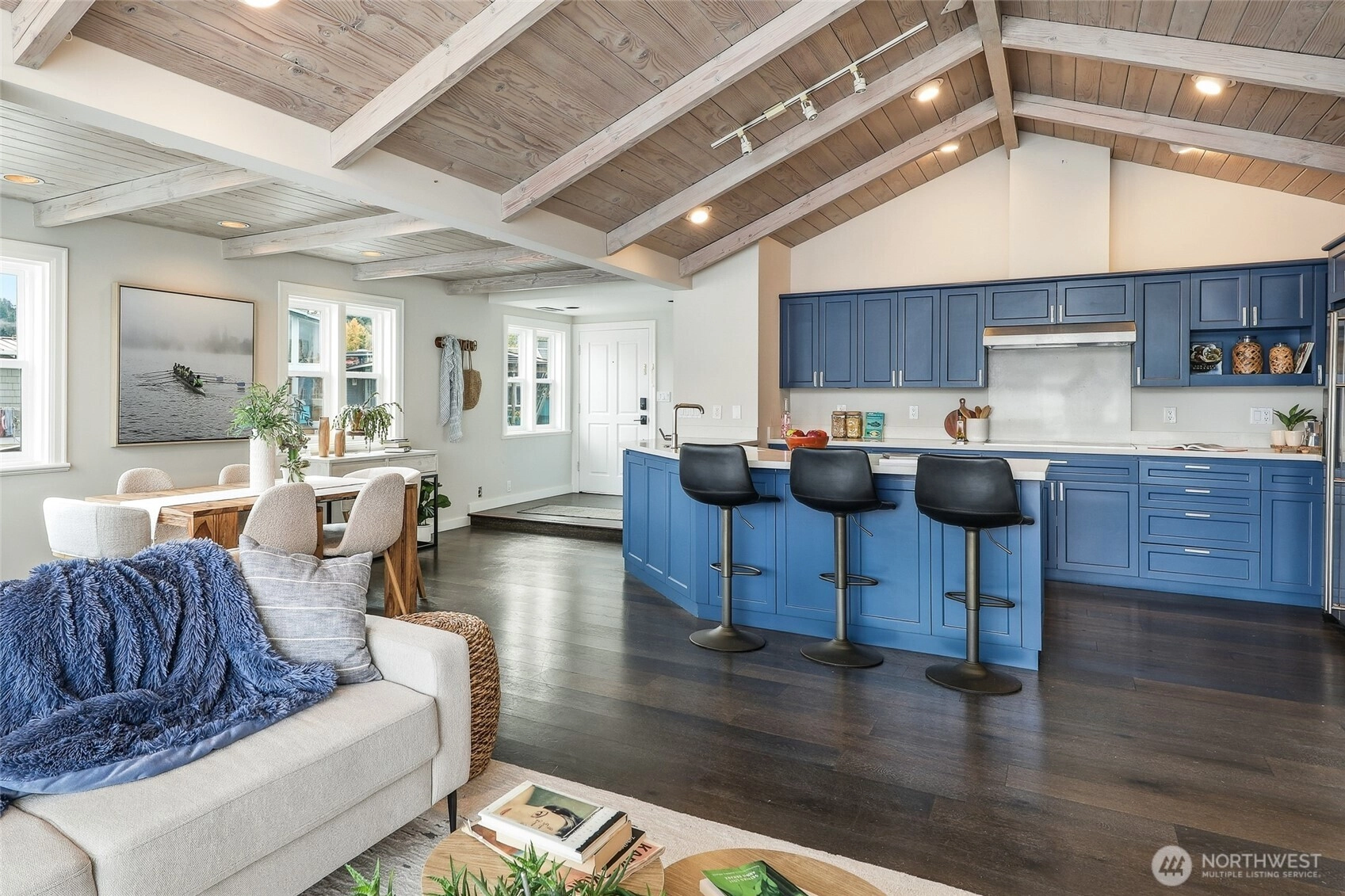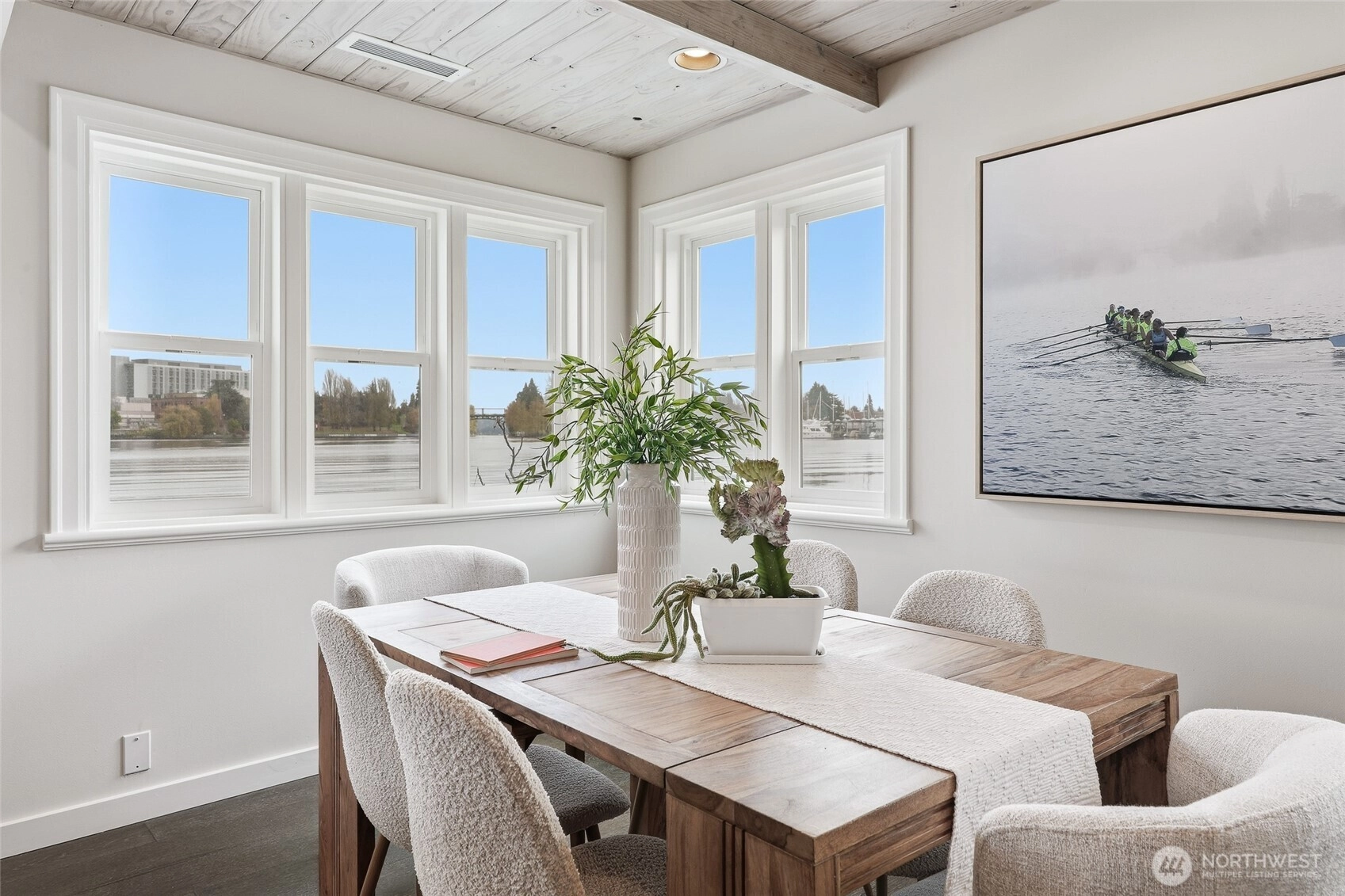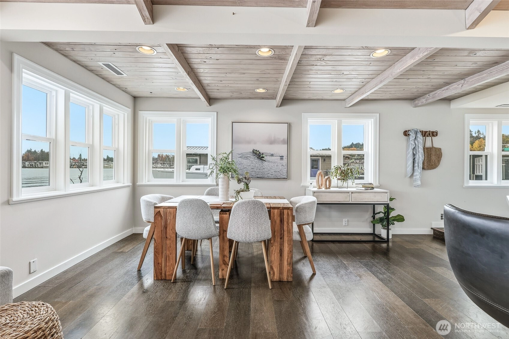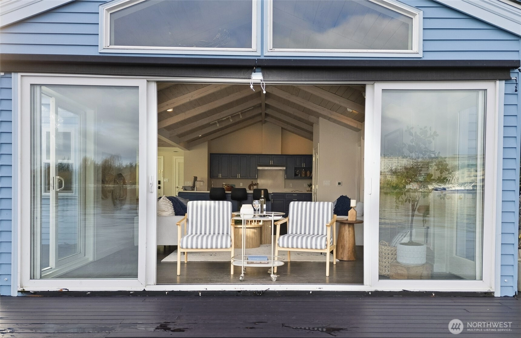 The lake reflects the sky in this light-filled front row floating residence, featuring an expansive living room & open kitchen beneath beautiful vaulted ceilings. A true rarity, this home provides single level living with beautiful wood floors throughout. All 3 bedrooms enjoy views framed by brand-new windows, perfect for watching winter migratory birds & all the water action. Loads of storage including attic access. Enjoy 38 feet of low-bank bulkhead waterfront & 2 outdoor seating areas—including one directly off the primary bedroom. Fresh interior and exterior paint enhance the timeless design by architect Eric Hogeboom. Includes a dedicated boat slip, completing this exceptional waterfront lifestyle.