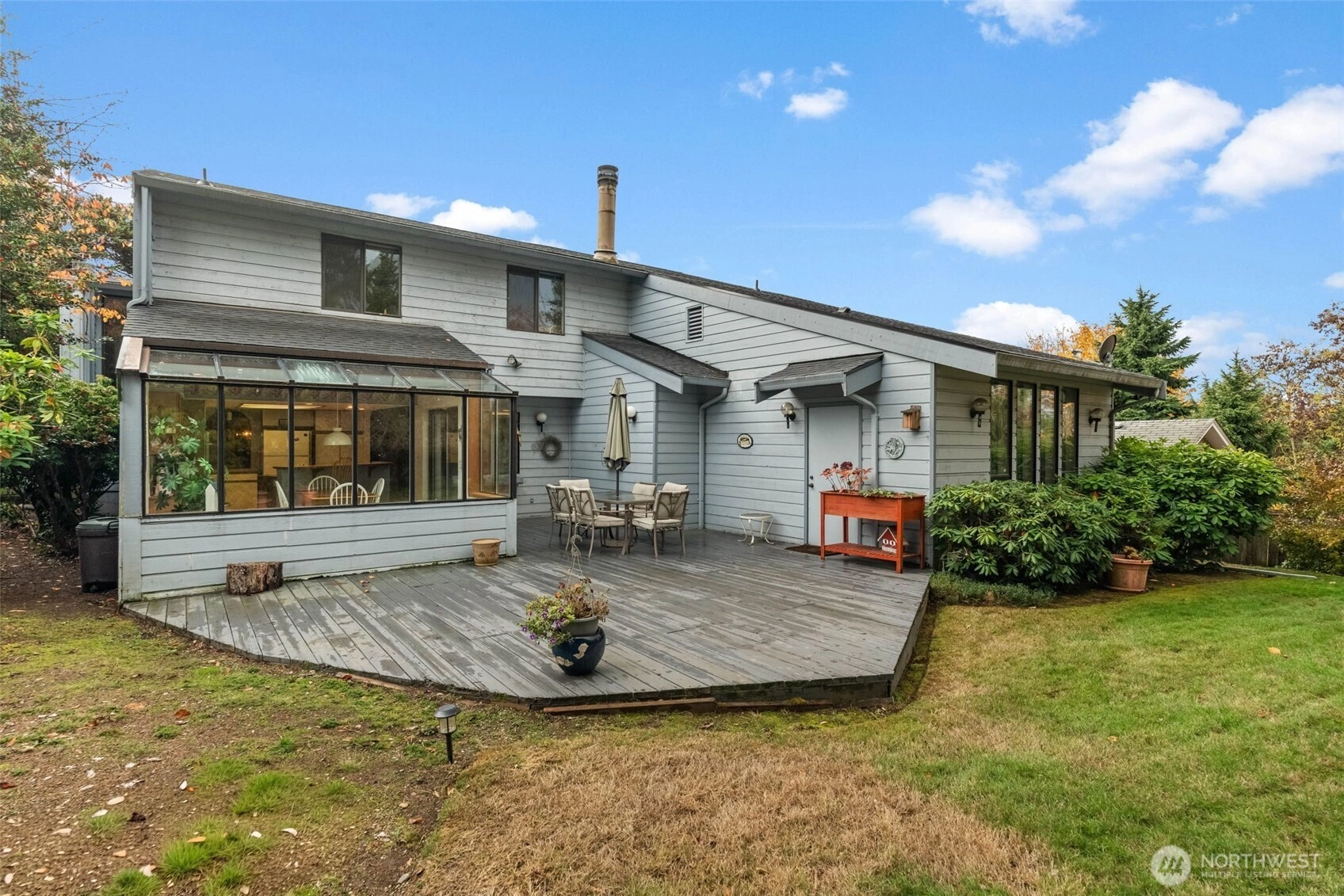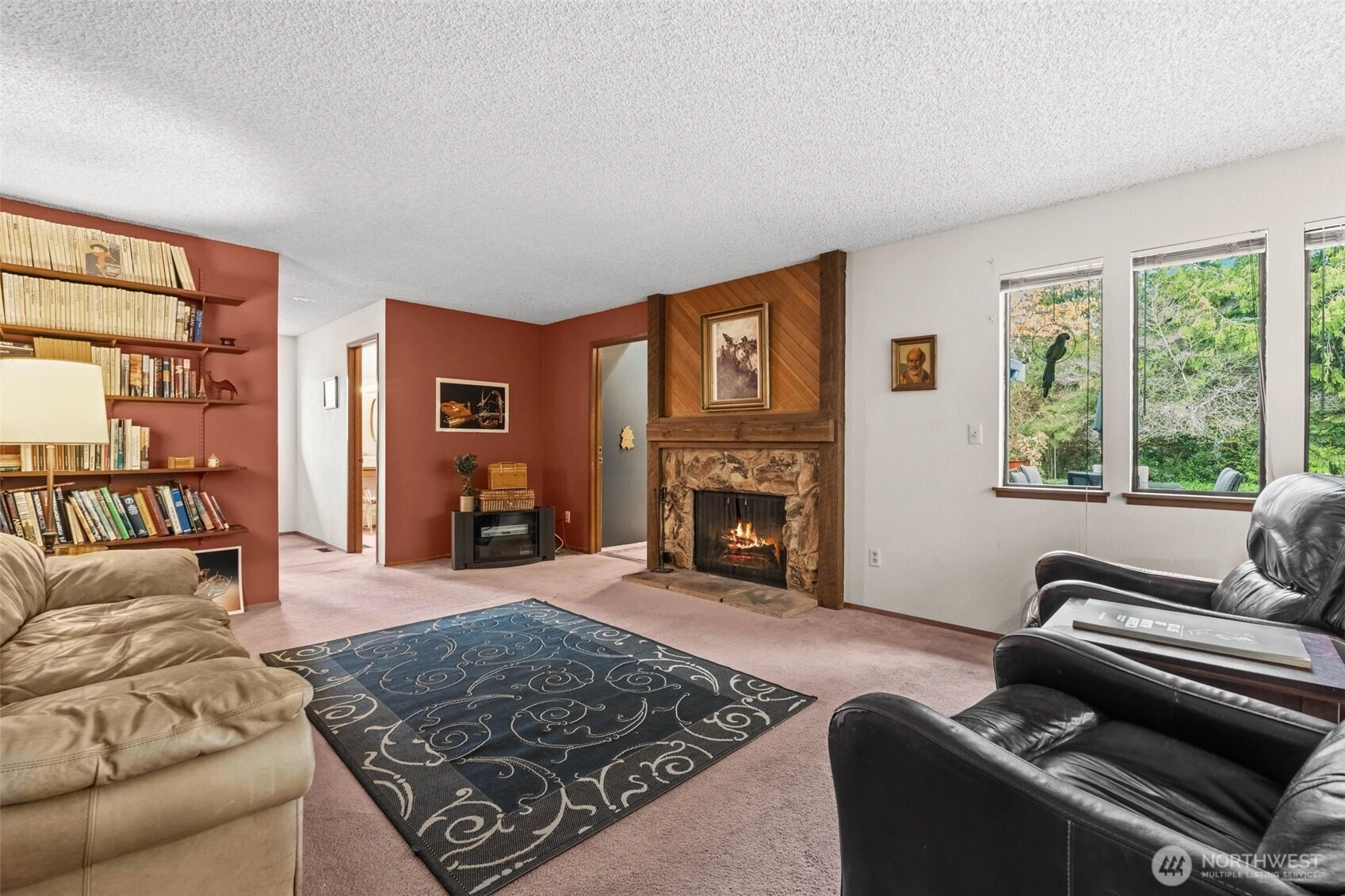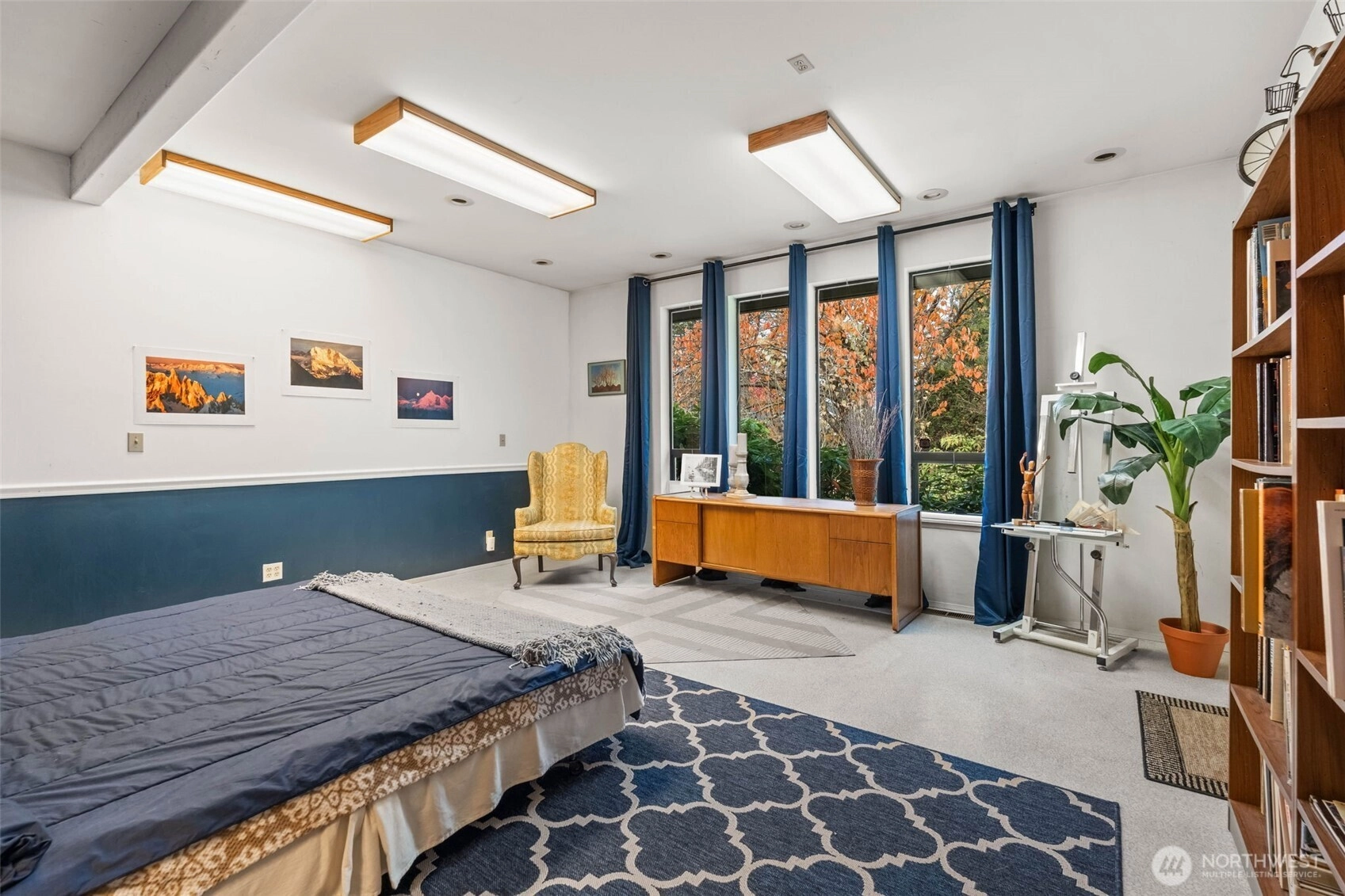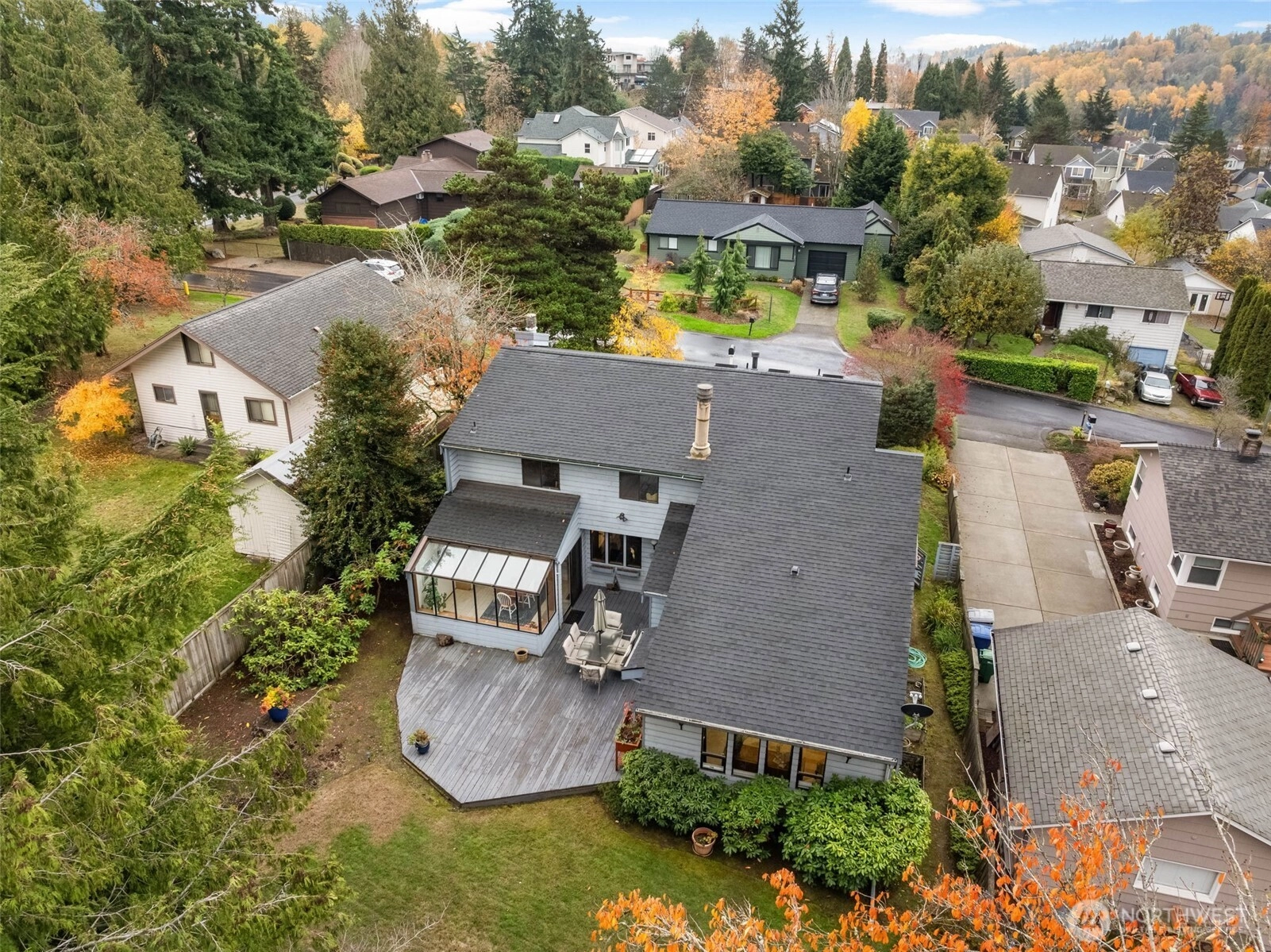 Discover the potential in this spacious NW Contemporary on a serene private lot. Light-filled main level offers a living room with fireplace and a bright sunroom off the kitchen. Upstairs features a large primary suite with walk-in closet and full bath, two additional bedrooms, full hall bath, and a loft-style den/office (possible 5th bedroom). Lower level includes a generous bedroom with separate backyard entrance, family room with second fireplace, and half bath—ideal for multi-gen living. Large backyard with deck offers great space for entertaining/gardening. Major updates include new water line, furnace, water heater, and a 3-yr old roof. Prime location near I-5, I-405, and Sea-Tac Airport. Bring your vision and make this home shine!