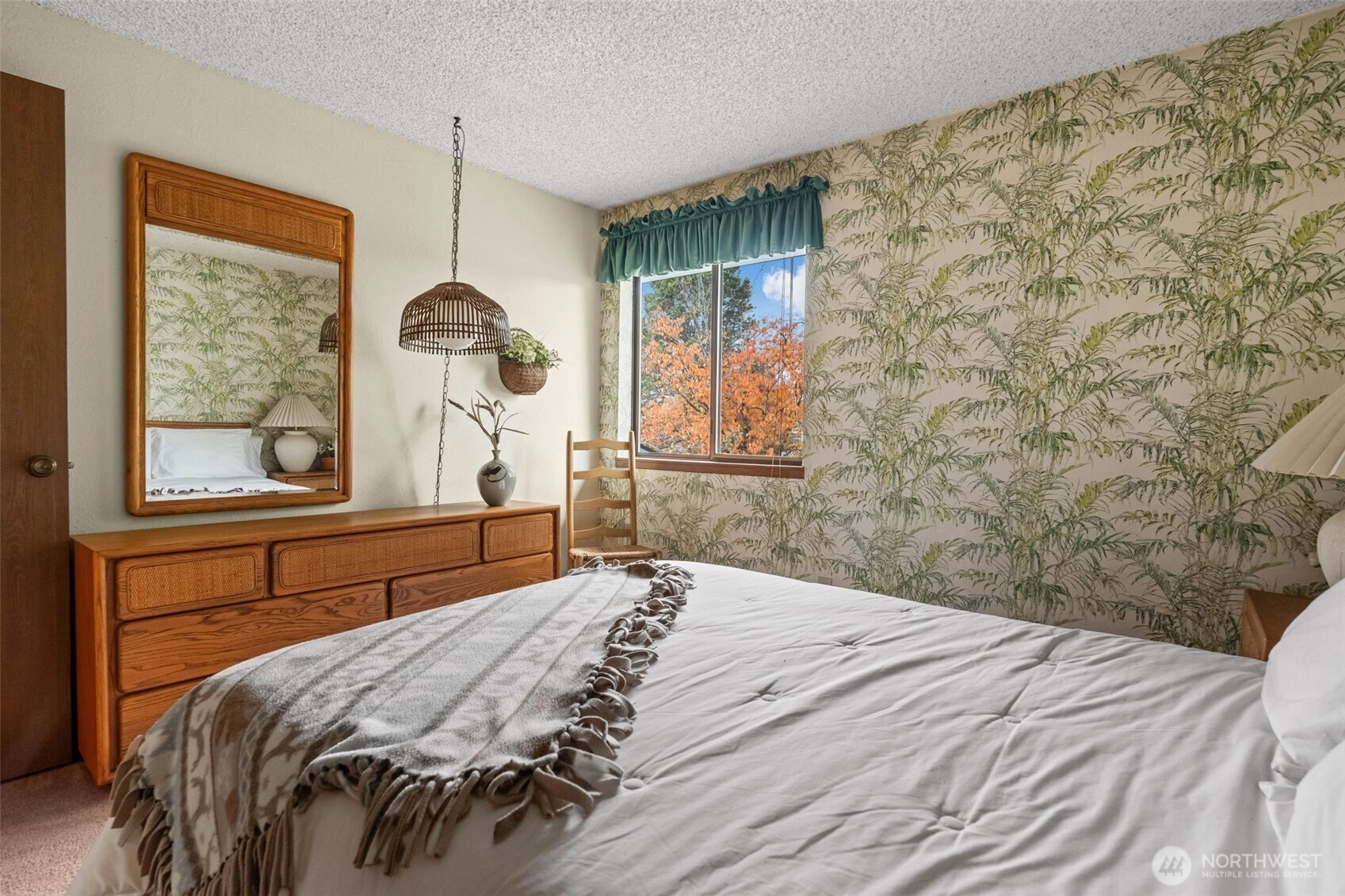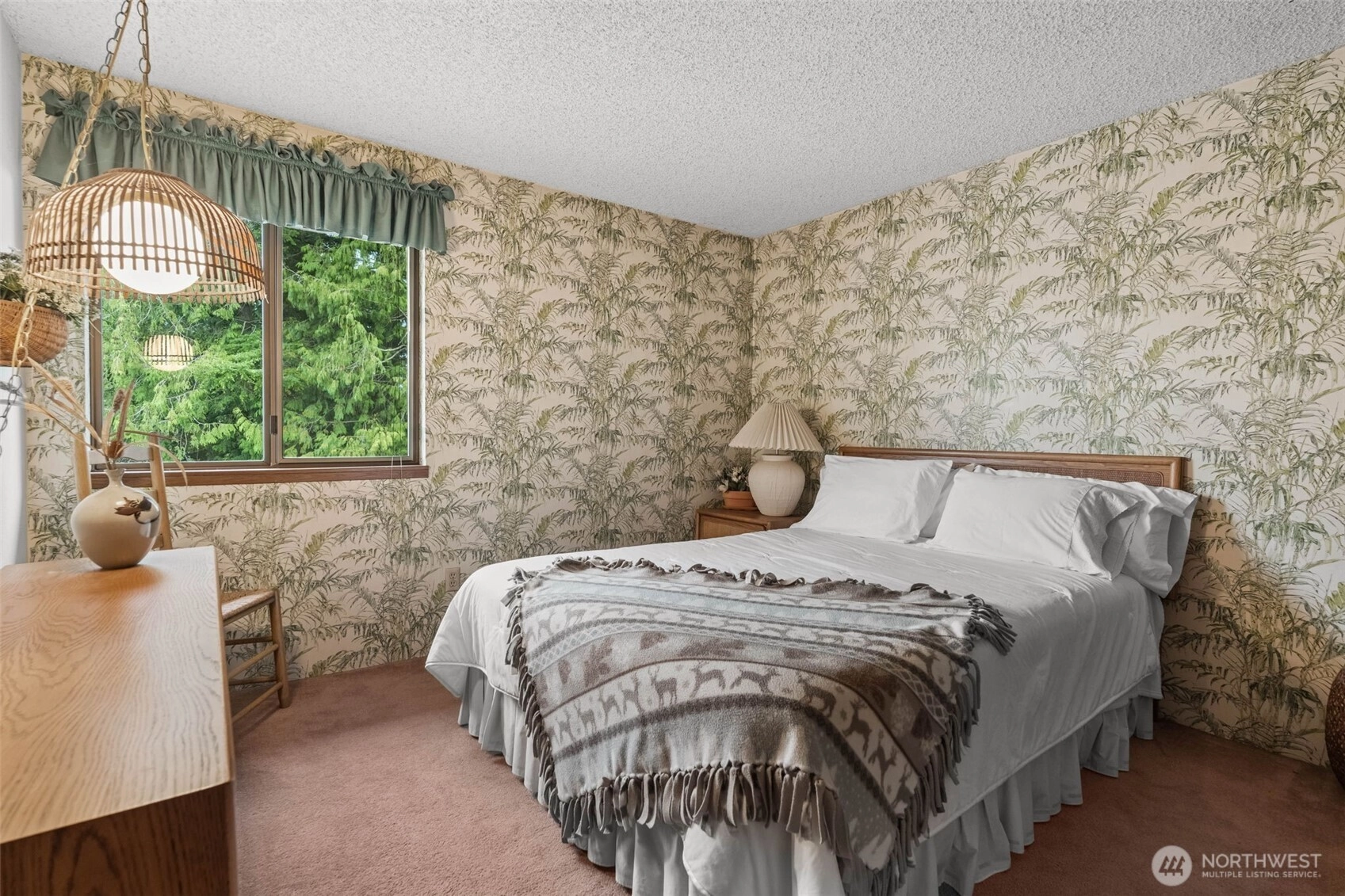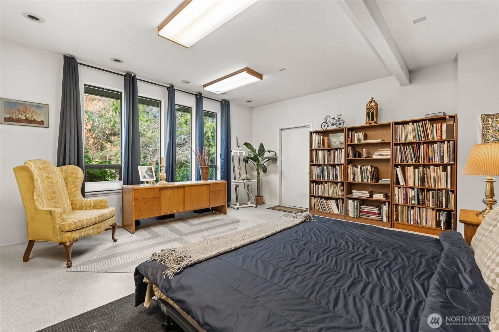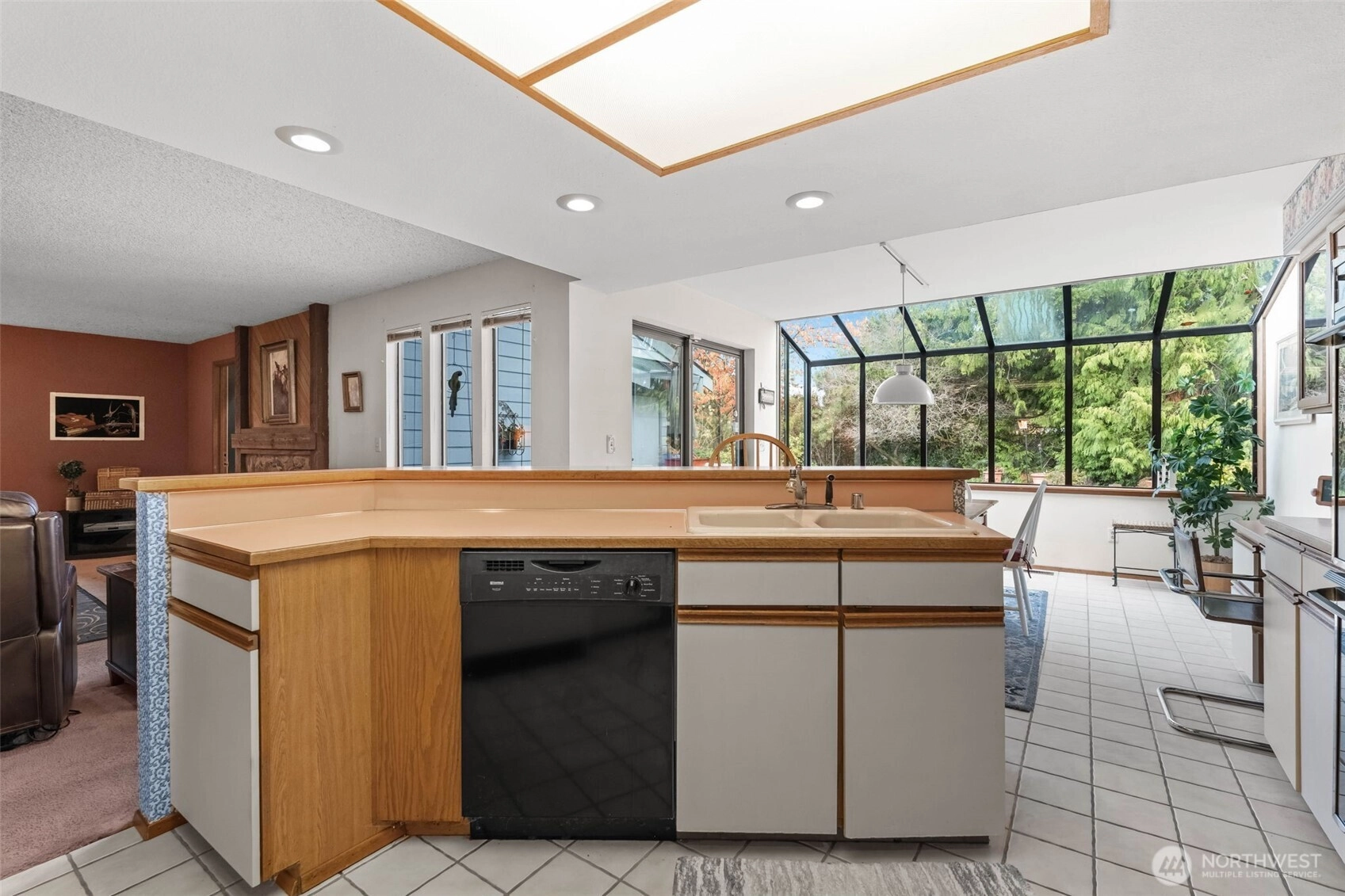 Discover the potential in this spacious NW Contemporary on a serene private lot. Light-filled main level offers a living room with fireplace and a bright sunroom off the kitchen. Upstairs features a large primary suite with walk-in closet and full bath, two additional bedrooms, full hall bath, and a loft-style den/office (possible 5th bedroom). Lower level includes a generous bedroom with separate backyard entrance, family room with second fireplace, and half bath—ideal for multi-gen living. Large backyard with deck offers great space for entertaining/gardening. Major updates include new water line, furnace, water heater, and a 3-yr old roof. Prime location near I-5, I-405, and Sea-Tac Airport. Bring your vision and make this home shine!