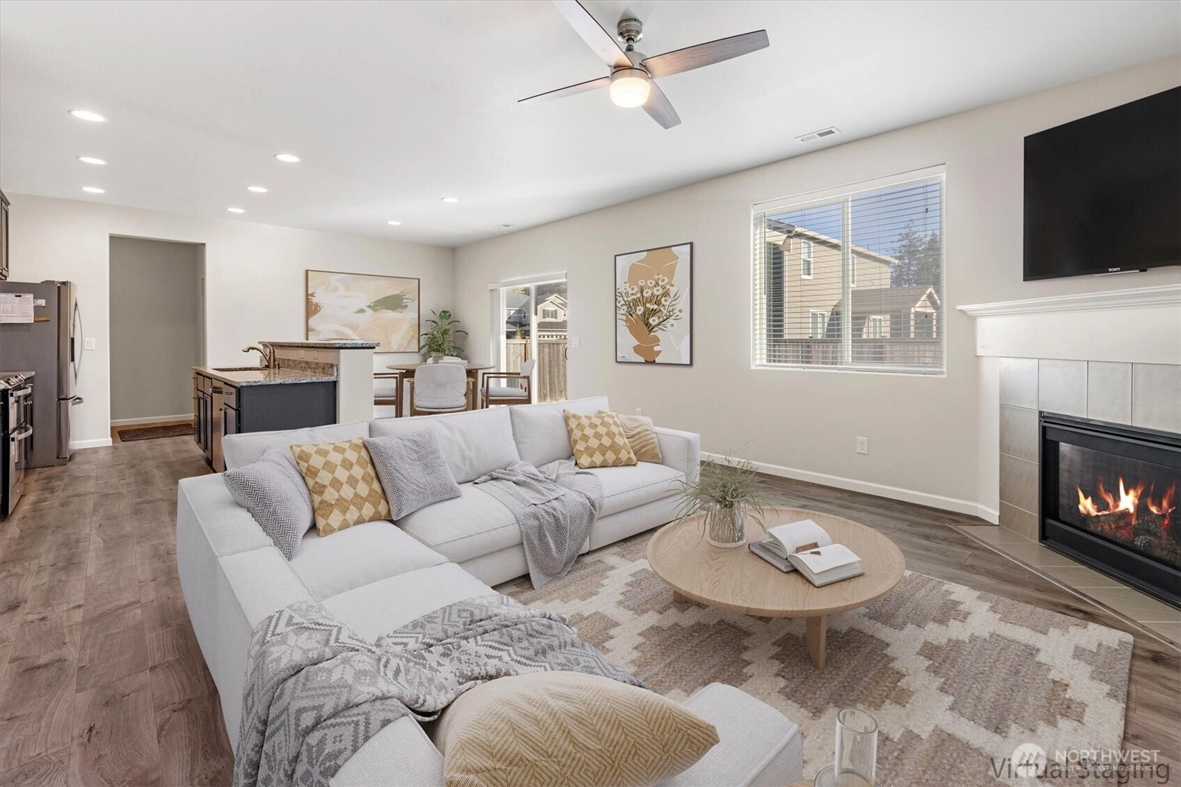 Thoughtfully designed and move-in ready, this 3-bedroom, 2.5-bath home offers comfort, style, and energy savings with AC and solar panels (fully paid and convey to buyer). The bright kitchen features granite countertops, gorgeous cabinetry, and an oversized pantry perfect for cooking and entertaining. The spacious primary suite boasts a large walk-in closet, while the attached 2-car garage adds convenience. Step outside to a fully fenced backyard with a covered patio, ideal for year-round gatherings. Located in a terrific silent neighborhood, just minutes from Costco, Amazon, Boeing, shopping, dining and much more! This home truly combines modern amenities with an unbeatable location!