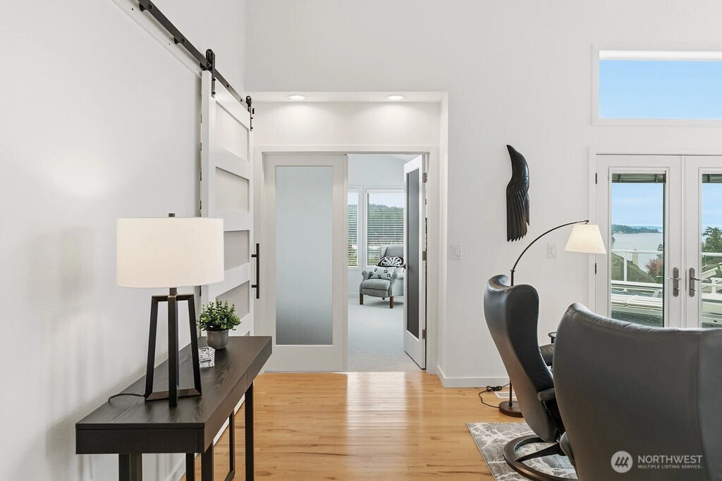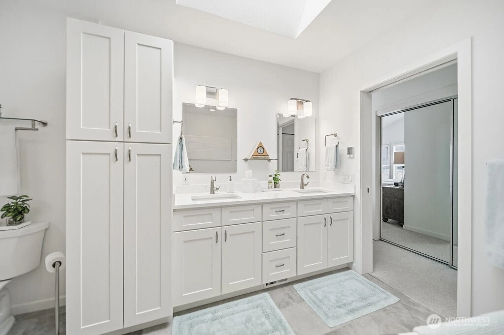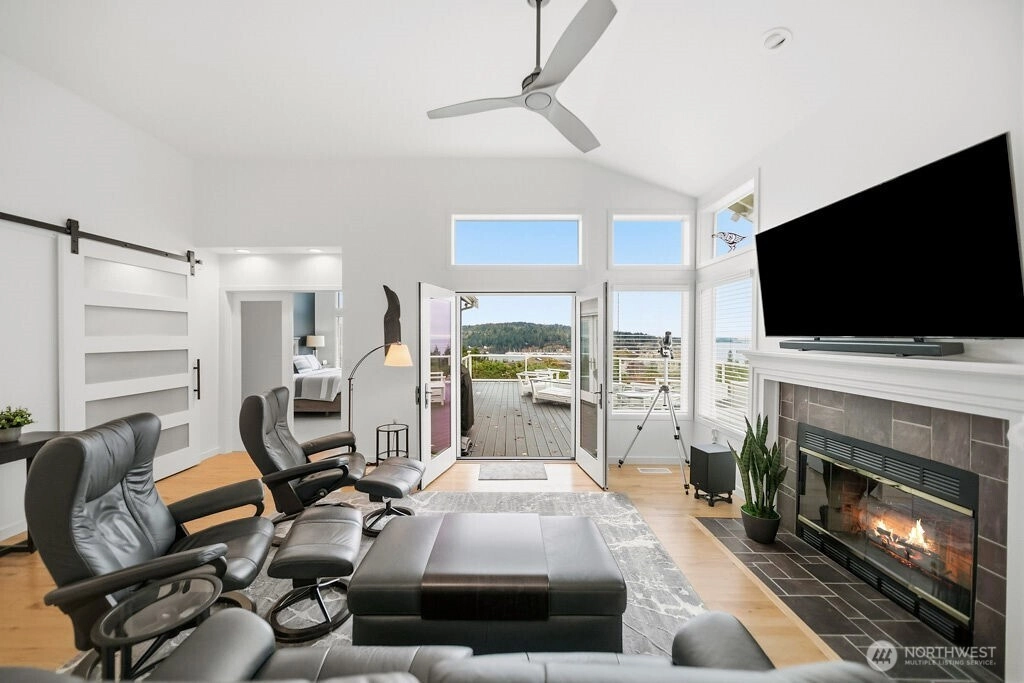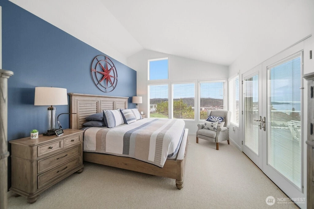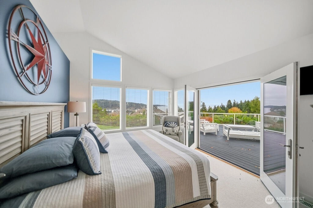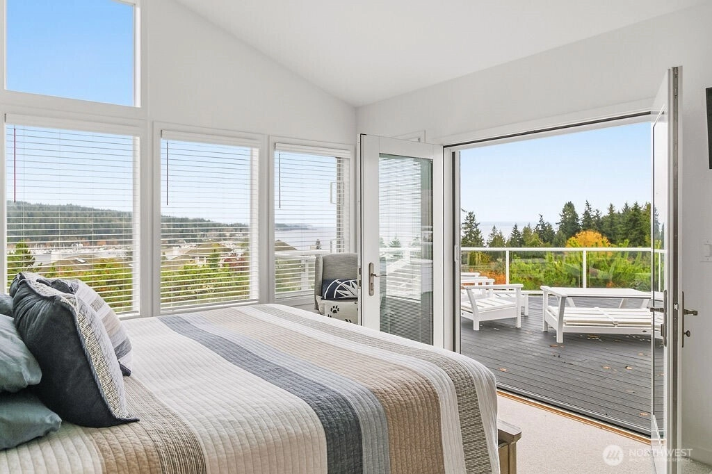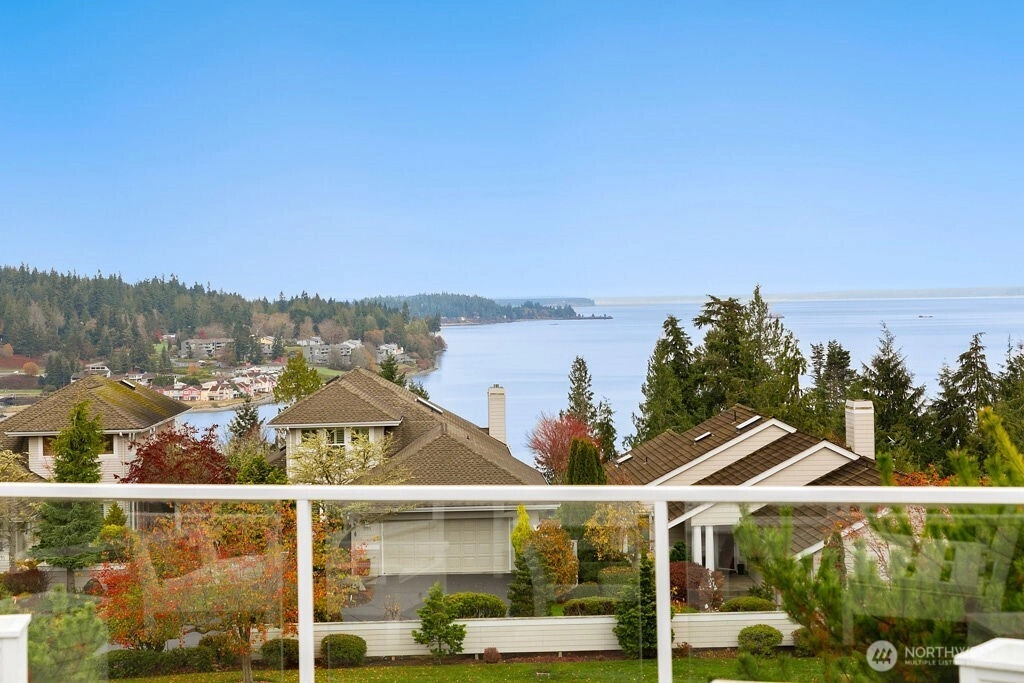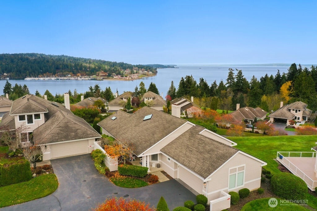 Gorgeous water and mountain view home in a desirable 55+ Bayview Community. Privately situated at the end of a cul-de-sac, this single -level home features a split floor plan, spacious kitchen with Sub-Zero frig, large pantry and eat-in that flows into the dining area or cozy up to the fireplace in the living room. Pamper yourself in the primary suite with sweeping views and completely updated spa bathroom. Oversized deck is perfect to entertain or just sit and relax gazing at the beauty our NW has to offer. Utility room is loaded with storage. Custom cabinets line the garage, and it is the nicest in town! Too many upgrades to list - this home is a show stopper!
