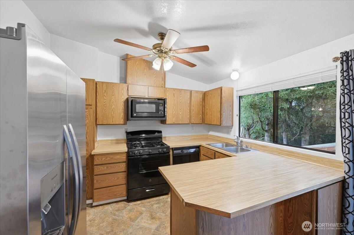 Great price and location! This home offers endless potential in a desirable neighborhood in Northshore School District. Solid construction awaits your modern updates. New roof around 2016 plus recent replacement of water line. Updates of some appliances. Vaulted ceiling in living & dining rooms offer a spacious atmosphere. Deck off dining room looking over the private, large, fully fenced backyard. Downstairs features 3rd bedroom, den/office, full bath, utilities and large rec room with new sliding door to back patio. 2 car garage + long driveway for off-street parking. Backs to wetlands for privacy. Minutes from freeways, shopping, dining, trans, parks & trails. An opportunity you can't afford to miss! Won't last long!