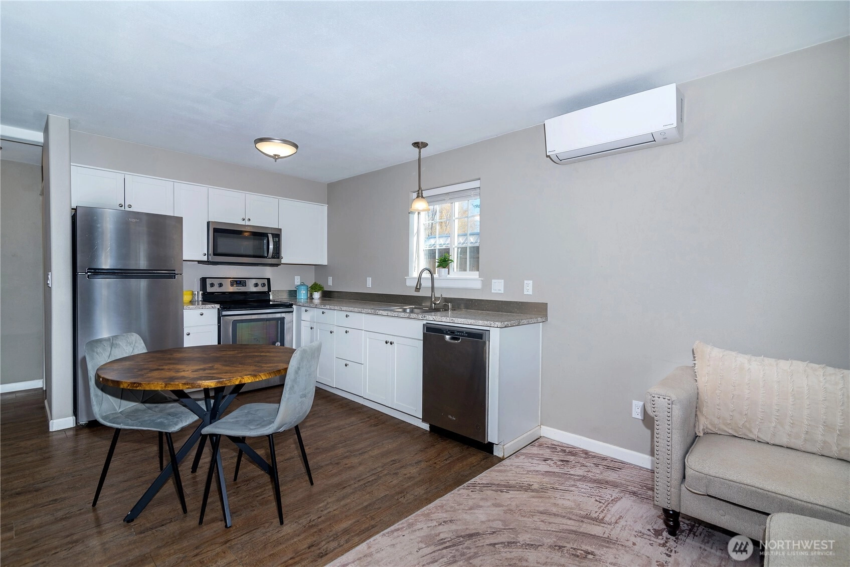 Welcome to this picture-perfect 1-bedroom, 1-bath home that combines cozy living with modern touches. Inside, enjoy a refreshed interior with stainless steel appliances, an all-in-one washer/dryer, and inviting finishes that make the space feel bright and comfortable. A flagstone pathway leads you to the welconing covered front porch—ideal for relaxing and taking in the quiet neighborhood feel Out back, unwind around the firepit, make use of the convenient storage outbuilding, and appreciate the fenced yard with room for outdoor enjoyment. With driveway parking and a low-maintenance layout, this adorable home is ideal for those looking for simplicity, charm, and easy living right in the heart of Kittitas.