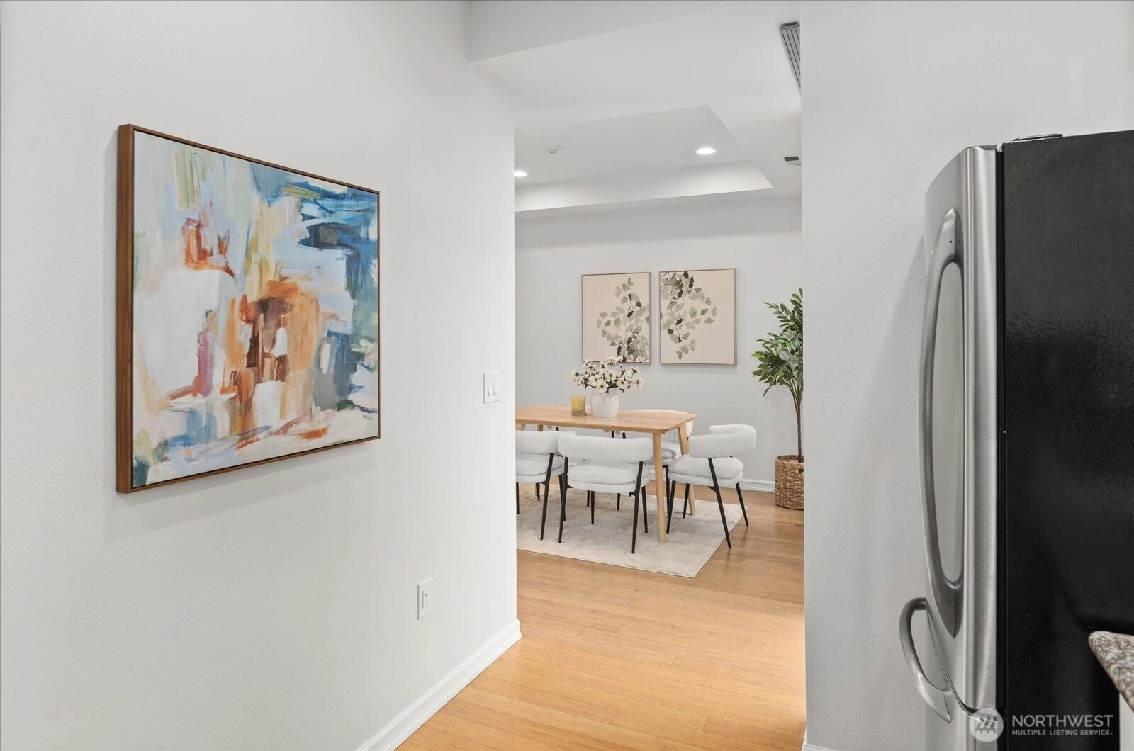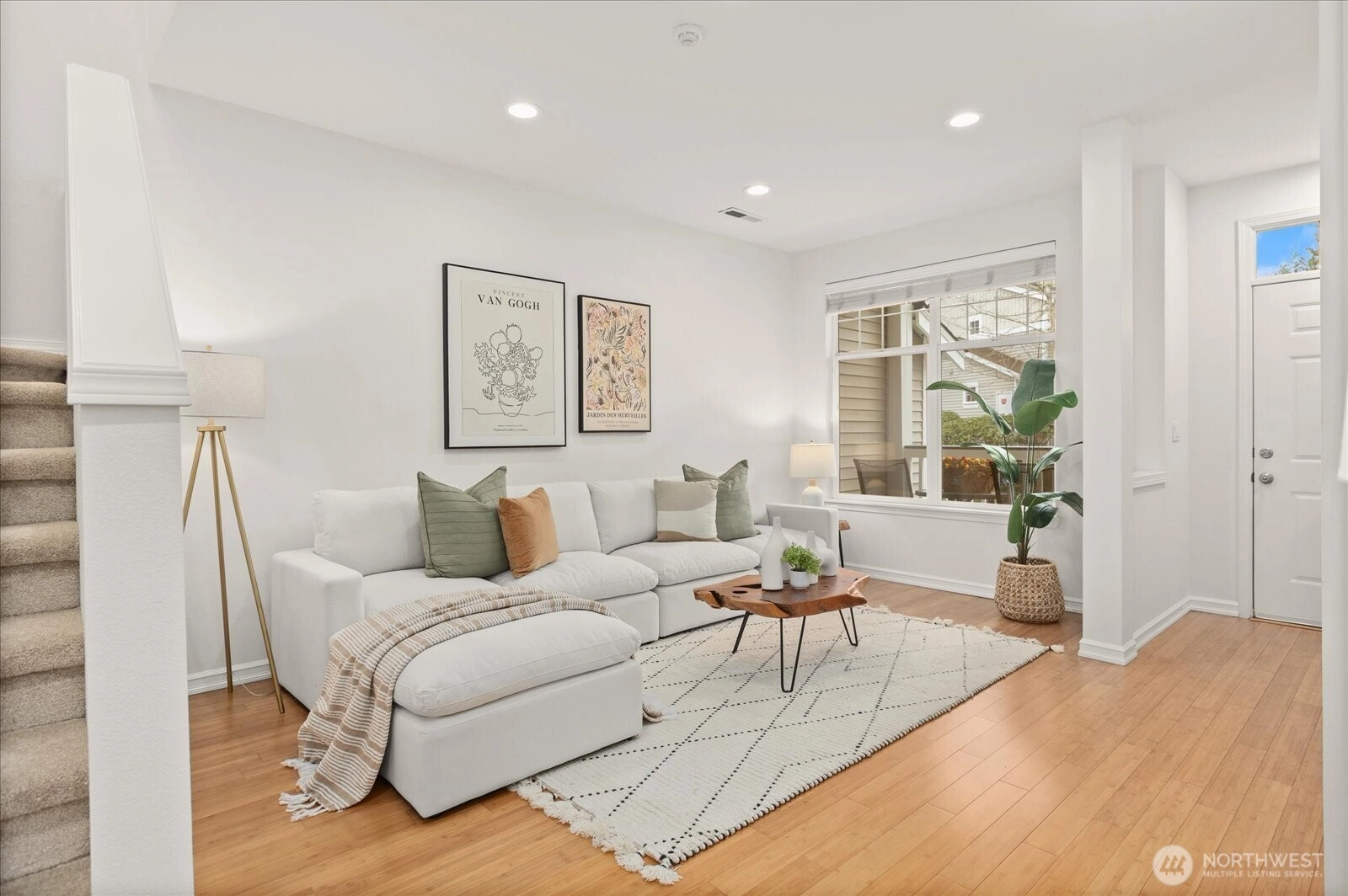 Welcome to this updated two-story townhome in Willow Grove community, in the heart of Redmond. This high-quality renovated home offers 2 bed and 2.5 baths, featuring bamboo flooring, granite countertops, fresh interior paint, soaring ceilings, a vaulted primary suite, generously sized bedrooms, a walk-in closet, and a patio overlooking a greenfield. An attached one-car garage plus extra parking right in front. Located just minutes from Microsoft, Whole Foods, Costco, restaurants, Light Rail, bus lines, and 520; a short walk to Starbucks and PCC. Pre-inspected. High efficiency Furnace 2019, bathrooms renovations in 2022 (over 30K in updates). HOA covers exterior,roof, attic, siding, water, sewer, landscaping. Desirable Lk Wash schools.