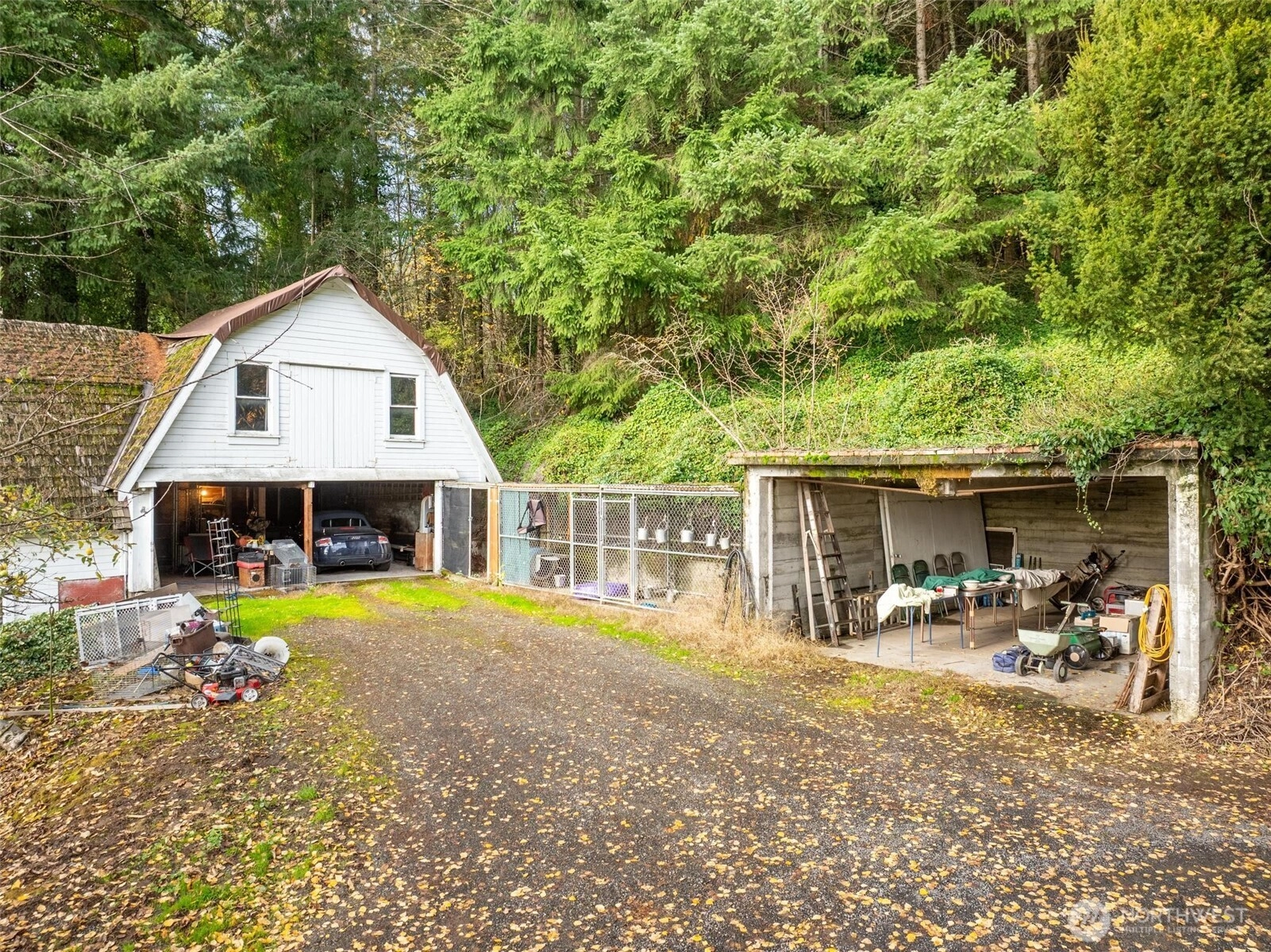 Fixer-Upper on just shy of 5AC w/huge potential features 1920s era home w/4Bd, 3Bth plus 1BD 1BTH attached apartment w/separate entrance. Upper portion of property has almost 3AC of Doug Fir & lower portion is almost 2Ac pasture w/steel cable horse fencing. Large Shop/Barn, concrete carport & vintage horse barn w/2 stalls. Home is connected to artesian spring well. City water is available but connection fees to be buyer's responsibility. Property has been surveyed, corners marked & BLA is in progress. Forced-Air Furnace, heat pump & water heater are about 5yr old. Most plumbing has been updated to Pex & Copper. Home is in need of repair and is being sold AS-IS. Additional 6AC is listed for sale MLS 2425791.