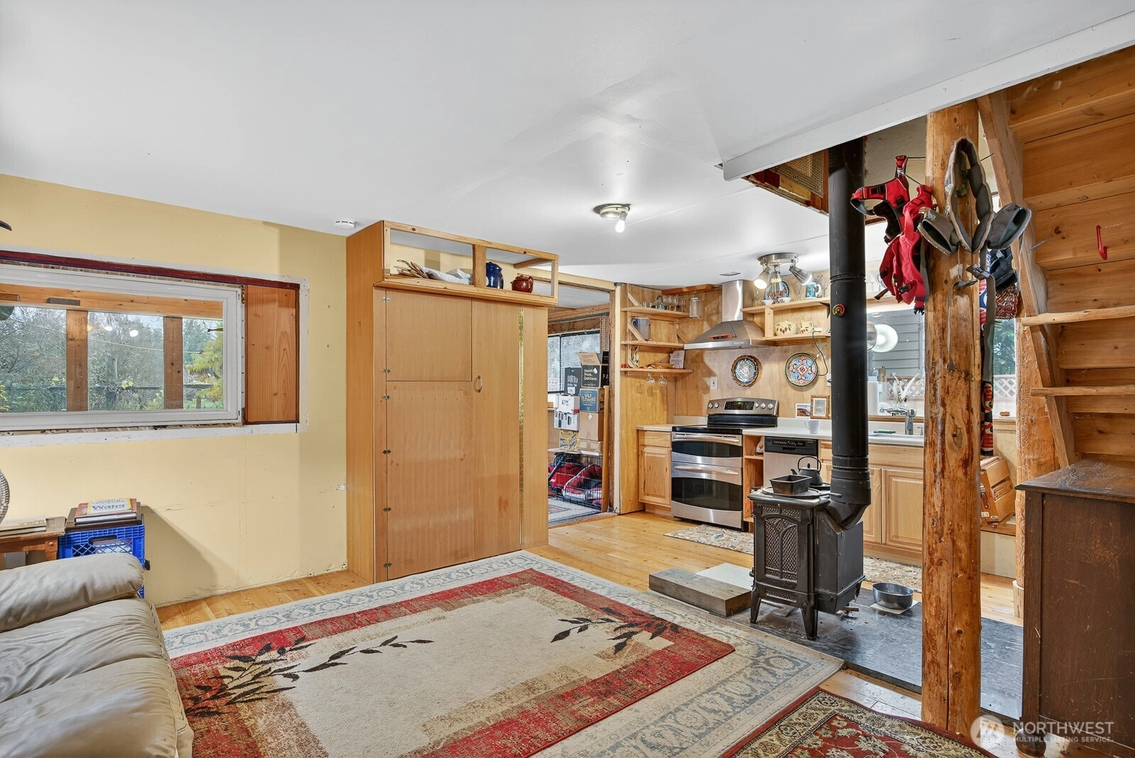 Discover a rare, true 5-acre property offering exceptional versatility, strong development potential, and long-term investment value. Zoned Cottage Industries within a UGA, it provides nearly 500 feet of Highway 9 frontage and four driveways, making access and visibility ideal for future projects or business use. The private east side showcases four-season mountain views, old-growth cedar and fir, a small orchard, and a productive garden. The property includes a cozy 2-bedroom home, a fully equipped 1-bedroom studio, multiple outbuildings, and a private well known for outstanding water, perfect for homesteading, mixed-use possibilities, or strategic development.