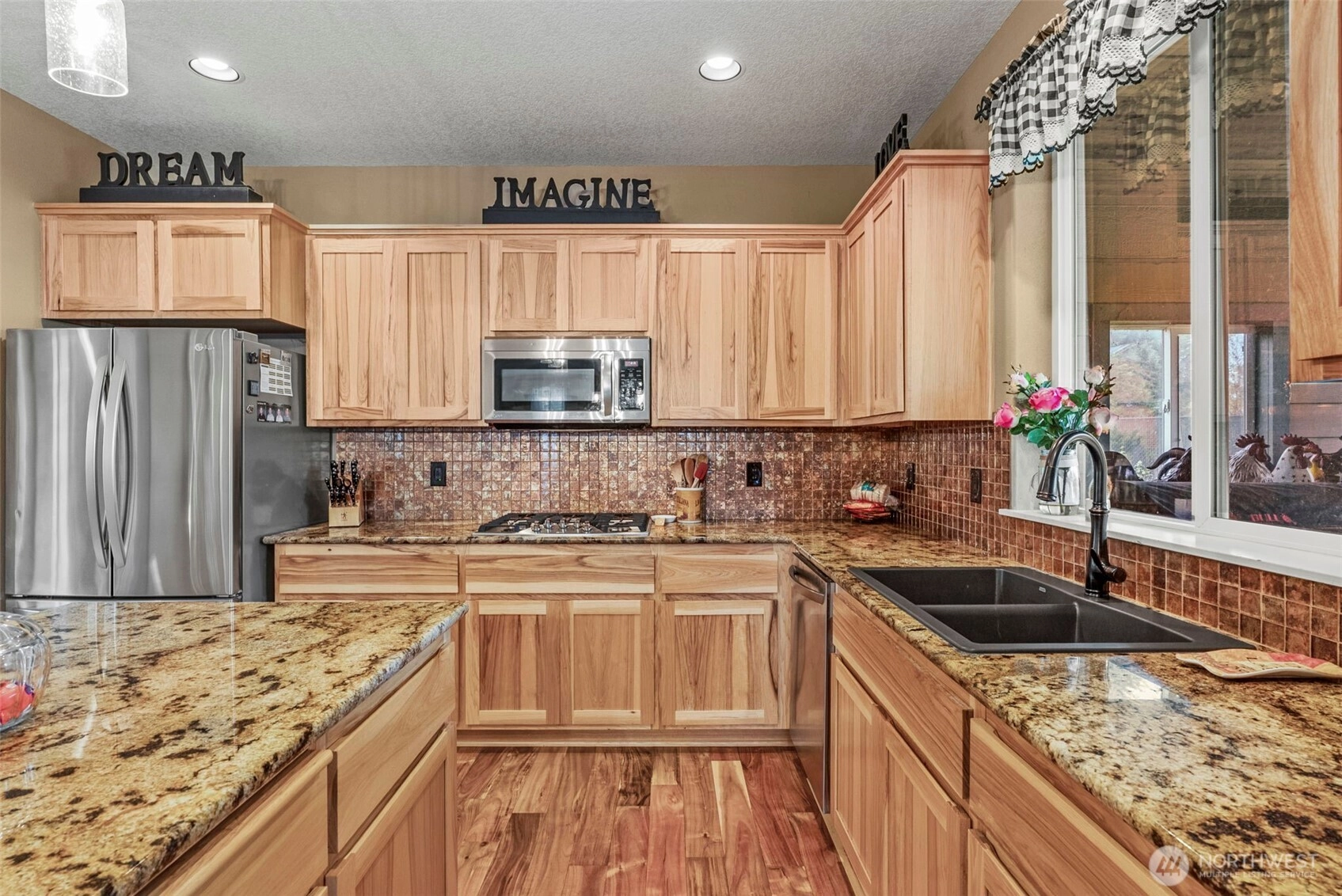 Close-in acreage with a stunning 2012-built home offering privacy, space, and modern comfort. This 3-bedroom home + a massive bonus room/optional 4th bed features real acacia hardwood floors throughout + an open-concept layout ideal for entertaining. The updated kitchen includes granite countertops, ample storage, a walk-in pantry, and farmhouse sink. The primary suite offers a soaking tub, separate shower, dual sinks, and a large walk-in closet. Spacious bedrooms and upstairs laundry add convenience. Enjoy year-round outdoor living with a private covered patio, outdoor kitchen, fire pit, and surround sound. Additional patio space, a workshop, and beautiful landscaping complete one acre parcel. Call your fav. realtor to get a private tour!