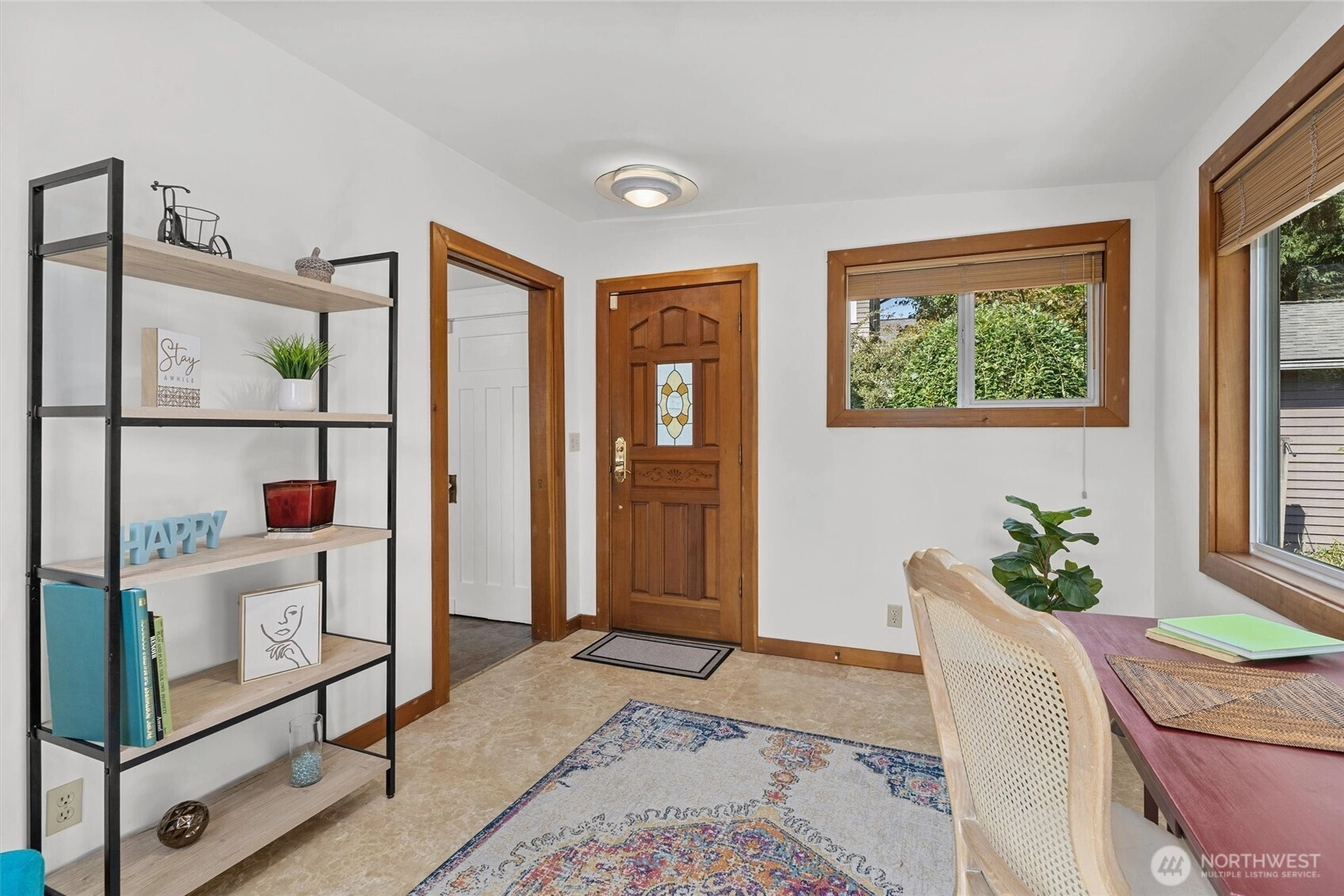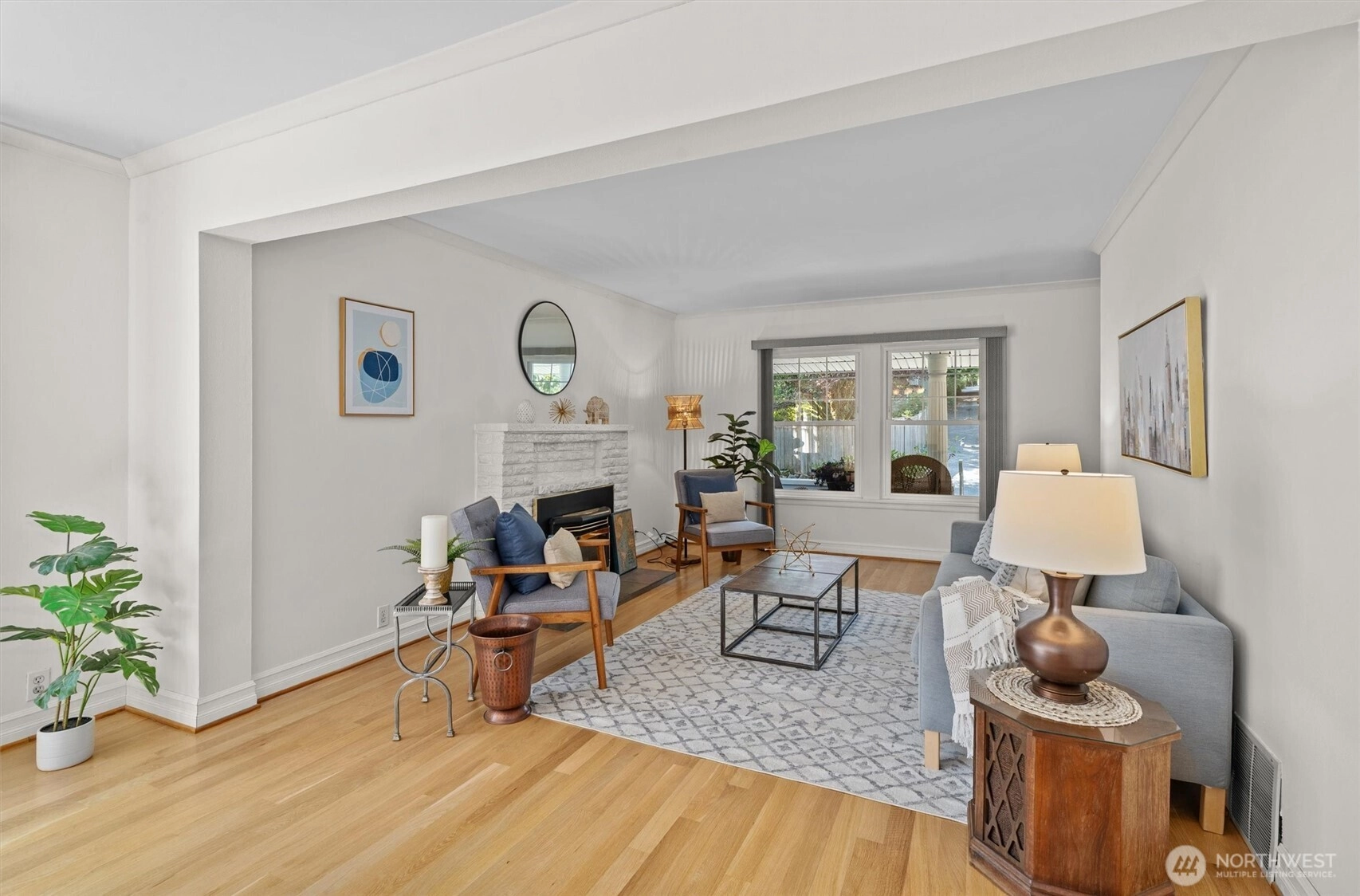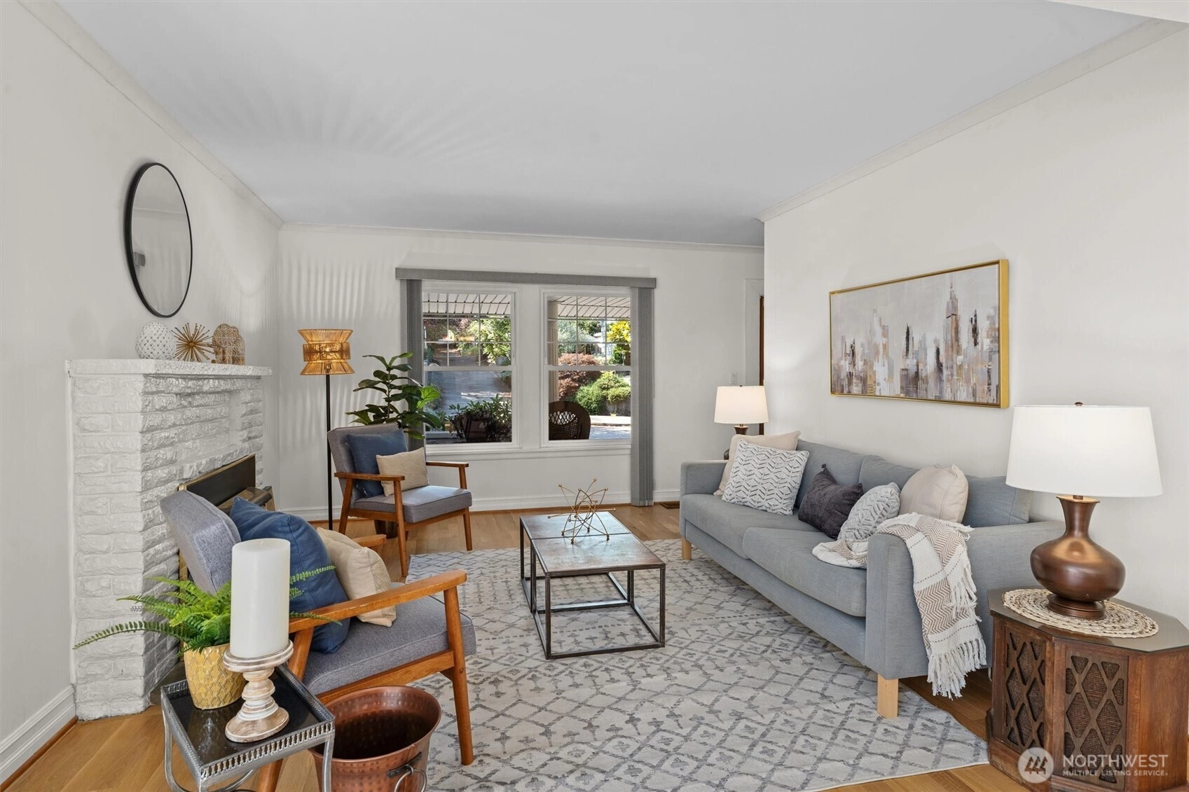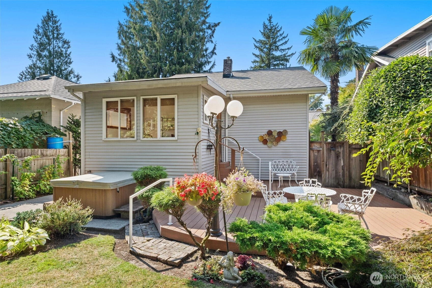 Charming Wallingford Craftsman on quiet street, refinished hardwoods, cozy gas fireplace. New electrical throughout and newer roof provide peace of mind. This home is a solid, basic value to buy into this sought-after neighborhood. Spacious living, dining rooms, bright kitchen. A back office/sunroom with garden views. Main floor has primary bed, ¾ bath and bonus room; upstairs are 2 bedrooms and ½ bath. Enjoy the covered front porch, backyard offers newer trex style deck, hot tub, lush yard, garden. Basement could be finished for more living space, or use as is for workshop, crafts, laundry, storage. Driveway - add EV charger? Stanford Elem Geo Zone. Quick access I-5, 520, Eastside. Recent appraisal at $1,037,000 gives you instant equity.