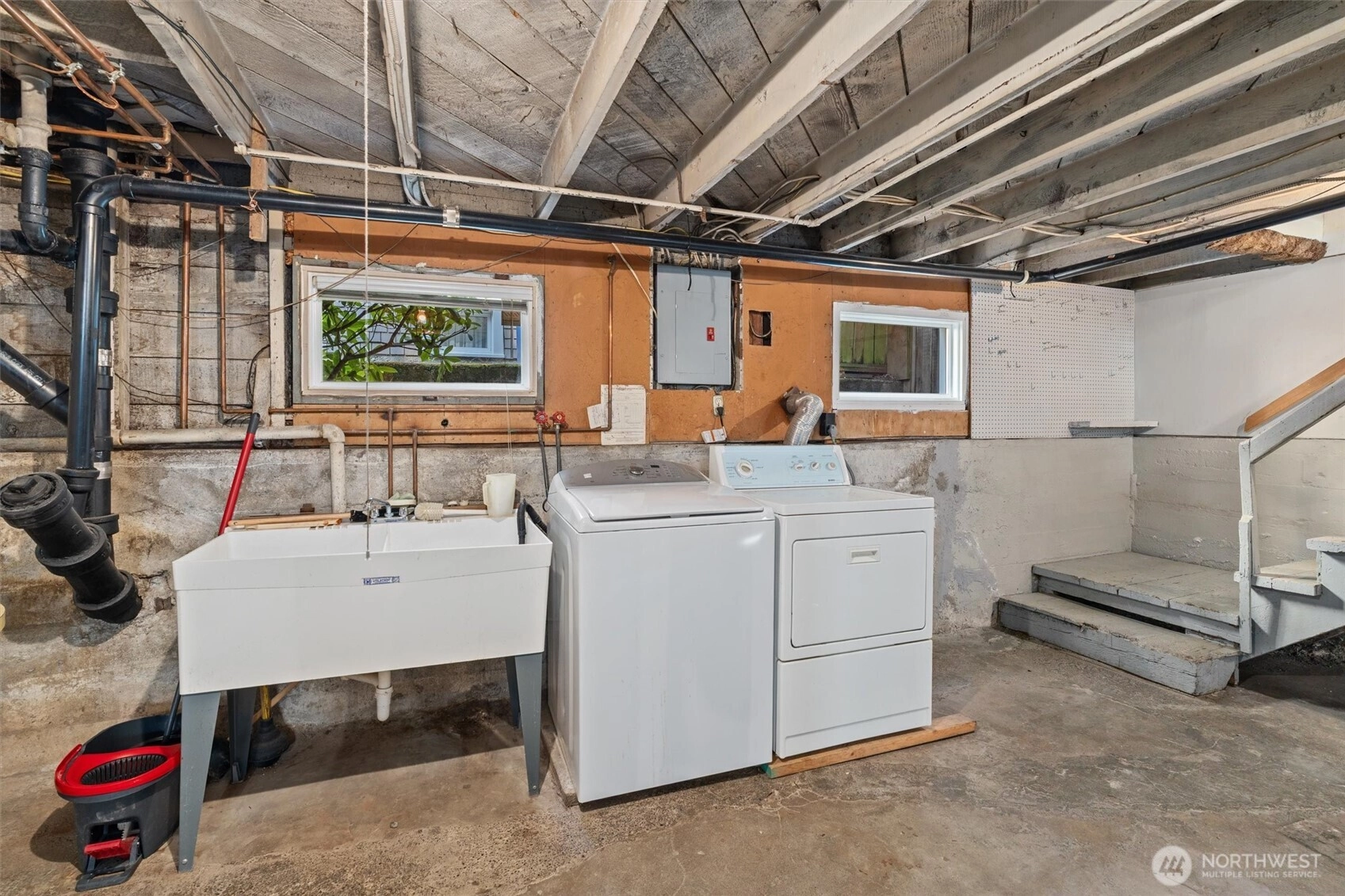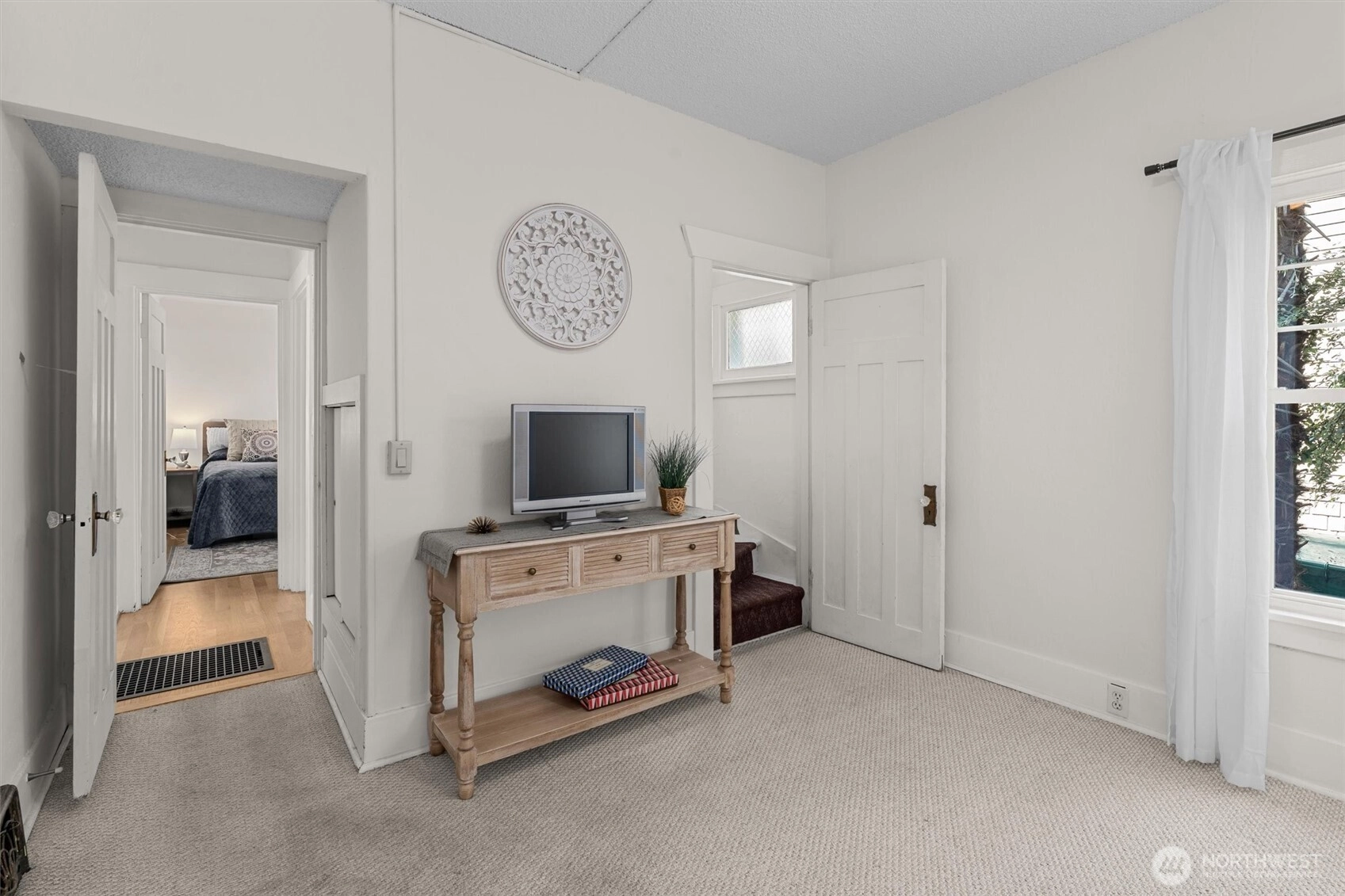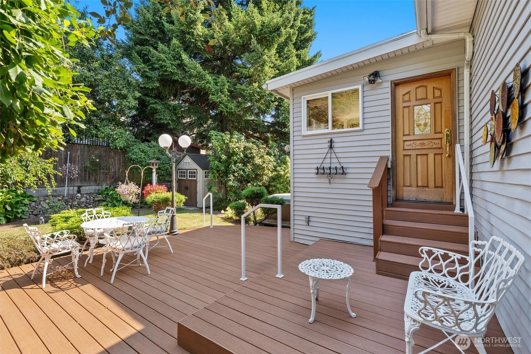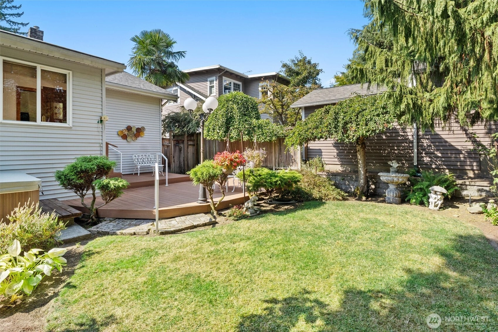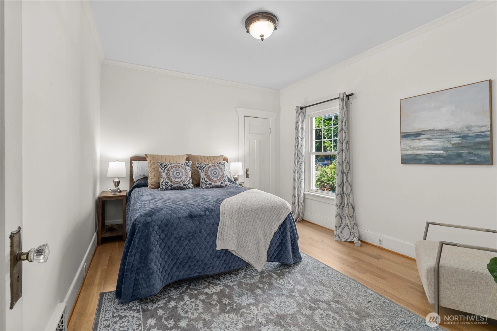 Charming Wallingford Craftsman on quiet street, refinished hardwoods, cozy gas fireplace. New electrical throughout and newer roof provide peace of mind. This home is a solid, basic value to buy into this sought-after neighborhood. Spacious living, dining rooms, bright kitchen. A back office/sunroom with garden views. Main floor has primary bed, ¾ bath and bonus room; upstairs are 2 bedrooms and ½ bath. Enjoy the covered front porch, backyard offers newer trex style deck, hot tub, lush yard, garden. Basement could be finished for more living space, or use as is for workshop, crafts, laundry, storage. Driveway - add EV charger? Stanford Elem Geo Zone. Quick access I-5, 520, Eastside. Recent appraisal at $1,037,000 gives you instant equity.