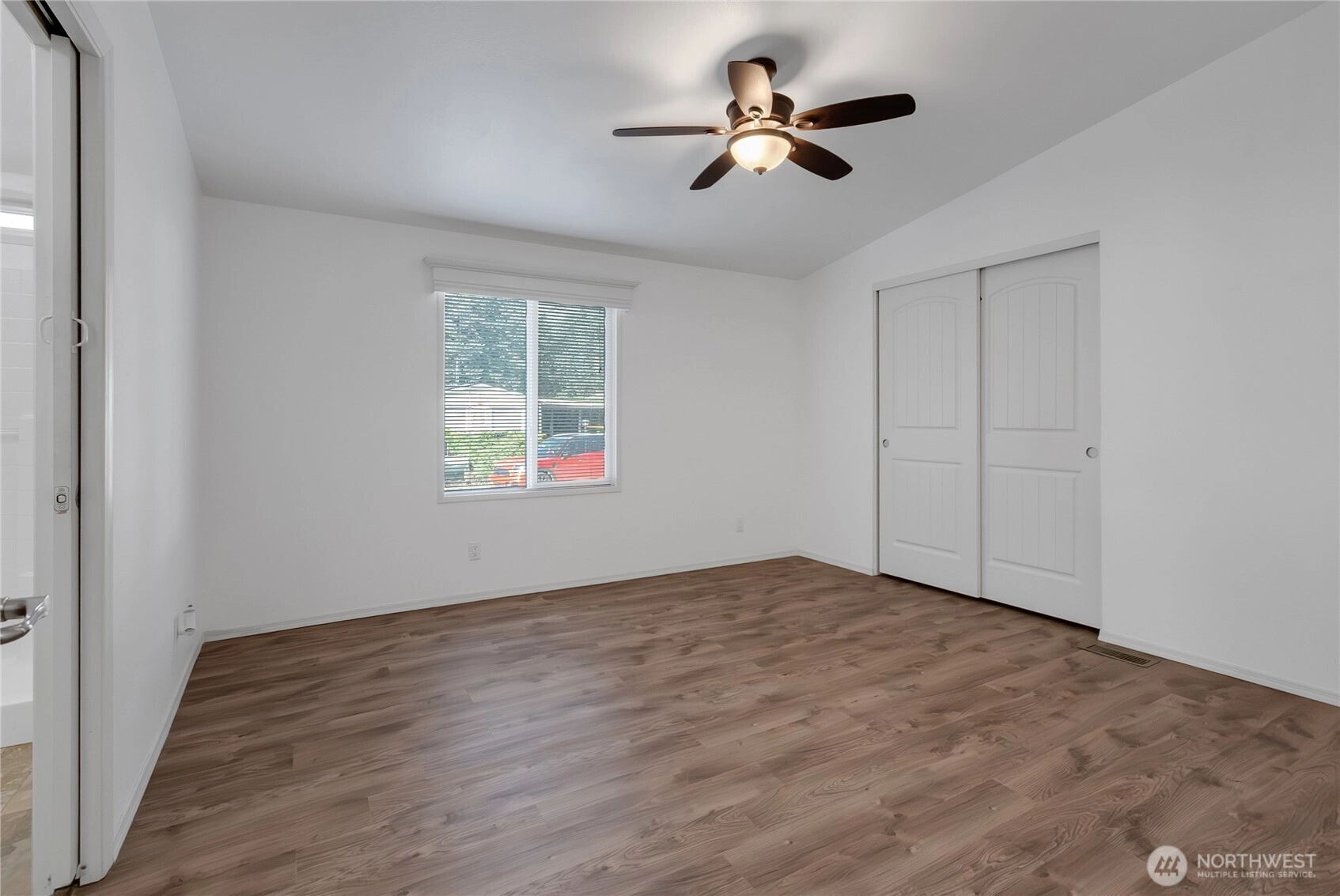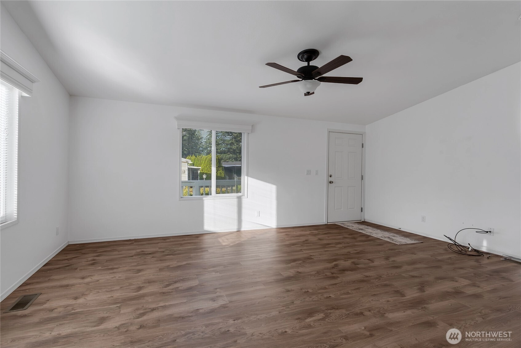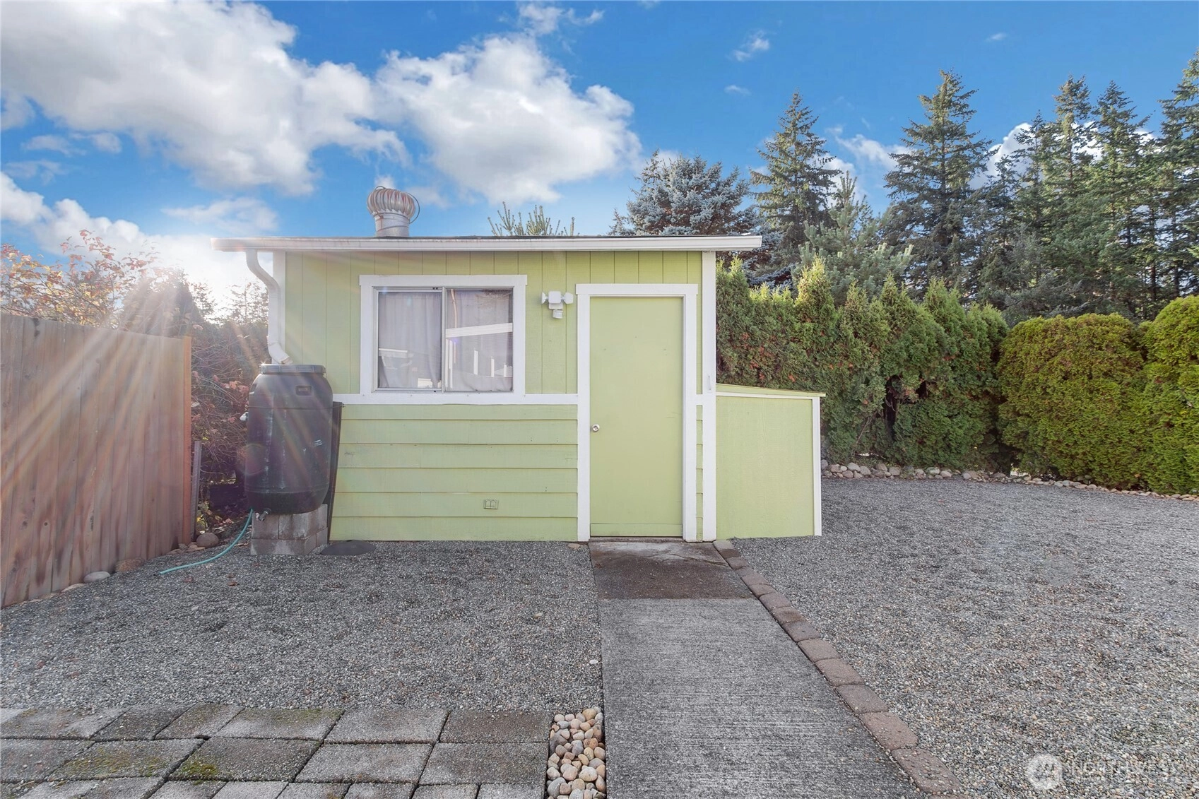 Must see this Well Maintained Open Concept & Spacious 2016 (NEWEST) Condo Unit in Tall Firs Park! Beautiful Corner Lot, Freshly Painted inside & Out! 55years+ Community. You OWN the 5400 sq ft Lot So you don't Pay lot Rent, just $125 HOA Monthly for Common Maintenance. 2 Bedrooms, 1 full bath 1,080 sq ft. One small Cat and Dog are Allowed( 35lbs or less), Covered 2 Car Carport and a Large Spacious Backyard with Shed. RV/boat Parking Available for Homeowner's use, on Septic. Clubhouse with a Kitchen, Event Space and Library for your use! Updated Appliances, New Roof, AC installed Summer 2025, Updated Landscaping and Carport. All Appliances to stay. 1Yr Warranty to new Buyer. Easy access to Shopping, I-5, Buses and all Basic Needs.