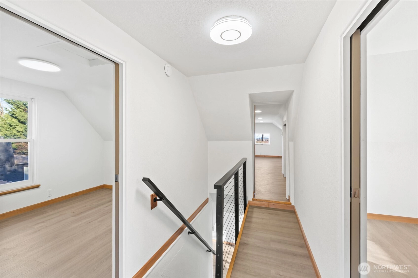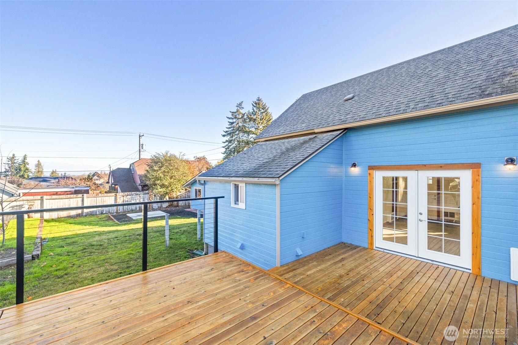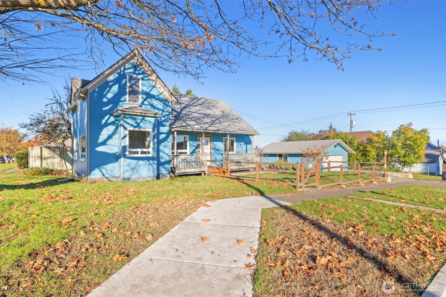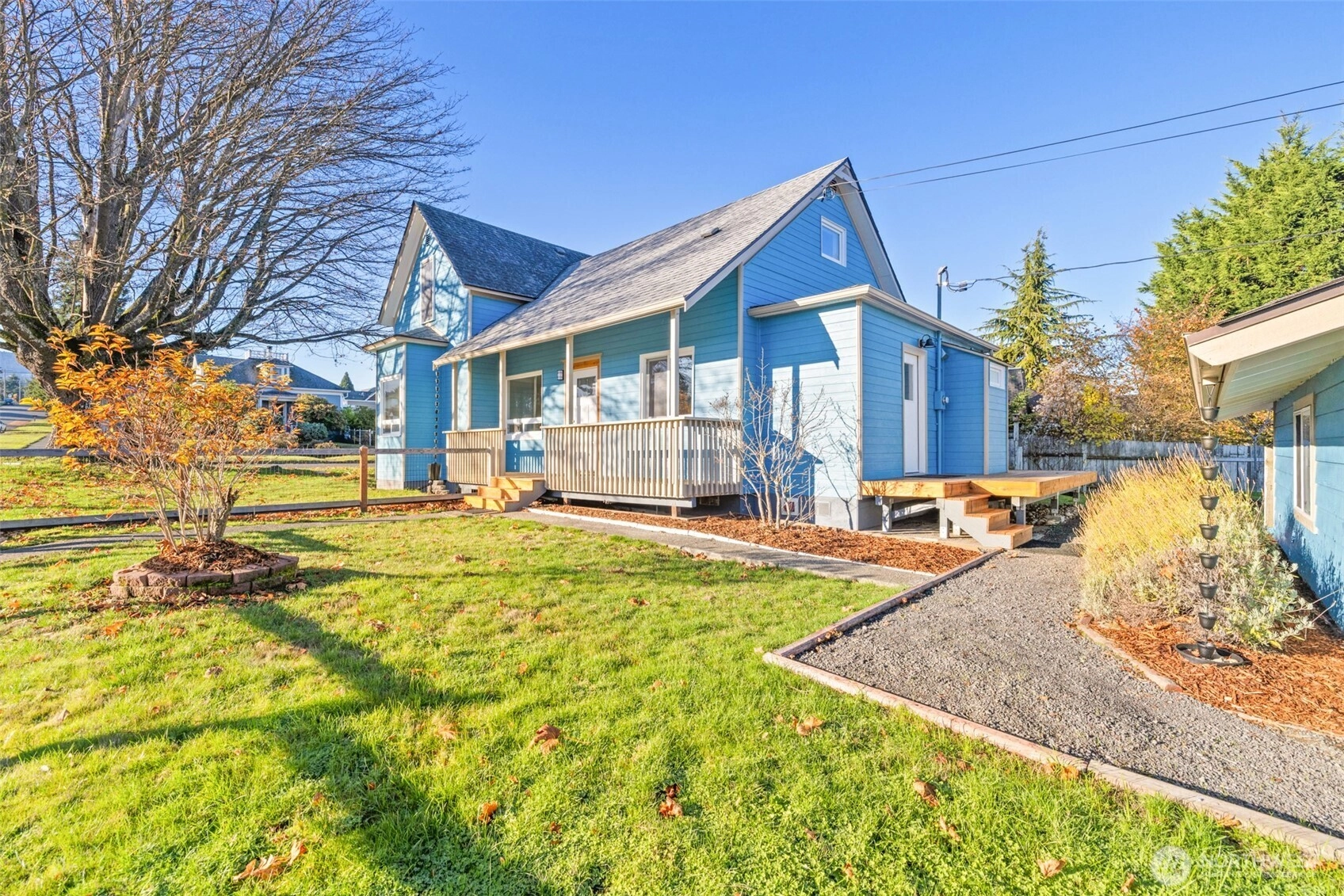 Welcome to this beautifully restored 1890 gem, blending old-world charm w/modern touches. Enjoy partial water views & sweeping mountain vistas from the outside in...from the covered porch & expansive custom multi-level deck—ideal for relaxing or entertaining, to the perfectly positioned living room windows. You’ll also discover quality updates; laminate flooring, a striking focal light fixture & railings, & natural wood trim throughout. The spacious kitchen features tiled floors, abundance of cabinets, built-in coffee bar, & new stainless appliances. With 1 bedroom on the main level and 3 bedrooms upstairs (w/water views!), plus a fenced yard w/concrete patio, garden beds & detached garage, this property offers sleek, comfortable living.