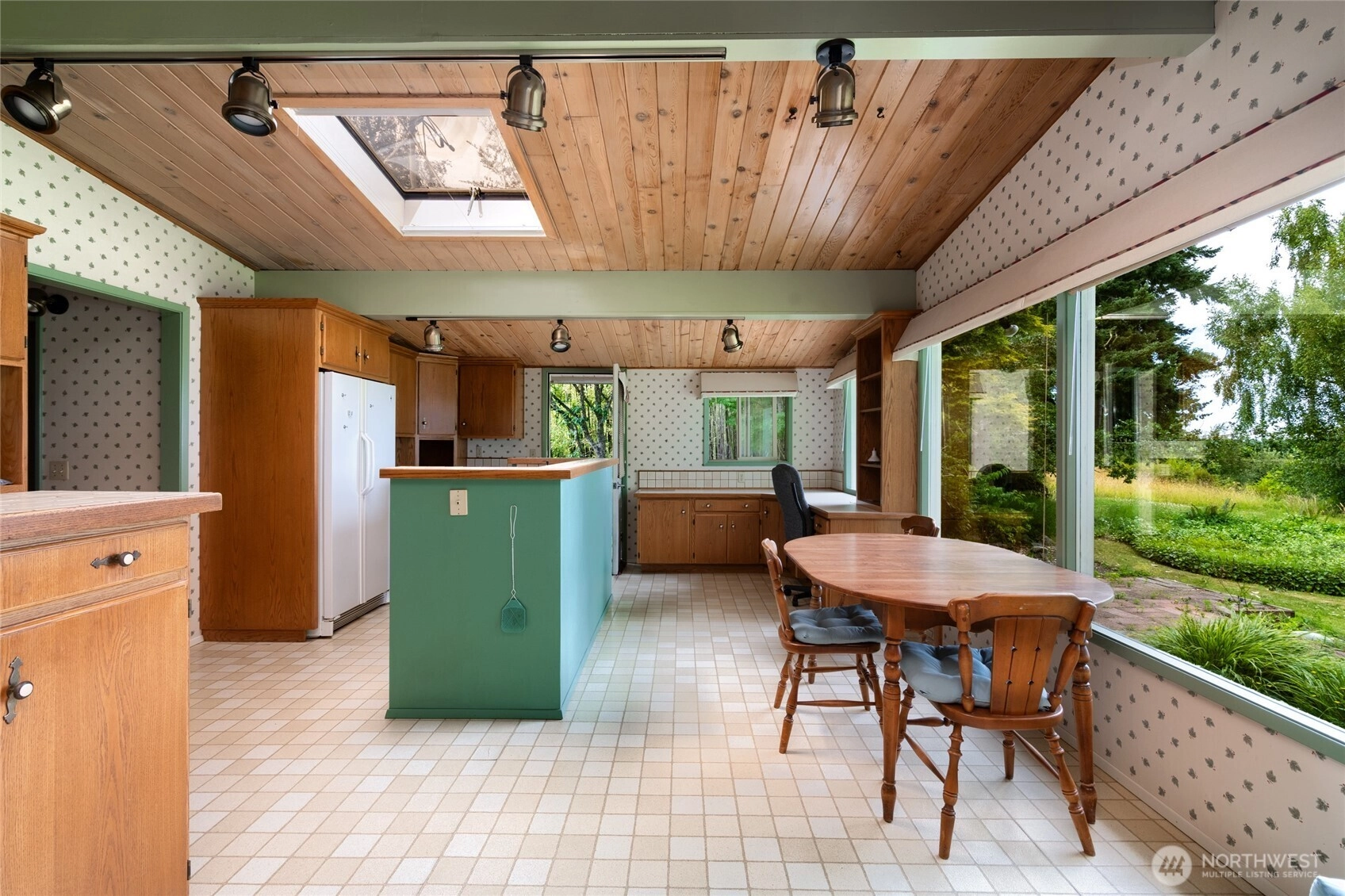 Welcome to a pocket of peace on North Whidbey. This main level living mid-century home features vaulted tongue & groove ceilings, exposed beams, warm original wood paneling & ample natural lighting, sweeping views, endless garden space, detached garage/shop, AND privacy situated on just shy of an acre. Look to Skagit Bay, Mount Baker, Ika Island and Goat Island from your future home with 3 beds + 2 baths. Generous living space w easy outdoor access to deck space. Private yard has been wonderfully maintained w mature landscaping, raised fruit & vegetable garden beds. Wind through the garden & feel the magic of this property. Very desirable corner of Whidbey Island w groceries, beach access, trail access, Cornet Bay, Deception Pass close by.