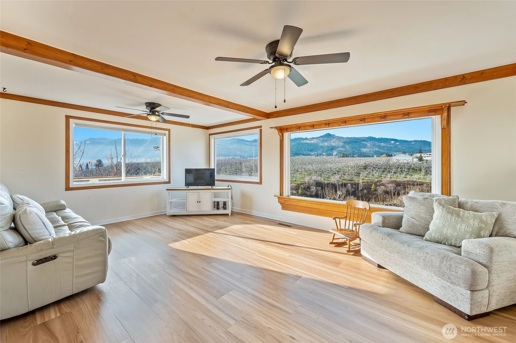 Perched on a sunny hillside just outside Leavenworth, this charming 4-bedroom, 3-bath home captures sweeping views of the Cascade Mountains in every direction. Classic farmhouse warmth blends with modern comfort throughout. Soak in the peaceful setting from the deck overlooking the valley, or unwind in the spacious yard surrounded by nature. A private pear orchard brings a touch of country living right to your doorstep. With a detached two-car garage/shop and space for animals or projects, this property offers an exceptional slice of mountain serenity.