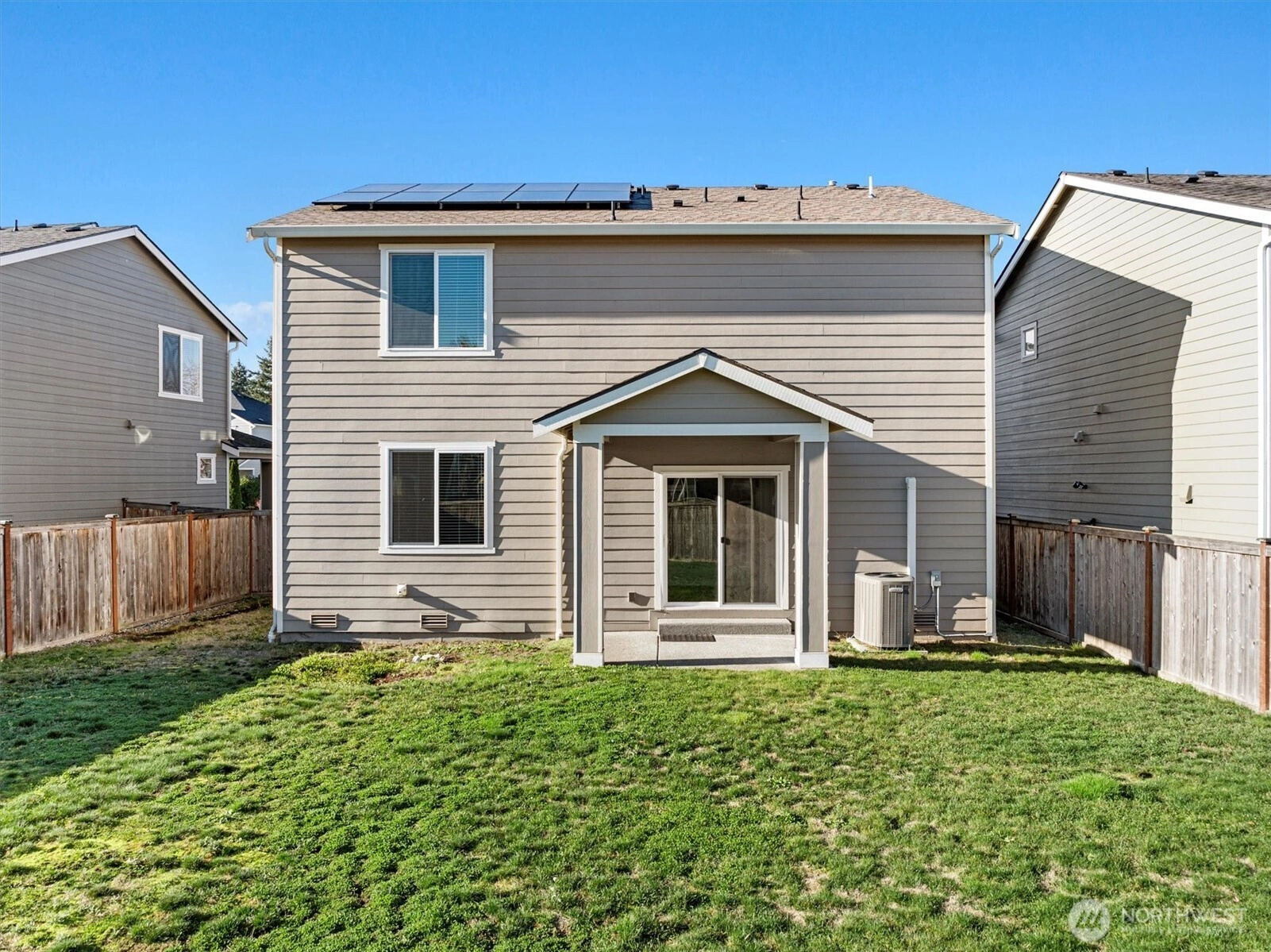 Thoughtfully designed and move-in ready, this 3-bedroom, 2.5-bath home offers comfort, style, and energy savings with AC and solar panels (fully paid, convey to buyer). The bright kitchen features granite countertops, gorgeous cabinetry, and an oversized pantry perfect for cooking and entertaining. The spacious primary suite boasts a large walk-in closet, while the attached 2-car garage adds convenience. Step outside to a fully fenced backyard with a covered patio, ideal for year-round gatherings. Located in a terrific silent neighborhood, just minutes from Costco, Amazon, Boeing, shopping, dining and much more! This home truly combines modern amenities with an unbeatable location!