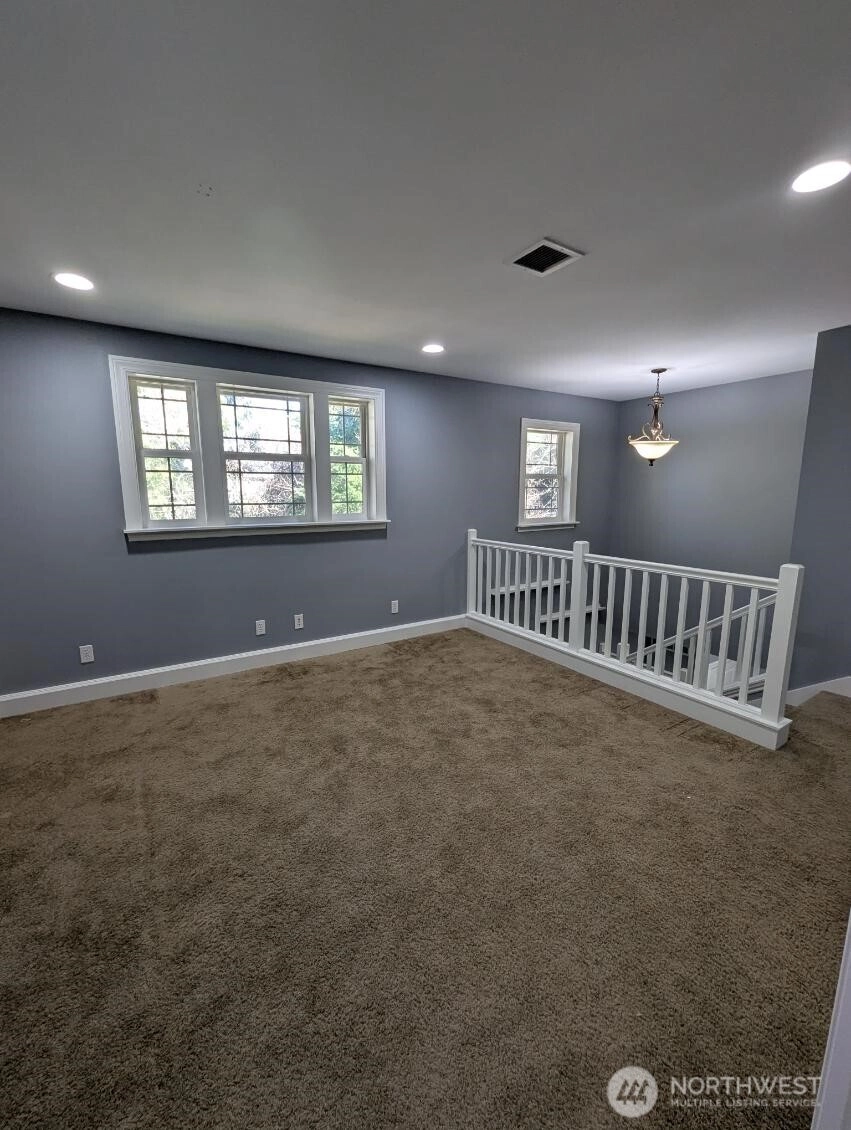 This beautiful Craftsman gem sits on a 1.46 acre corner lot with beautiful views. This spectacular home features spacious rooms & multiple bonus room spaces. On the main level, the bright open living room features a gas fp & opens to the dining area, large gourmet kitchen & den which all open to the large covered back deck ideal for entertaining. The upper level features primary suite w/a luxurious bath & walk-in closet, and additional bedrooms. The nearly approx 1200 sqft daylight basement features family room, bath, wet bar, bonus rooms/offices or den. Large guest suite above garage. Home is outfitted with solar panels and full house generator. This tranquil home & setting is everything & more. A MUST SEE!