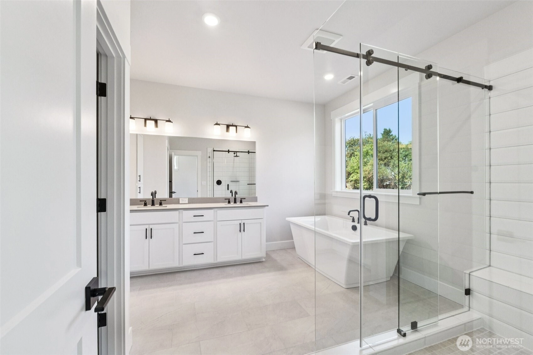 MOVE IN READY! Gorgeous boutique community near the heart of Enumclaw. All one level living with 9-foot ceilings, luxurious primary suites, open concept, island kitchens and ample spaces. The home features an open chef's kitchen with large island, GE Cafe appliances including gas cooktop and backyard deck that offers serenity and privacy. Primary suite with walk-in closet, 5-piece bath including shower with mudset pan, tile surround and frameless bar door style doors plus dual sinks and a free-standing tub. Spacious laundry with sink cabinet and expansive uppers for added storage. Gas fireplace and BBQ stub as well. Open Sat-Tues 10-5, Wed 1-5, If working w/realtor, Buyer to register agent on 1st visit.