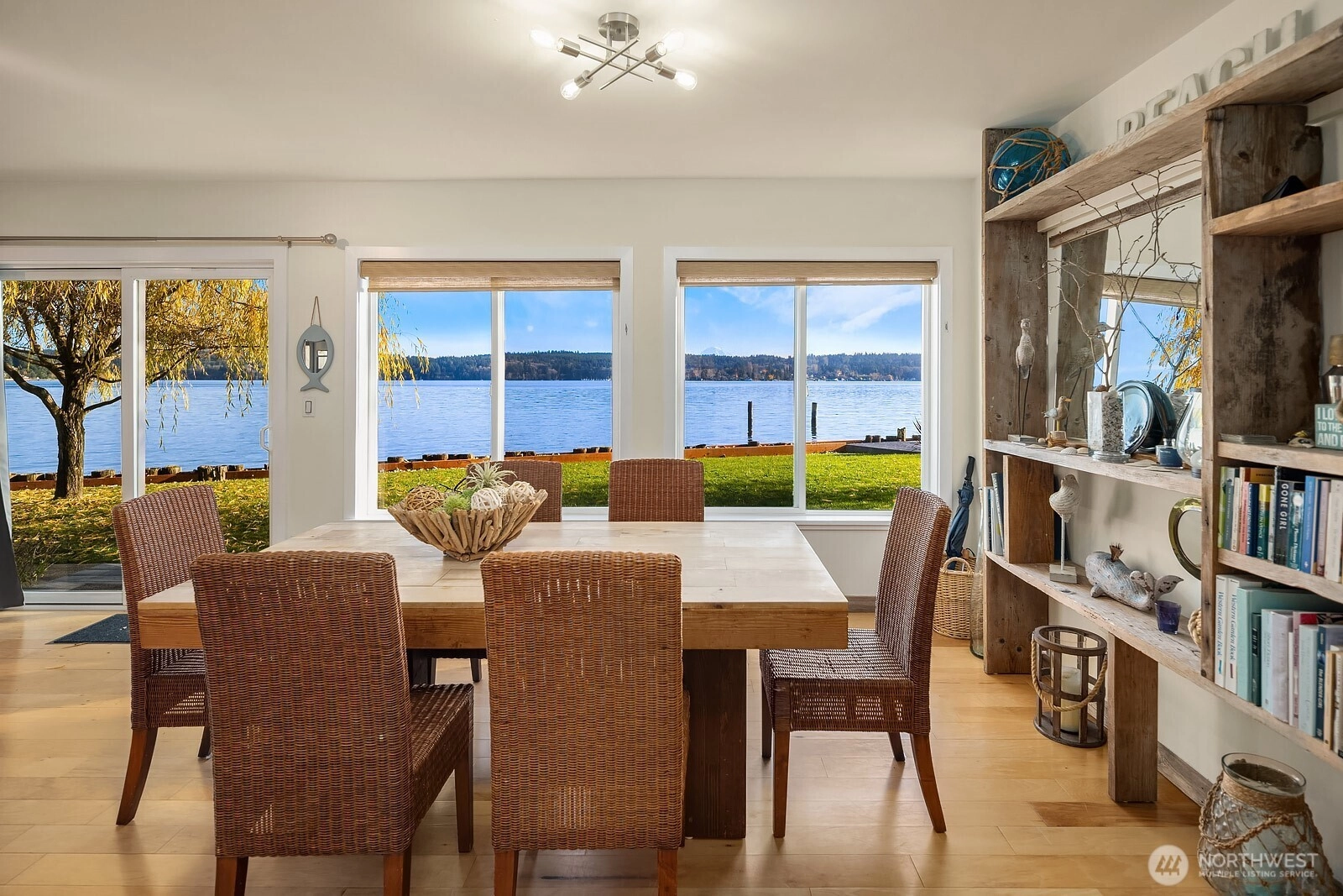 Zen waterfront living in this charming Vashon Island home with 3 beds and 1.5 baths on 2 spacious lots. Boasting 150 feet of low-bank shoreline, with sweeping views of the water and Mt. Rainier, this property includes two tax parcels, a boat launch, and a registered mooring buoy. Inside, a wall of windows frames the stunning scenery while the cozy interior blends charm with modern comfort. Outside, relax by the beachside fire pit or on the lawn that stretches to a deck at the water’s edge. Proven short-term rental success adds investment appeal, and most furnishings may remain (191 reviews!). Located near Burton shops, parks, this home combines serene surroundings with everyday ease. 6-min to S ferry, 19-min to N ferry. 10 min to town.