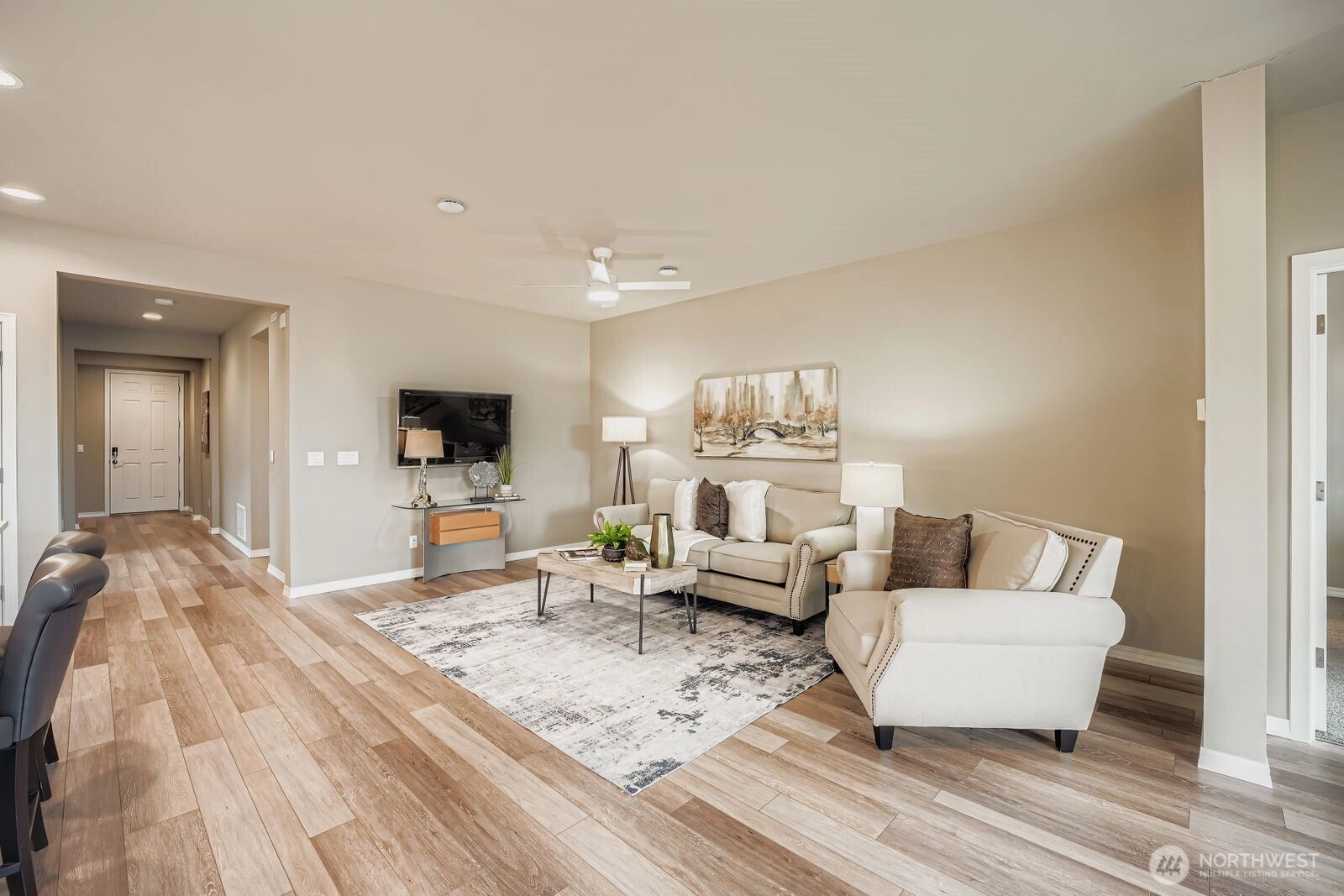 Move into this 55+ community to live your best life at Trilogy. Enjoy a social and active lifestyle with an abundance of resort style amenities including a gym, swimming pool, sport courts, community clubhouse, a private dining establishment and more. This home has a super functional floorplan for great room living, the kitchen has a huge island breakfast bar and is open to the living and dining areas, the gathering place. The primary suite at the back of the house has an ensuite bathroom and walk-in closet. up front is another bedroom with ensuite bath for a private guest suite. Theres a flex room for a den/office or? a guest bath and large laundry room. Covered patio for all season enjoyment of the outdoors and a fully fenced backyard.