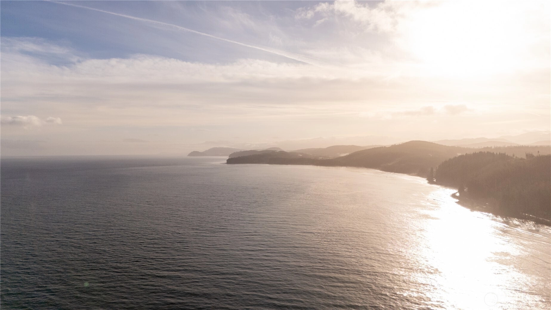 Very well kept and move-in ready home with a breathtaking view of the Strait of Juan de Fuca. Tucked away in a small neighborhood on a low-traffic dead-end street, surrounded by swaths of timberland. Nearly a half acre lot with an open backyard and weatherproof deck. Exterior has thick cedar siding, fresh paint, and a roof that is only a few years old. Top notch upkeep from leaf guards on gutters to a clean, vented crawl space with a vapor barrier. Interior has great flow, a spacious laundry room leading to the attached garage, and a private guest room with its own sink. Big windows highlight the view and bring in natural light. Bedrooms feature new carpet, laminate, and even some original Douglas fir flooring. PUD water is a major bonus!