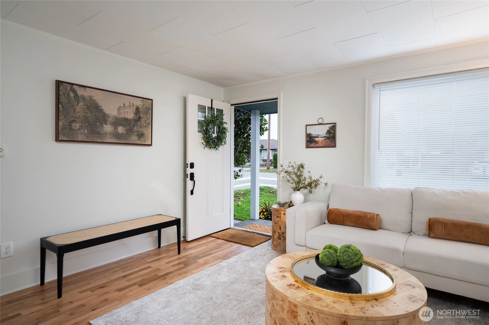 Darling 2 bed,1 bath home in a desirable area of Mount Vernon. Built in 1949, this fully remodeled charmer sits on a quiet street near Hilcrest park. This cottage boasts real hardwood floor lovingly restored, new roof, updated kitchen with classic butcher block counters, remodeled bathroom with new tile shower and new interior & exterior paint. Classic built-ins provide storage and add to historic charm. Corner windows flood the home with plenty of natural light and a mudroom gives access to a perfect size backyard along with detached garage and ample parking. At +/- 752 sq ft, this quaint home is cozy with efficient spaces is close proximity to Skagit Regional Hospital, downtown Mount Vernon and more.