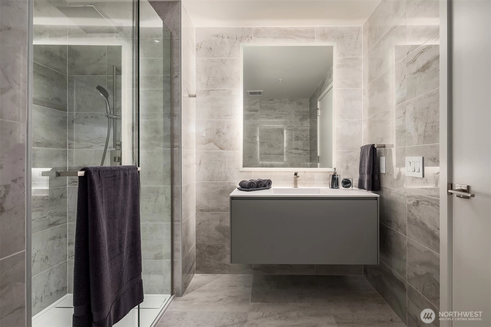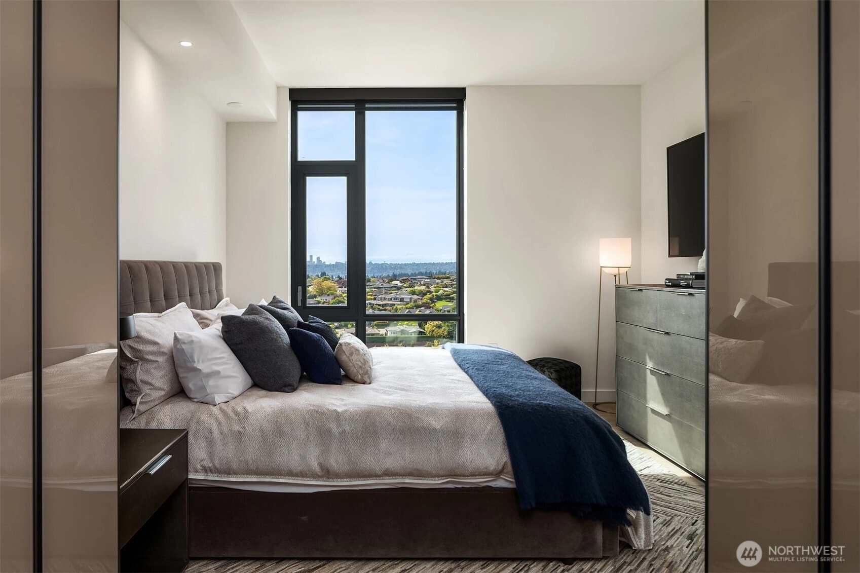 Nestled in the heart of downtown Bellevue, this brand new luxury condo offers a refined two-bedroom, two-bath retreat crafted for modern living. Smart and functional, the residence boasts top of the line fixtures from world renowned brands, blending elegance with practicality. Thoughtfully crafted interiors feature harmonious tones, clean lines and discreet textures, creating a balanced environment that nurtures well-being. Beyond your private sanctuary, enjoy amenities including a fitness room, stylish lounge and pet area. The building's modern lobby welcomes you with dramatic lighting, a living wall and a striking fireplace - signaling your arrival at a place where luxury and wellness converge seamlessly. Images are representative.