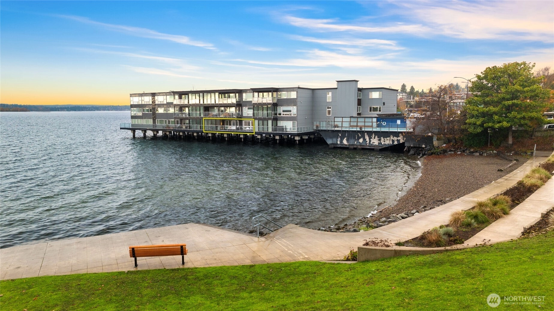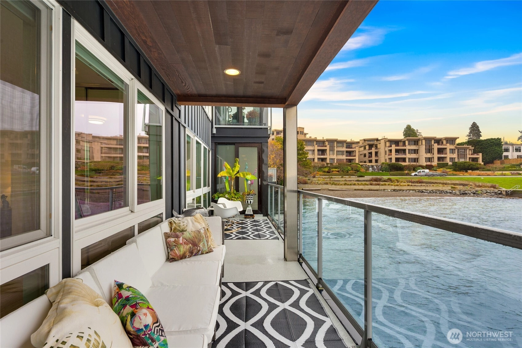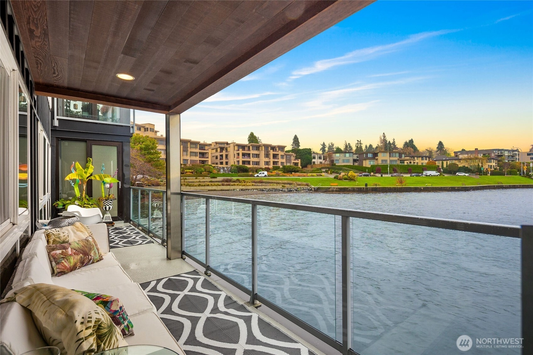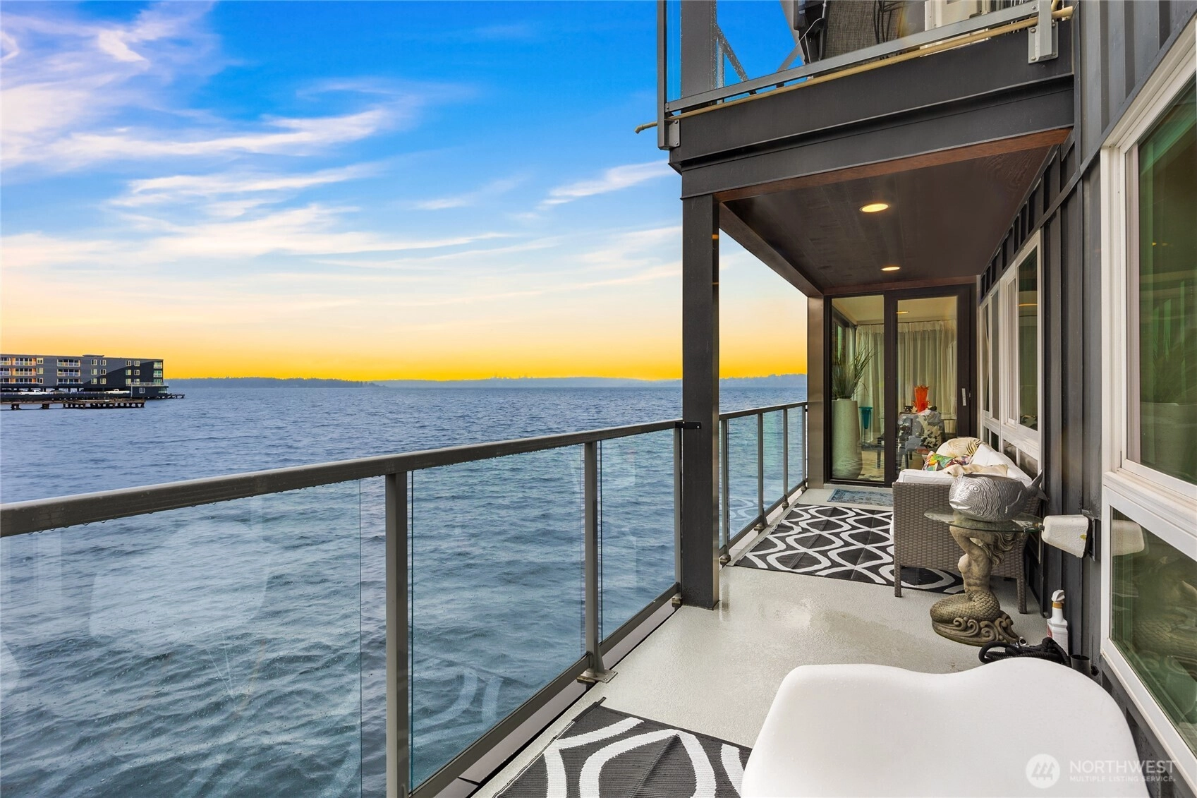 Unwind in this luxury two bed waterfront condo. Elegant home with tasteful updates, finishes & features throughout and just a few steps away from downtown Kirkland. Featuring an expansive, oversized deck with unobstructed S facing views, enjoy activity on the lake, gorgeous sunsets, lights of Seattle, fireworks displays. You'll love this incredible kitchen with upscale appliances and hardwoods. Take in the views from this private primary on suite with heated floors in both bathrooms, new vanities, new carpeting and stacked LG washer & dryer. Great location, walking distance to shops, restaurants, parks with secure building with elevator, level entry. Bask in the calm of the private pool with moorage opportunity.
