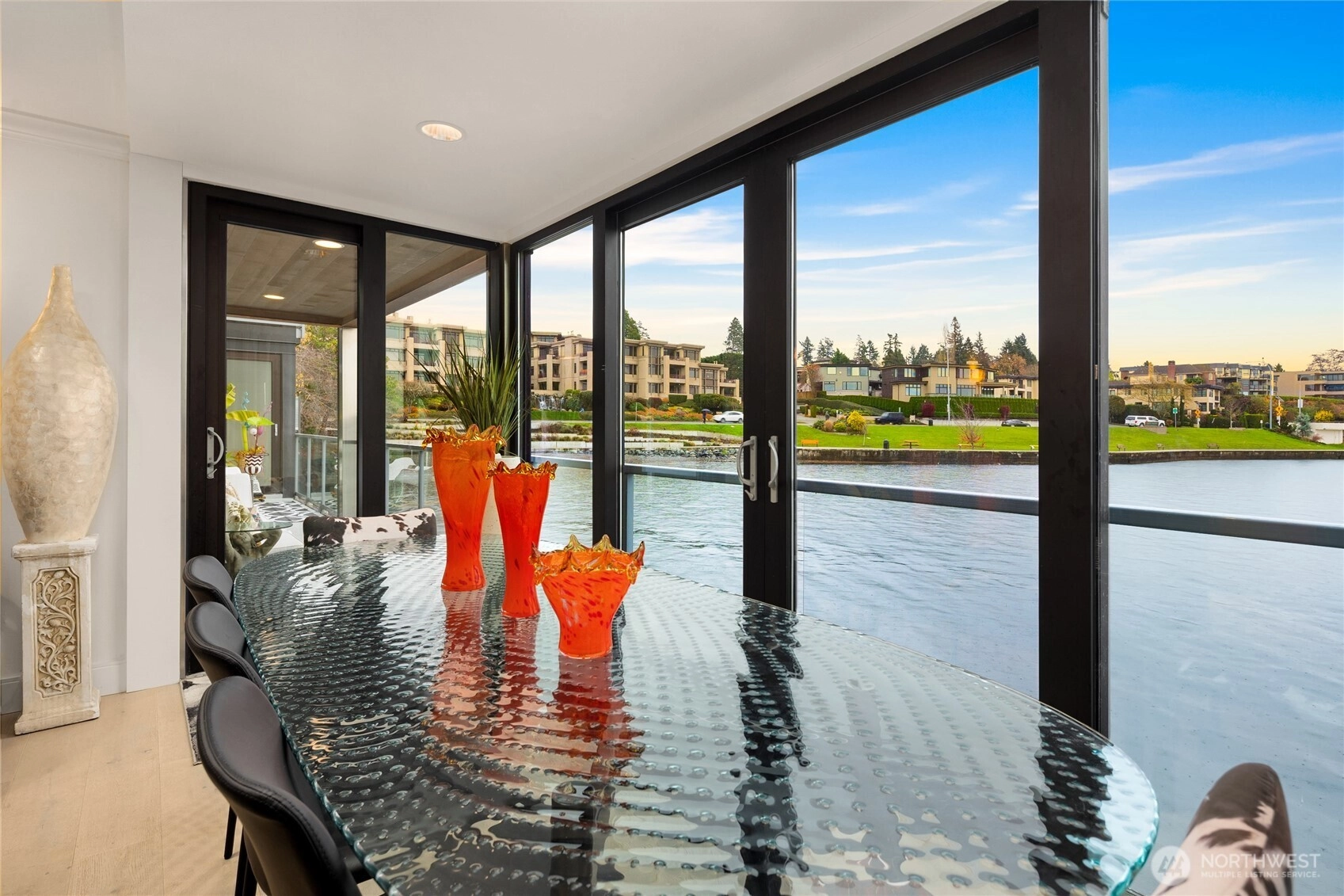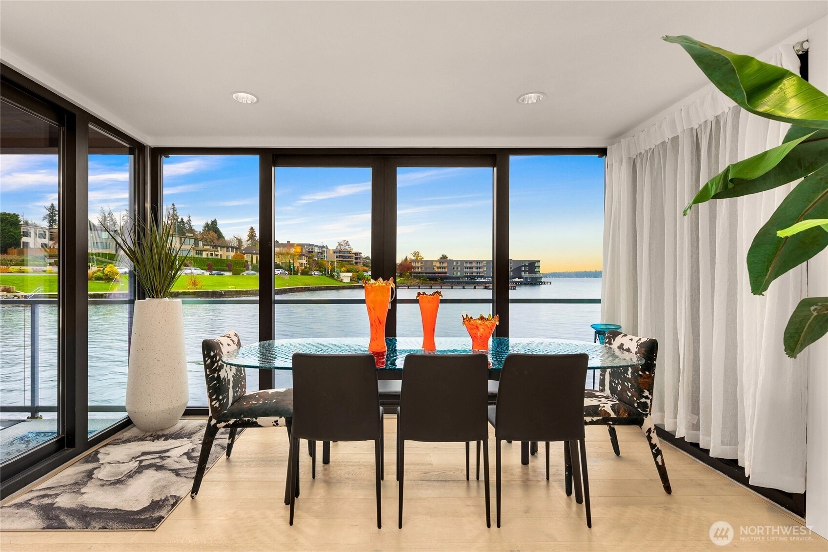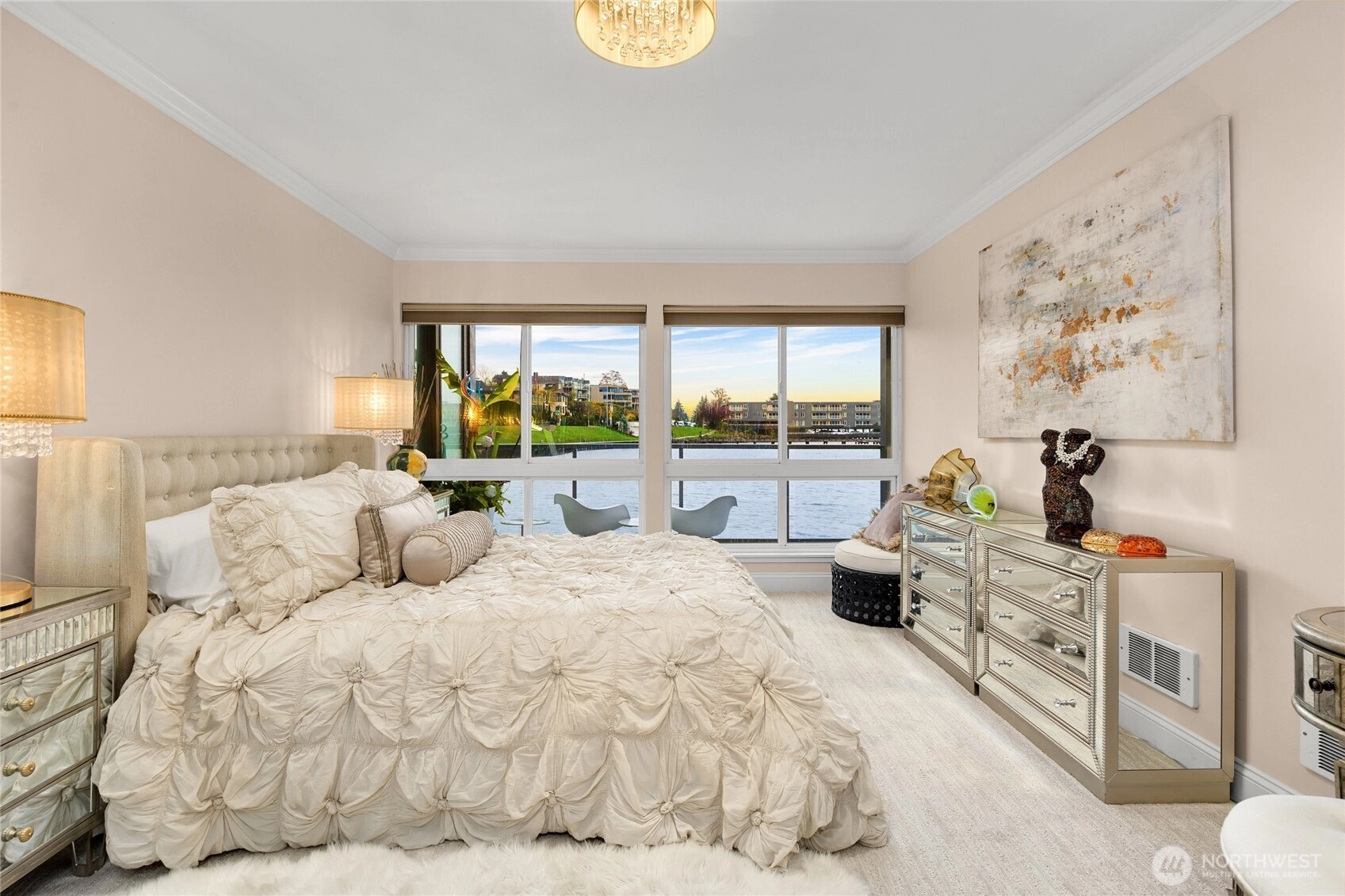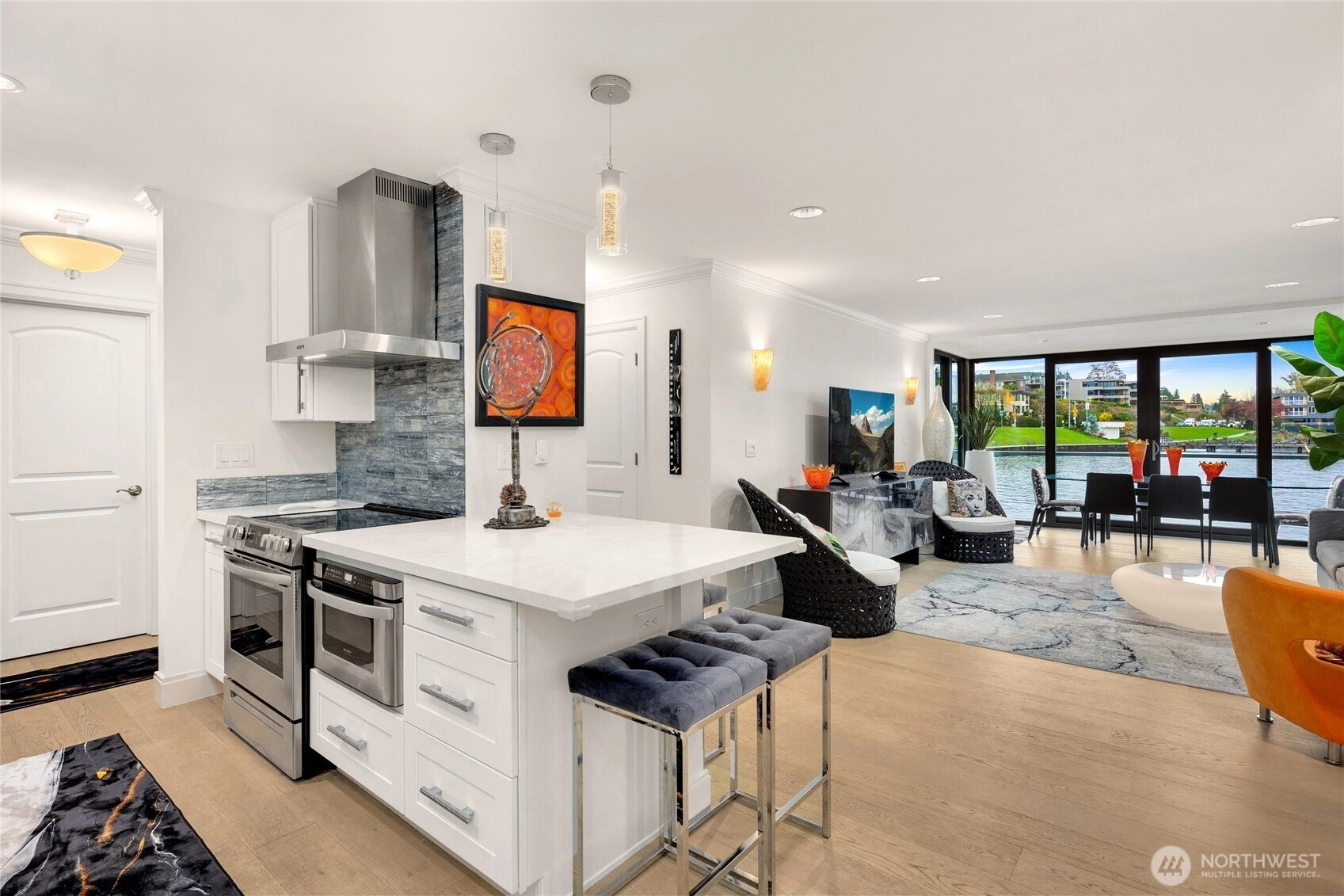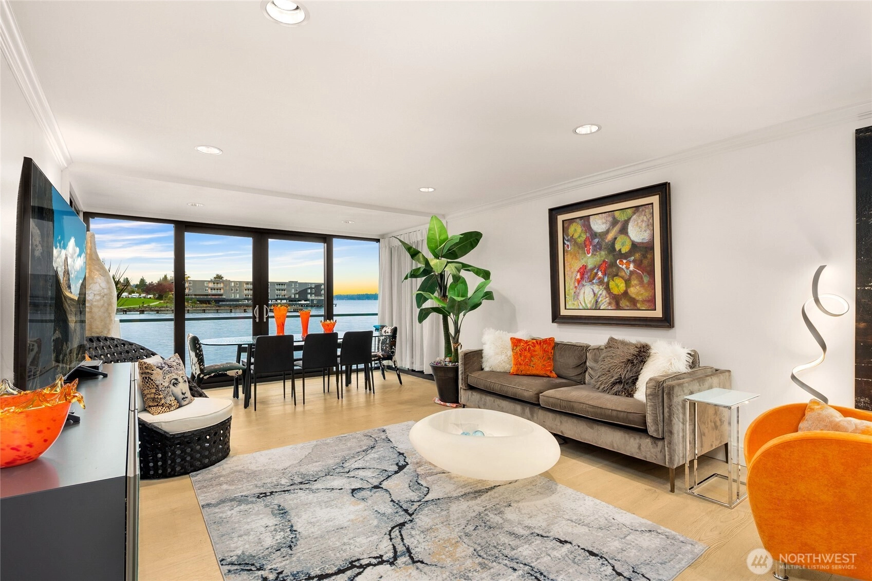 Unwind in this luxury two bed waterfront condo. Elegant home with tasteful updates, finishes & features throughout and just a few steps away from downtown Kirkland. Featuring an expansive, oversized deck with unobstructed S facing views, enjoy activity on the lake, gorgeous sunsets, lights of Seattle, fireworks displays. You'll love this incredible kitchen with upscale appliances and hardwoods. Take in the views from this private primary on suite with heated floors in both bathrooms, new vanities, new carpeting and stacked LG washer & dryer. Great location, walking distance to shops, restaurants, parks with secure building with elevator, level entry. Bask in the calm of the private pool with moorage opportunity.
