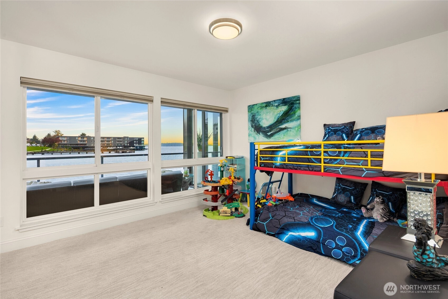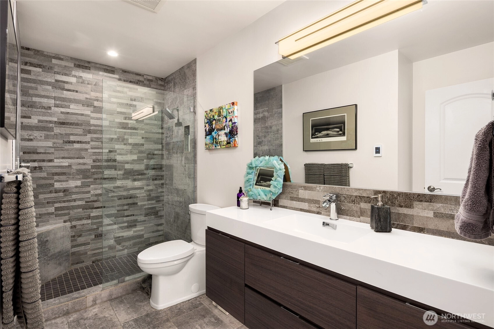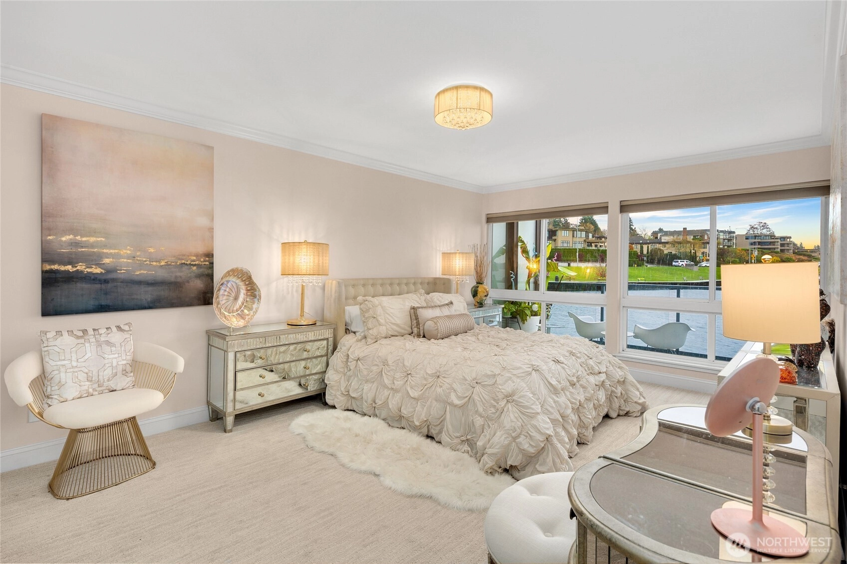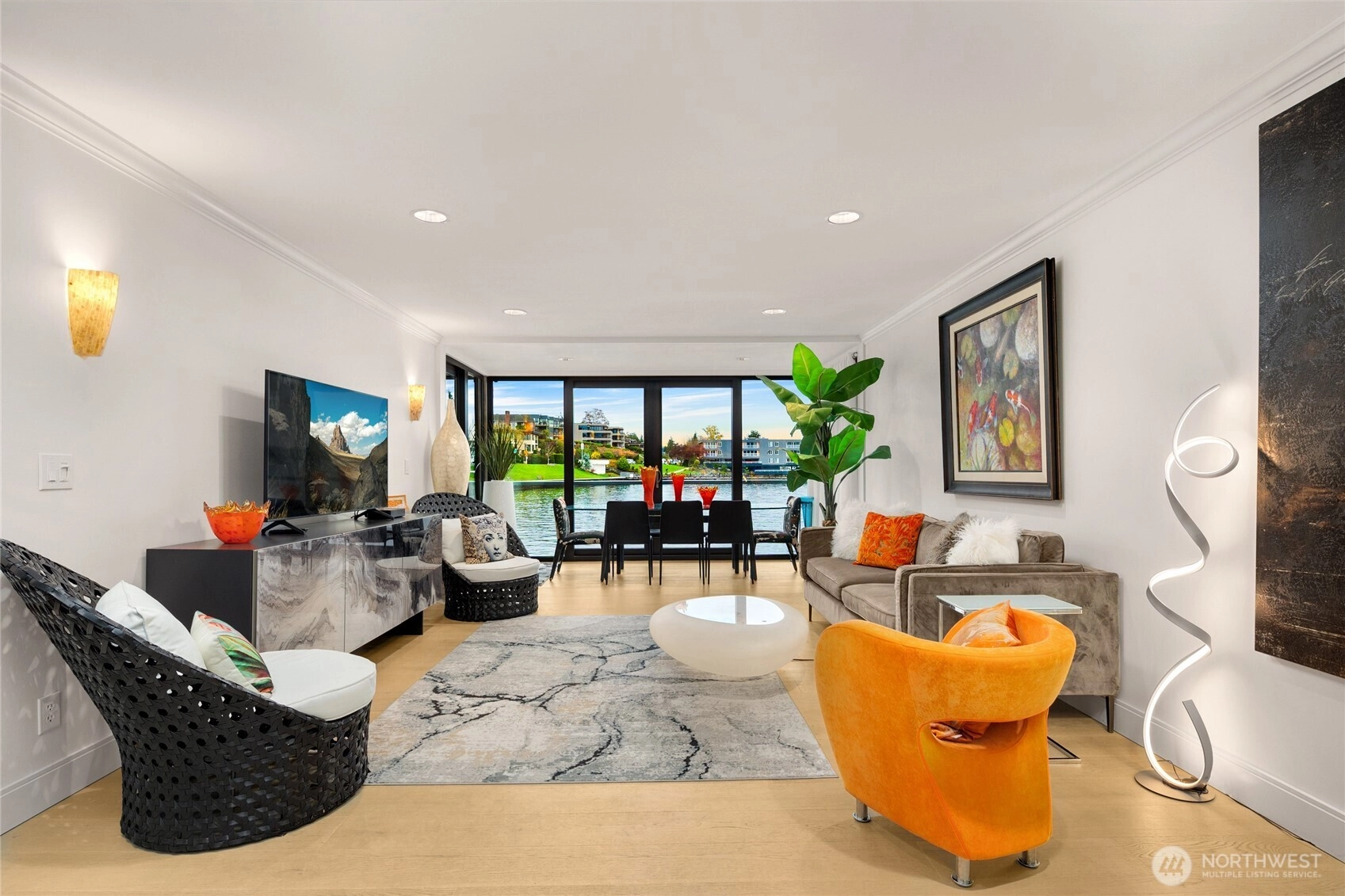 Unwind in this luxury two bed waterfront condo. Elegant home with tasteful updates, finishes & features throughout and just a few steps away from downtown Kirkland. Featuring an expansive, oversized deck with unobstructed S facing views, enjoy activity on the lake, gorgeous sunsets, lights of Seattle, fireworks displays. You'll love this incredible kitchen with upscale appliances and hardwoods. Take in the views from this private primary on suite with heated floors in both bathrooms, new vanities, new carpeting and stacked LG washer & dryer. Great location, walking distance to shops, restaurants, parks with secure building with elevator, level entry. Bask in the calm of the private pool with moorage opportunity.