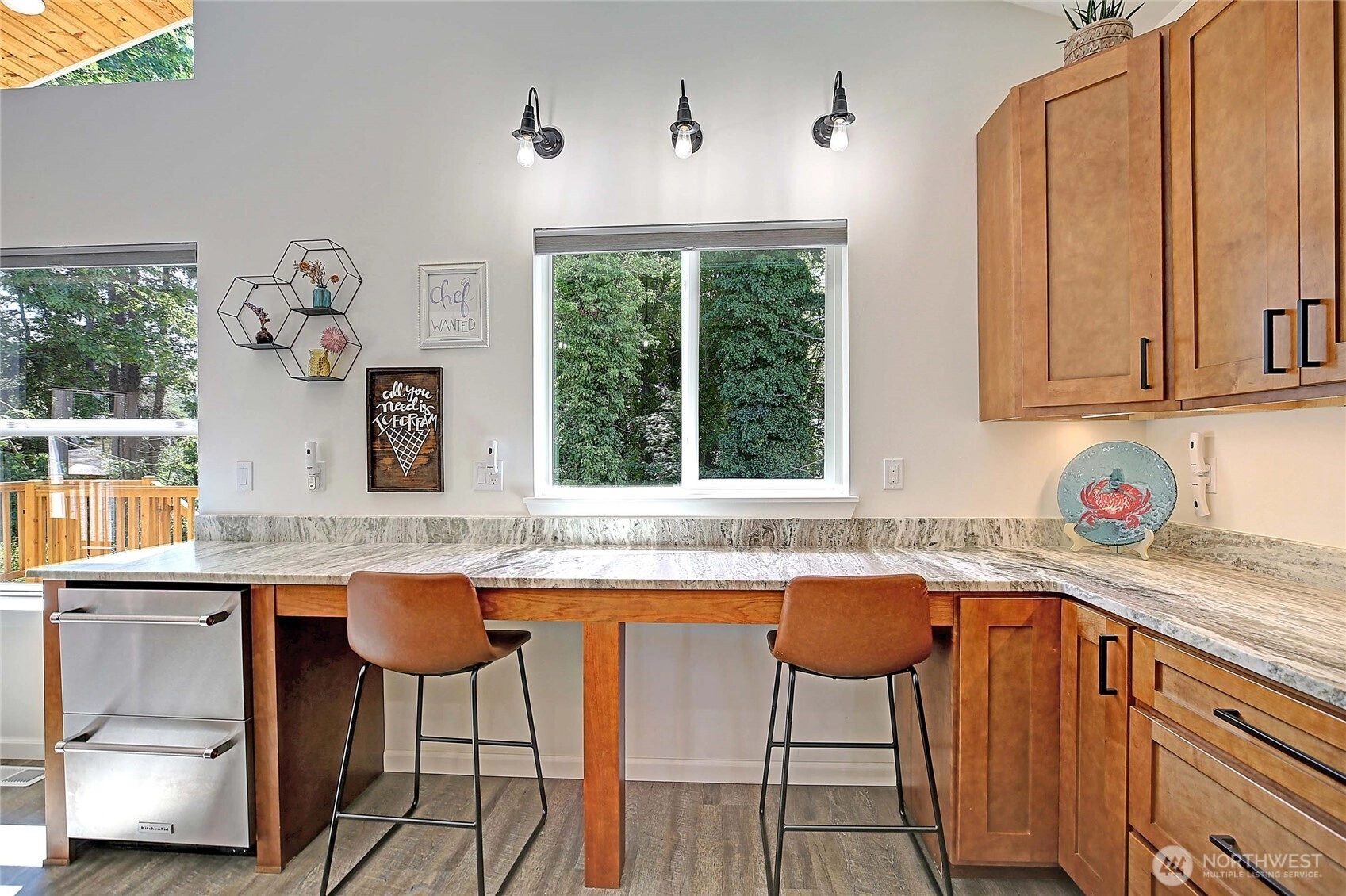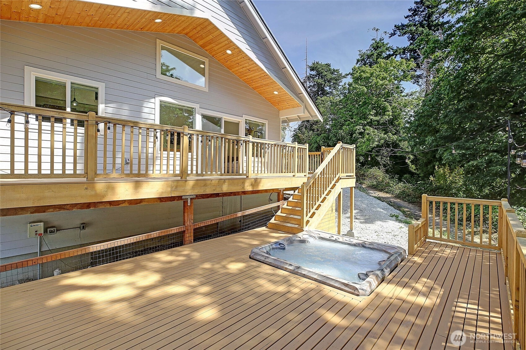 Custom Built, No HOA great STR w/Beach access w/deeded rights to leave small boat at waters edge is just one of the Priceless amenities of this private Newer Home many upgrades. Built for enjoying low maintenance living at its best! Beach Attached in your front yard, No Waterfront Taxes. 2 Bedroom Two Bath w/in closets home was built for a lifetime of Memory Making. Stunning Chef's style Kitchen with Pot Filler Faucet, Large Island, Deep Sink, and a Walk in Pantry with coffee bar, you could sleep in. Extra Drink/freezer Fridge, Custom Cabinetry w/underlighting. Granite Counters are Leathered Matte Finish. Spacious Laundry room with sink. Deck w/Hot tub, corner lot with 30 amp power set up for RV or shop, Electric Car power, A/C a must see.