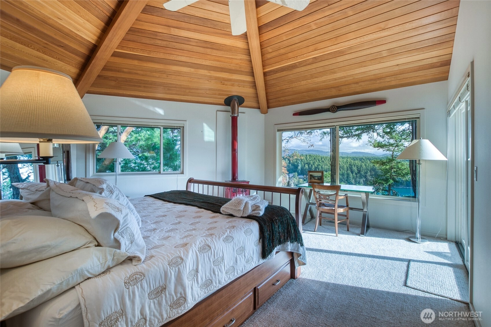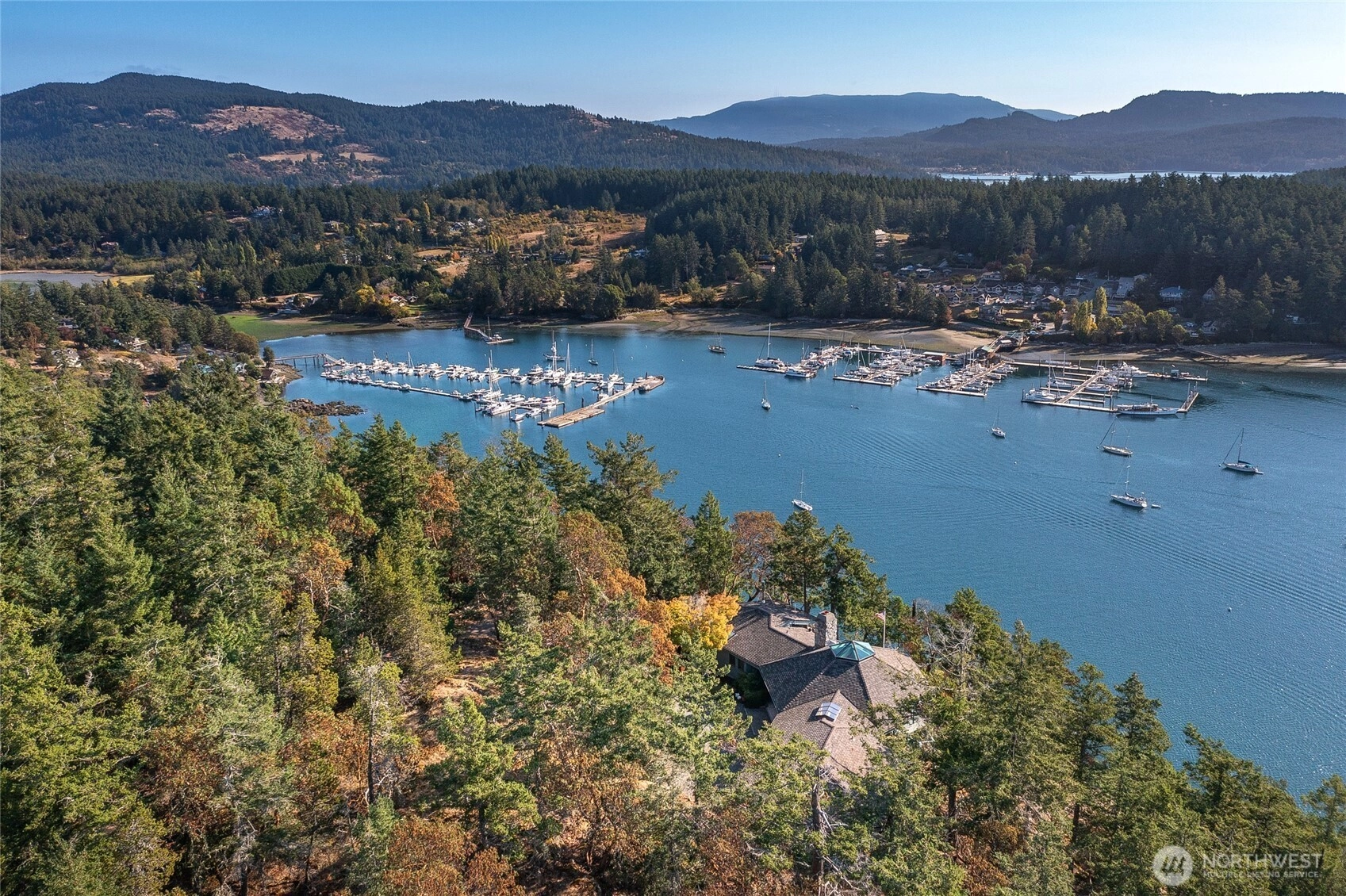 Perched above Deer Harbor, this Roy Lundgren–designed high-bank waterfront home offers a front-row seat to the marine activity of Deer Harbor Marina, with sweeping views of Pole Pass, ferries, sea planes, whale-watching boats, and lively boat traffic. Built in 1994 by skilled local craftsmen and impeccably maintained, this 3,500+ sq ft residence features three ensuite bedrooms plus a bonus room, all filled with abundant south-facing light and vaulted ceilings. An attached two-car garage adds convenience, and two nearby marinas provide excellent access to island recreation. Kenmore Air float planes depart just minutes away, offering fast, direct travel to Seattle for appointments or sporting events. Furnishings are available with sale.