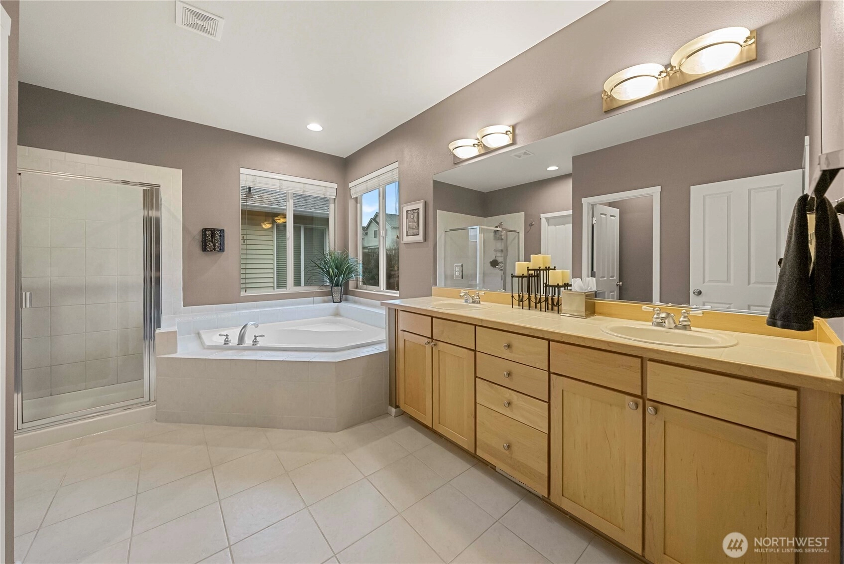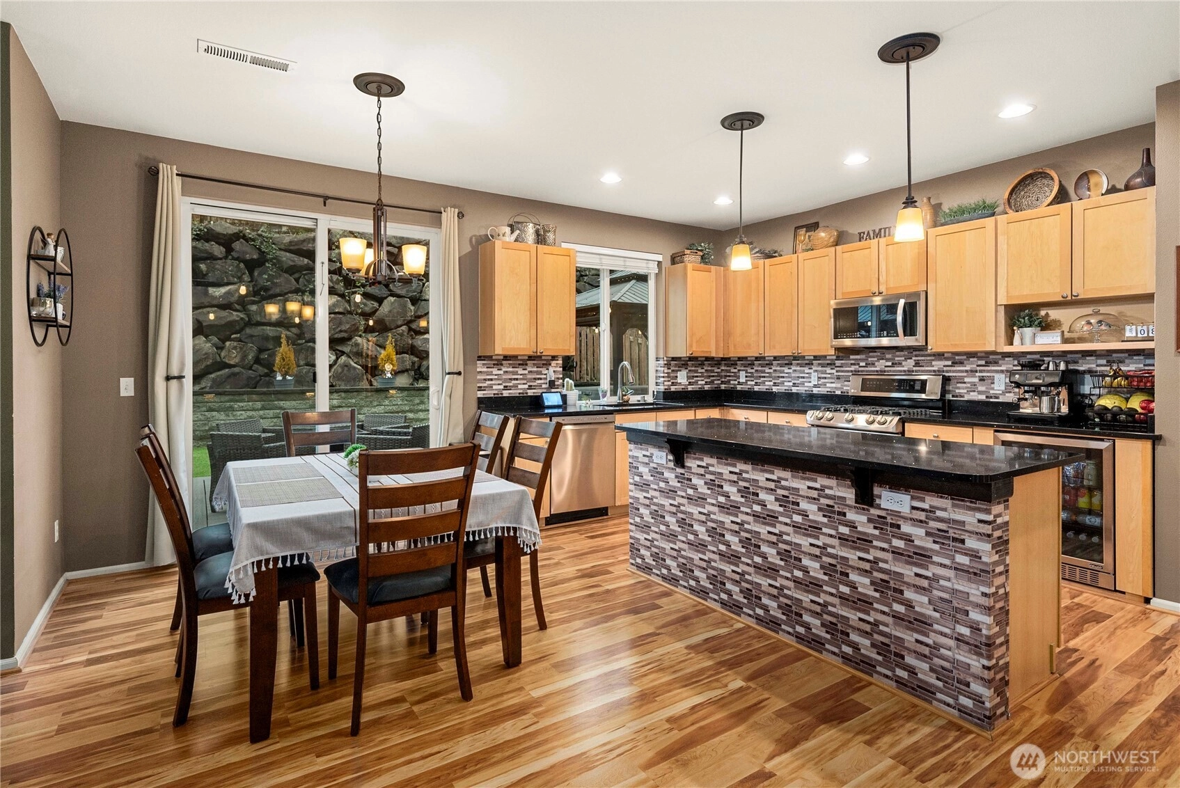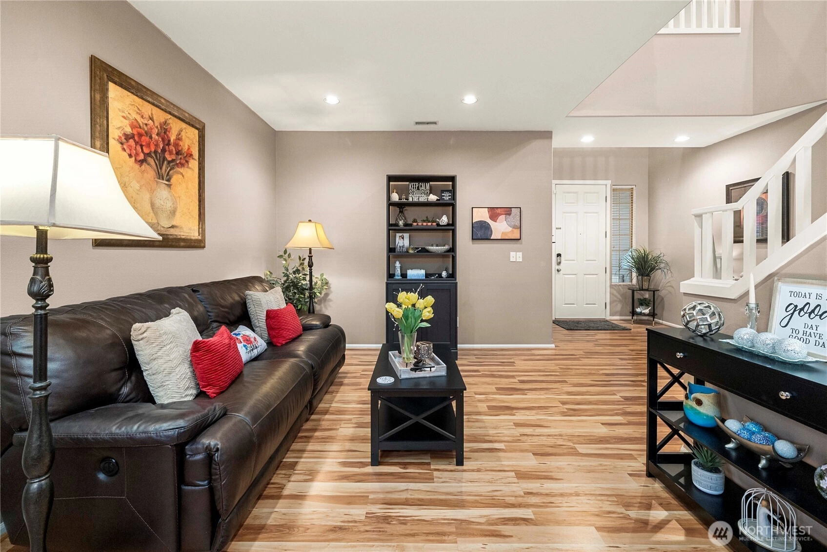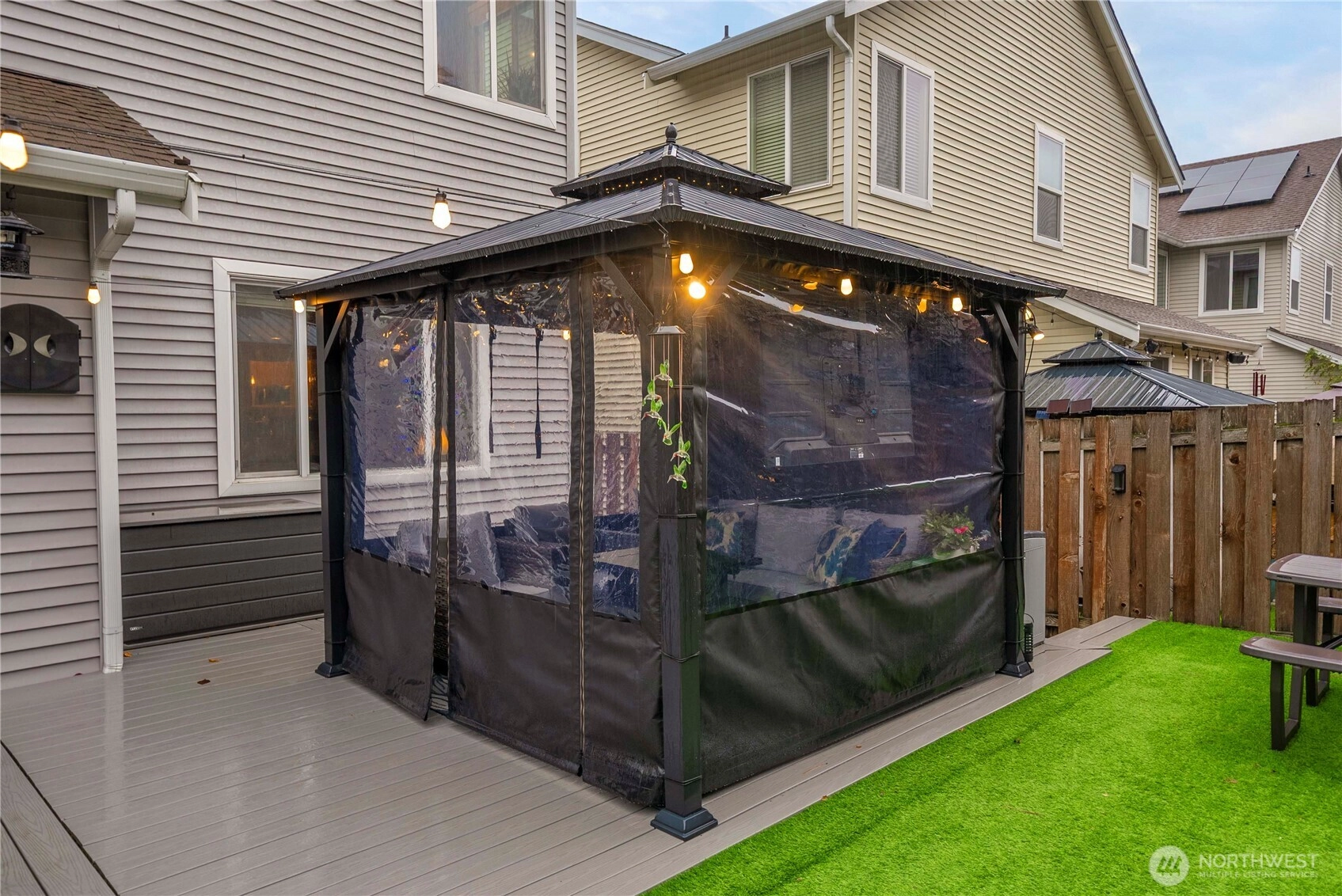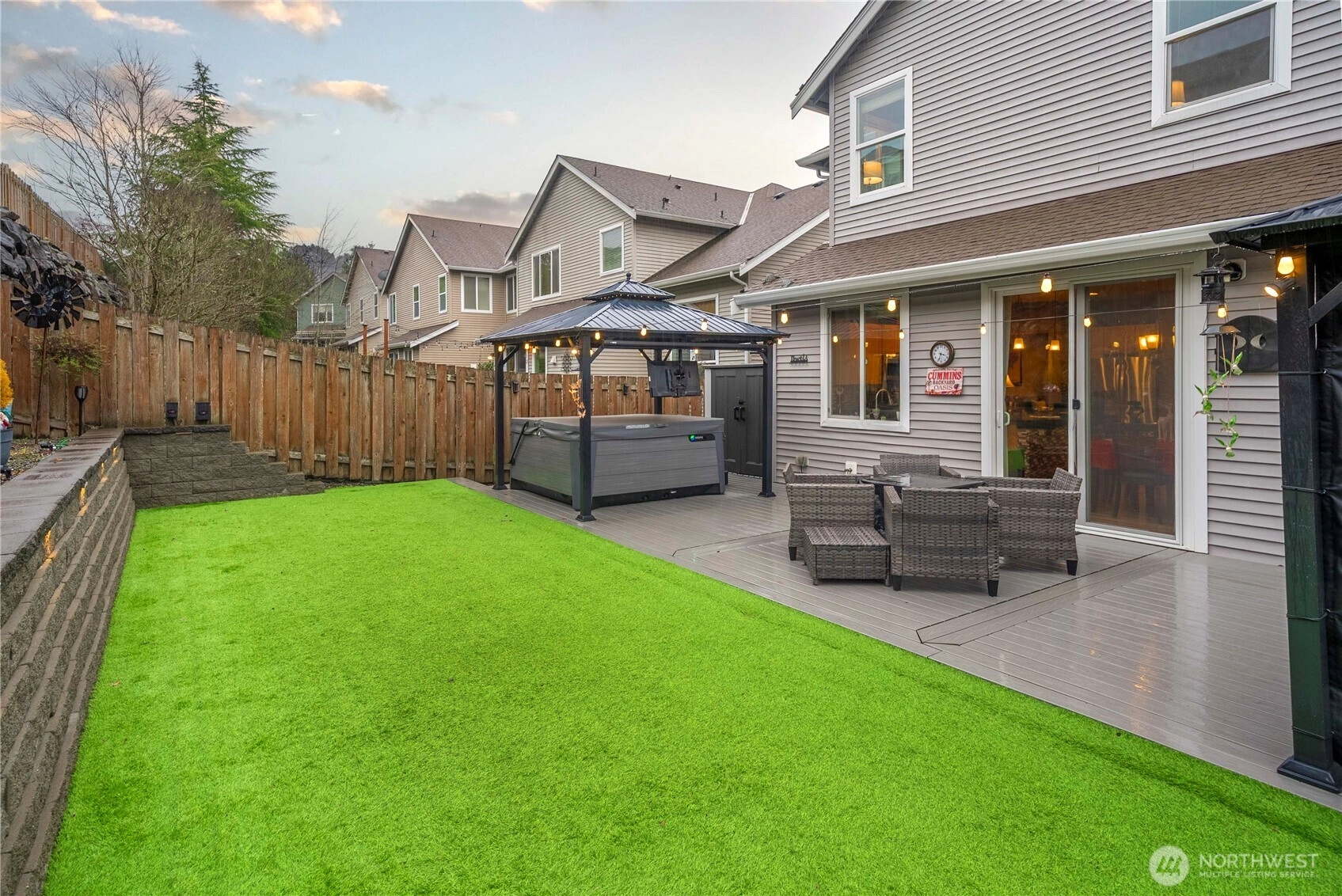 Located in the desirable gated Verona community of Lakeland Hills, this updated home features 5 bedrooms, 3 baths, a 3-car garage, two EV chargers, and a freshly painted exterior. Thoughtfully designed living and dining rooms flow into a beautifully appointed kitchen with new laminate flooring, new countertops, and new appliances. Major 2024 upgrades include a new furnace, water heater, and heat pump/AC. The backyard is a private oasis with turf grass, composite decking, two gazebos, storage, and full fencing—perfect for elevated outdoor living. Enjoy nearby parks, walking paths, shopping, dining, the park-and-ride, and quick access to Lake Tapps County Park. One owner home.
