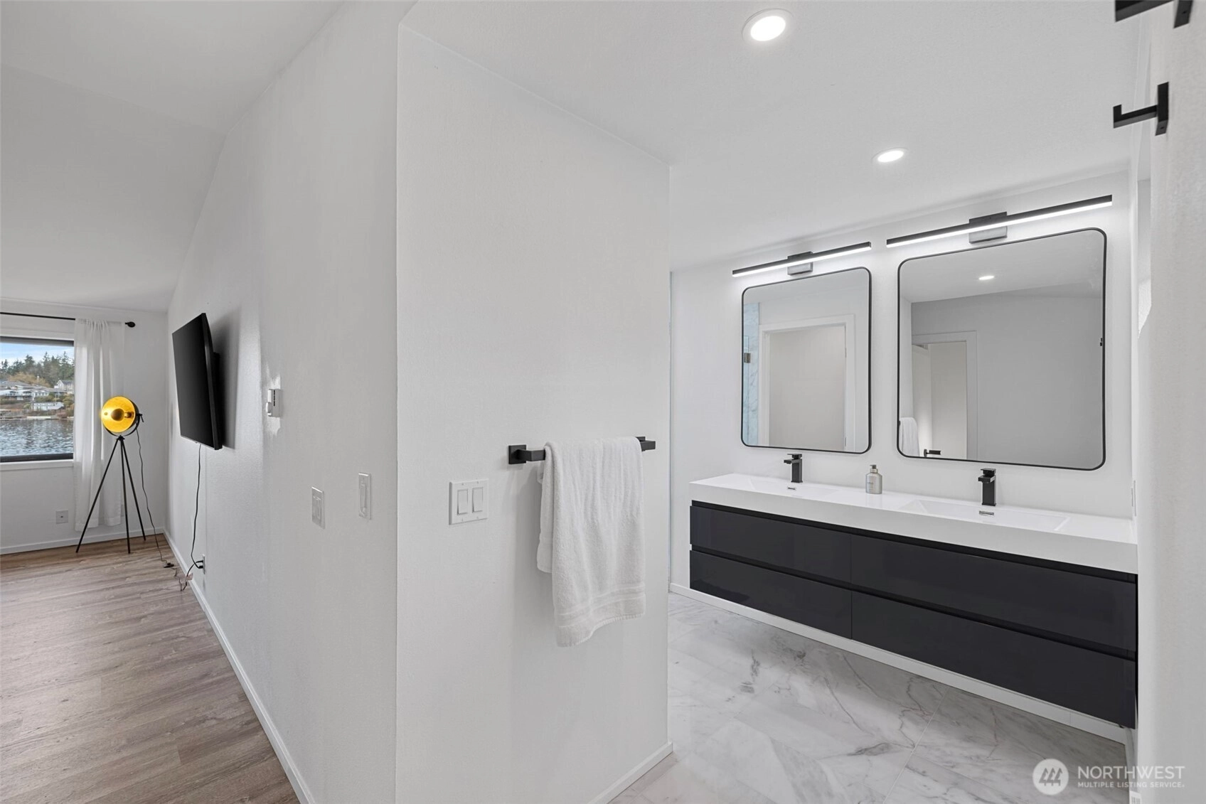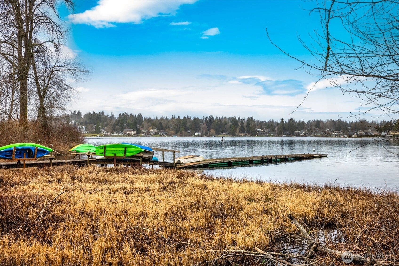 Discover stunning water views and sophisticated modern finishes in this lakefront condo in Lake Stevens, featuring two luxurious owner’s suites and the flexibility of upper and lower living rooms. Just a short stroll from Old Lake Stevens, this home offers a lifestyle as serene as its surroundings—enjoy morning coffee on the rear deck while watching the resident eagles nest, then launch a paddleboard from the quiet cove for a peaceful glide on the lake. Thoughtfully remodeled from top to bottom, the spa-inspired bathrooms showcase Carrera marble that beautifully complements the elegant fireplace. Exterior updates include fresh paint completed in 2025, ensuring this home is as turnkey as it is inviting.
