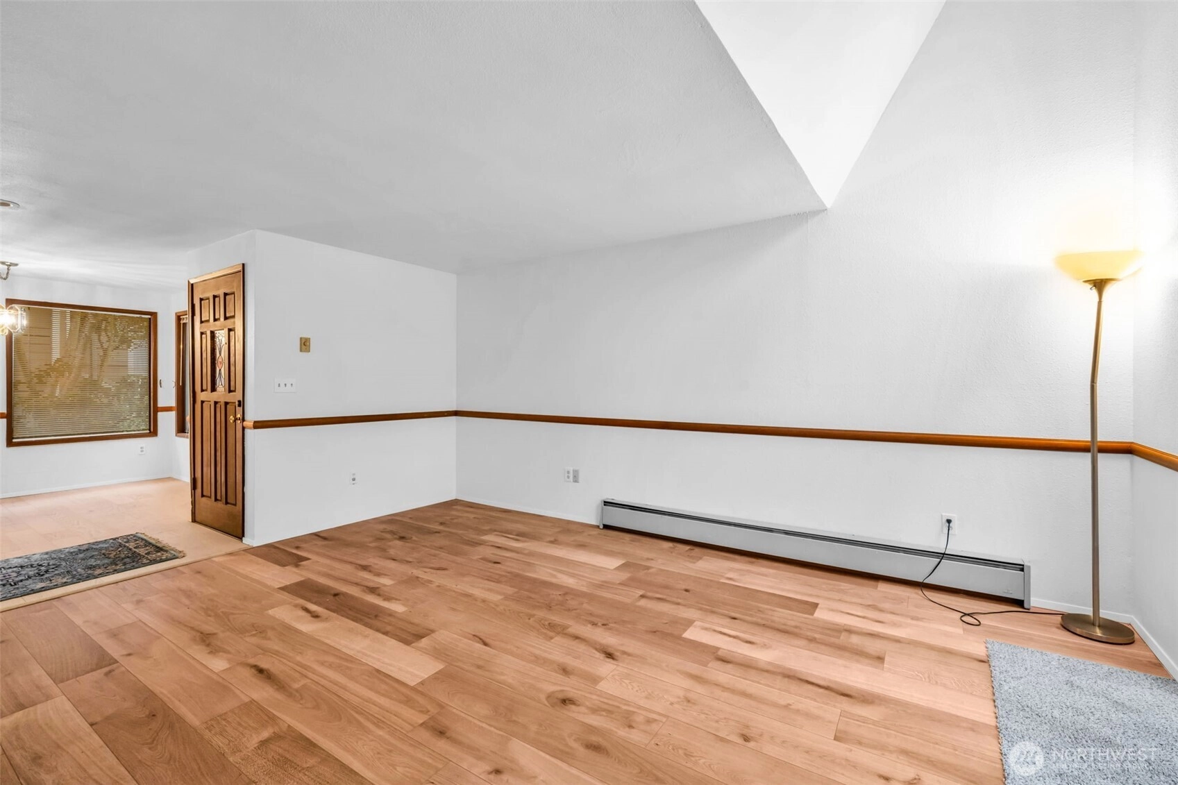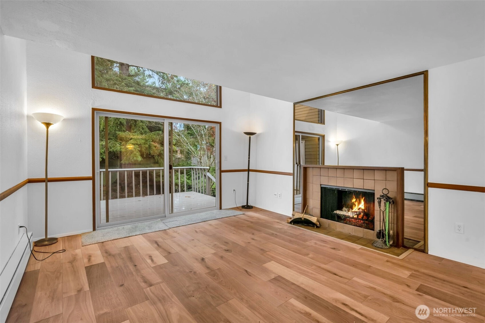 Welcome home to Bellevue's Regents Park. This inviting unit has been updated with fresh paint, new kitchen countertops, and fresh hardwood floors. This move-in ready unit and comfortable floorplan provides 2 Bedrooms/2 Bathrooms, large deck/balcony, and plenty of storage space. The vaulted ceilings allow the natural light to flow right in. Customize the living spaces to your own style and design. 2 deeded parking spaces. The location of this unit cannot be beat. You are steps away to all that downtown Bellevue has to offer with Bellevue Square, dining, main transit centers, and a quick drive to 405 and I90.
