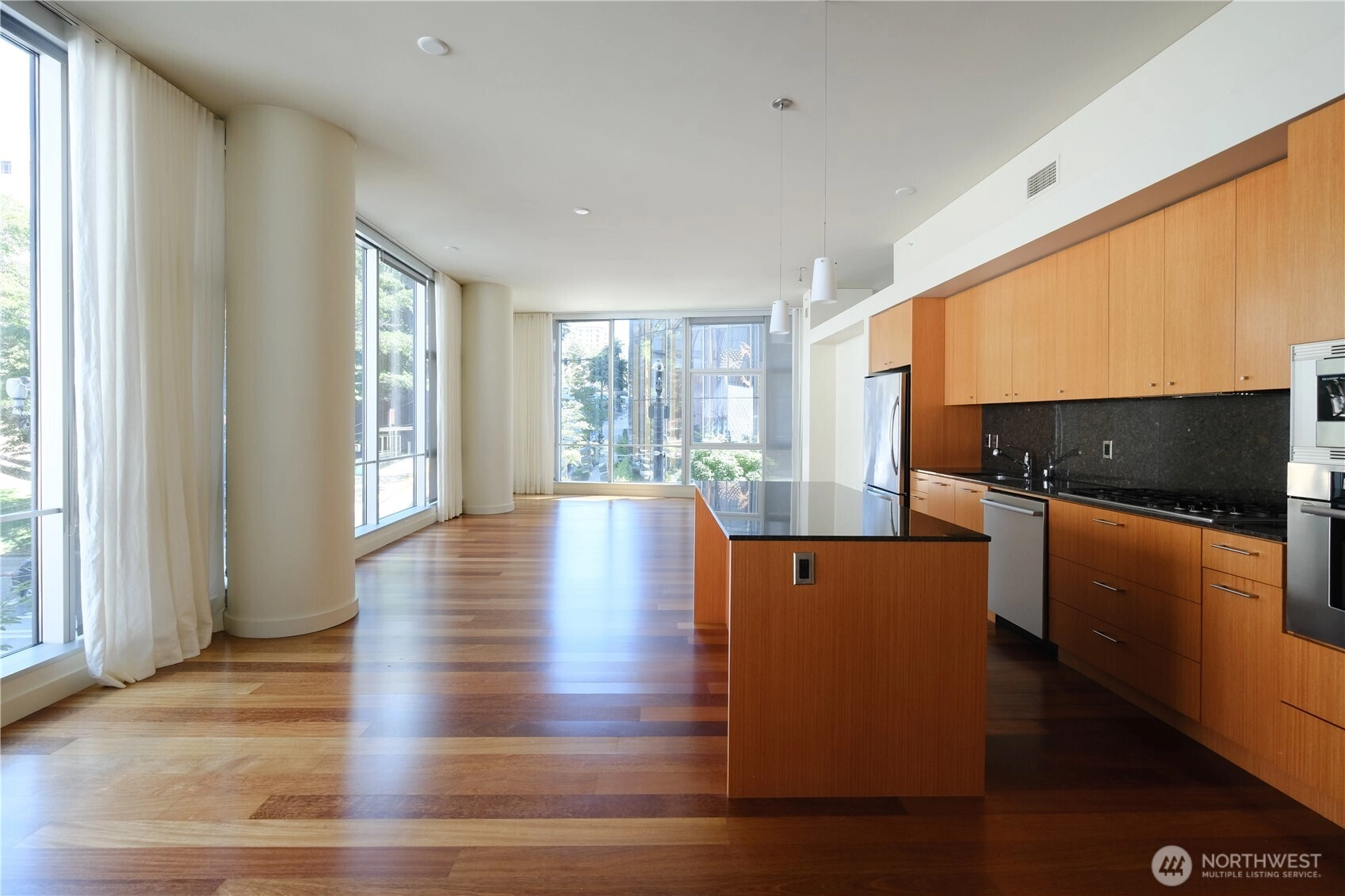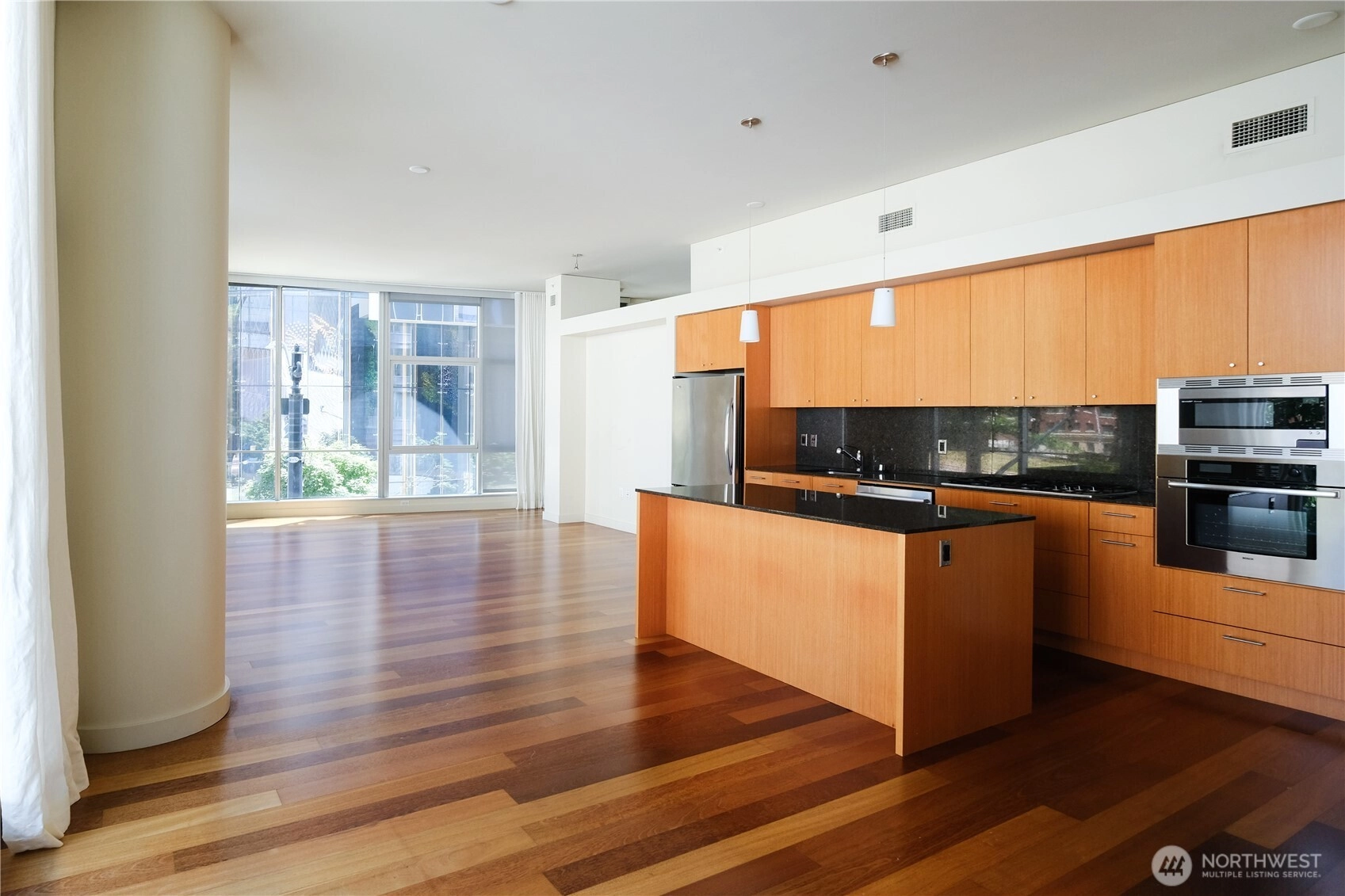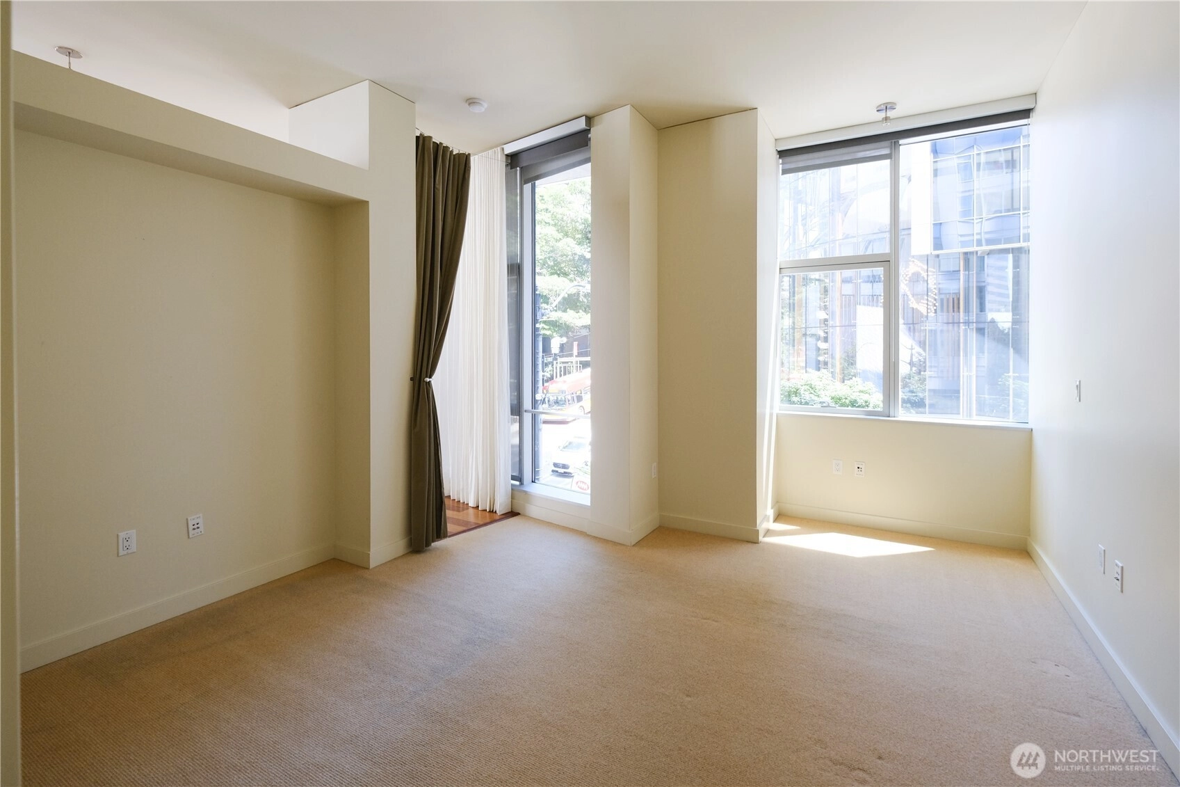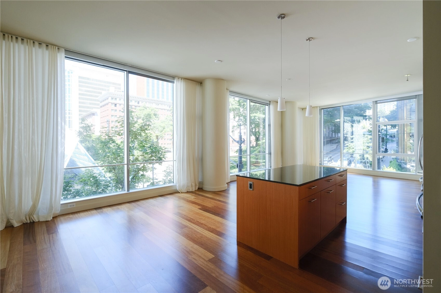 Experience the best of urban living in the heart of Downtown Seattle. This spacious and light-filled unit features custom curtains and with a renovate walk-in closet designed for maximum organization and elegance. Enjoy the convenience of having everything just step from your door-renowned restaurants, shopping, coffee shops,and entertainment. The iconic Seattle Public Library's architectural masterpiece is just around the corner, and the waterfront, Pike Place Market, and transit options are all within easy walking distance. This move-in ready condo offers the perfect blend of luxury, comfort, and walk-able city living. Don't miss your chance to make it yours!