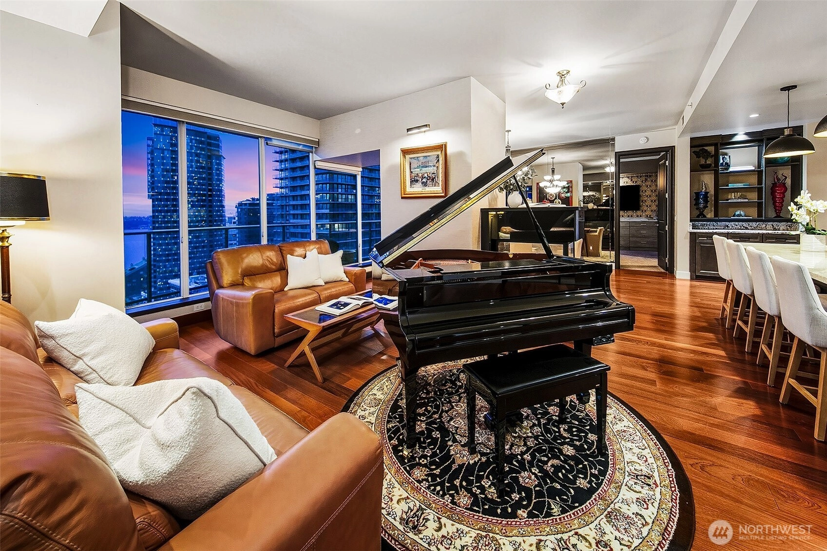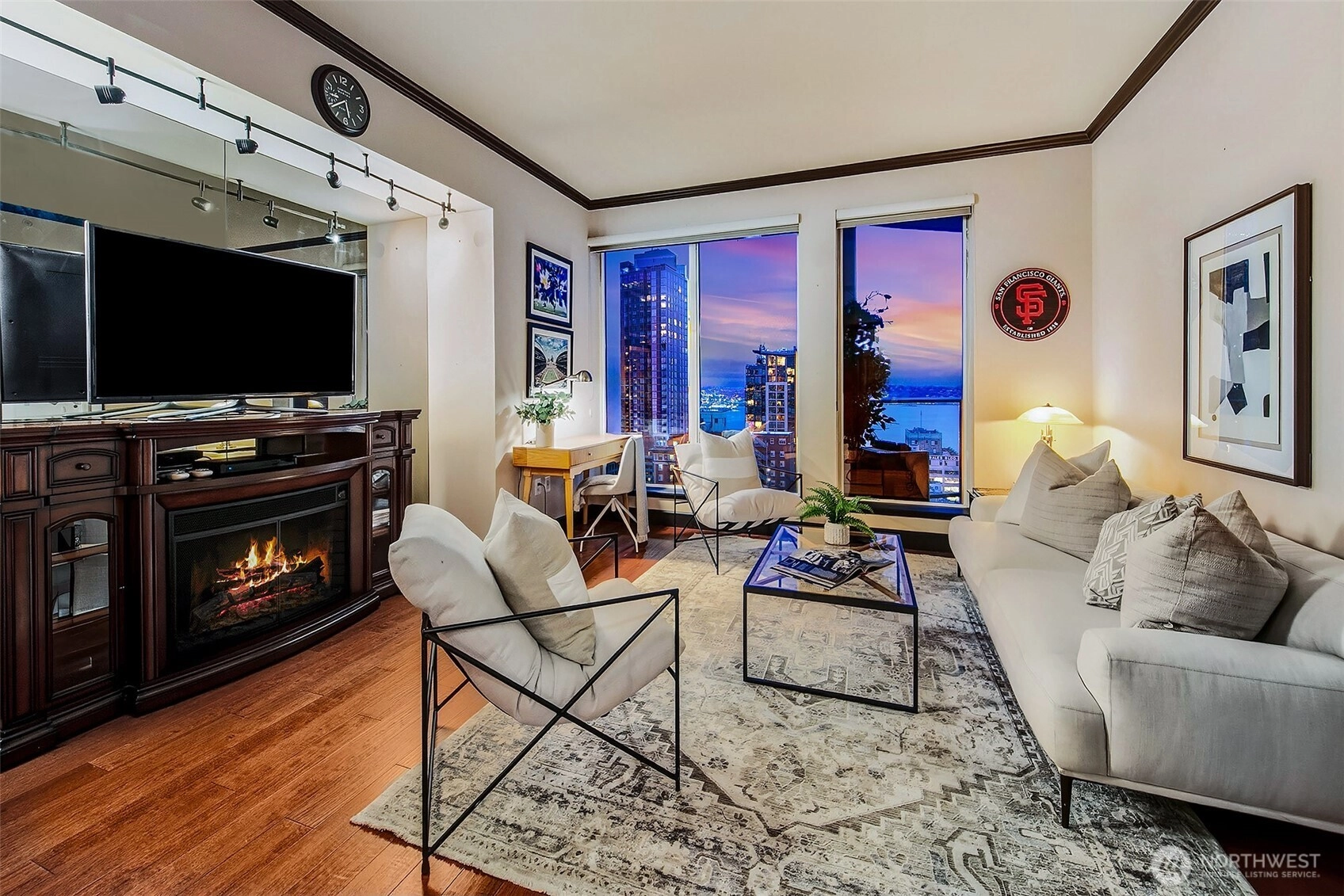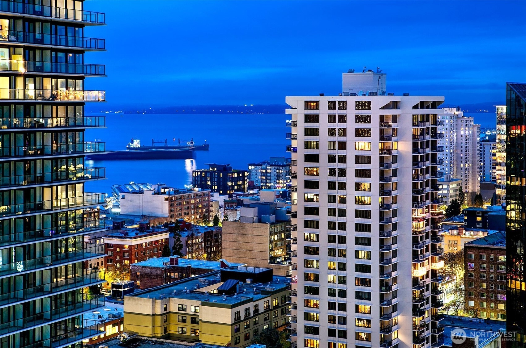 Penthouse style luxury at Escala- 23rd floor Coveted Private Vestibule near 2000 sqft- west facing water,city & mountain views.Only 10 of these floor plans in ESCALA. Unwind to the evening glow of city lights & dreamy sunsets, flanked with walls of floor to ceiling windows. Sun drenched by day -sparkling by night. Designer touches through out the home, beautiful open-concept design lovely flow between living, dining, & kitchen. Oversized slab stone island, gas cooking & cozy gas fireplace. Enjoy 2 oversized primary suites- spa like bath, amazing wardrobe room. Hardwoods throughout home.World class building & Location 24/7 staff on site- be sure to ask about all amenities.2 lap pools,sauna, fitness center.2pk 1stg.Ev capacity.