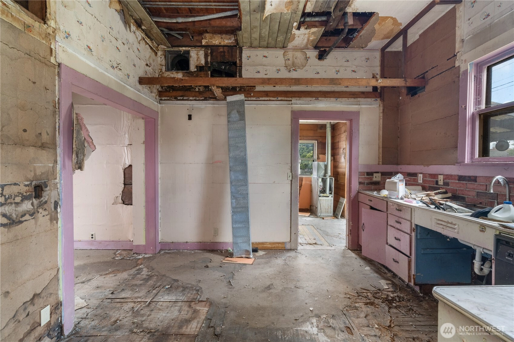 Your chance to own an old historic home in Hoquiam! Built in 1890!! The house has been stripped down to the old growth wood bones in most of the house just waiting for the right person to bring it back to life. They really don't make them like this anymore. Huge living area with the tallest ceilings in town, spacious kitchen area, windows galore letting in so much natural light, original wooden staircase leads upstairs. House is currently set up for 5 bedrooms. Lots of potential for new decks, outdoor entertaining and garden space. Huge double city lot with detached garage. Come take a look and be inspired to revive this beauty!!