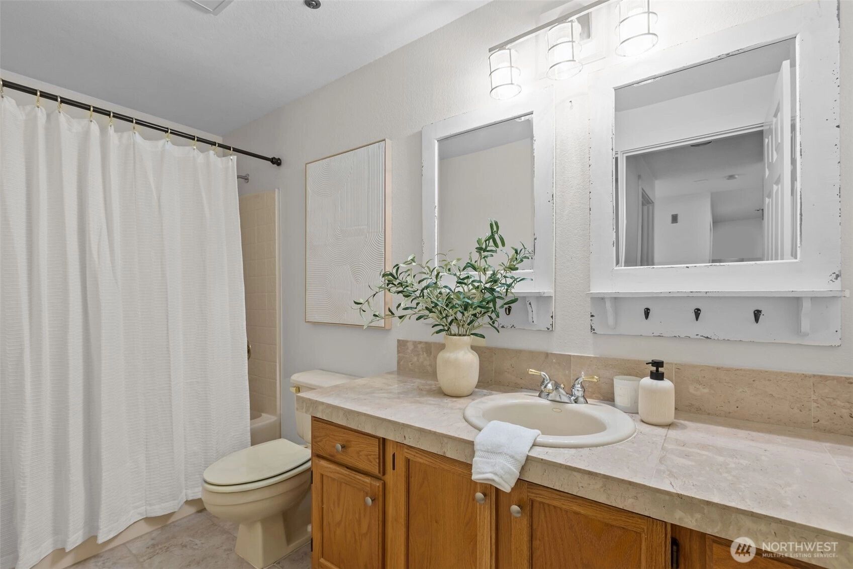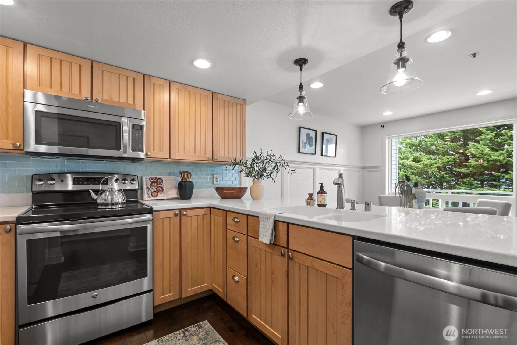 Amazing opportunity to live in a serene and secluded location with a stunning view of the sound and olympics. The living room opens to a spacious deck, perfect for entertaining on lazy afternoons. Updated kitchen, with granite countertops, stainless steel appliances, the primary suite includes an ensuite bath with a walk-in shower, both bedrooms feature walk-in closets. This condo provides luxury & convenience - storage both inside & in the secure underground garage. Walkable to Redondo Beach, and easy access to retail, parks, and major freeways, this home combines peaceful living with easy access to everything you need.