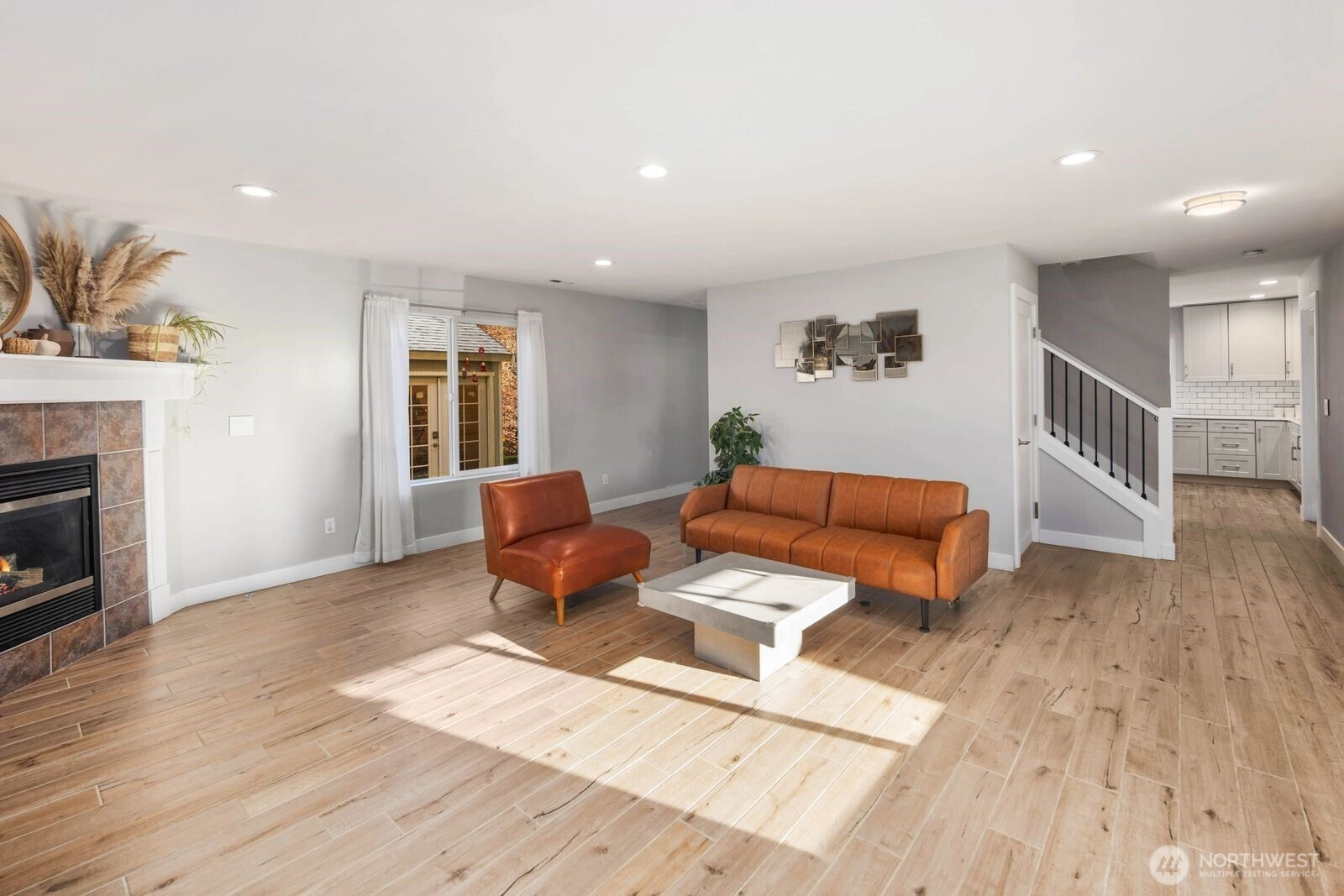 What a find in Liberty Ridge! A refreshed & renewed home awaits you with newer modern-styled island kitchen, backsplash tiling, cabinets & stainless appliances. Updated doors, trim, lighting, and fixtures throughout. You're greeted by a spacious & bright living room w/ gas fireplace, durable & stylish tile flooring, overlooking the large backyard. Expansive primary with large ensuite and walk-in closet. 2 additional bedrooms upstairs and a shared bath. Generous pantry and laundry pass through to the 3 car garage prepped for EV charging. Large greenbelt protected private backyard with room for gardening, a patio for a firepit, dog run & an added bonus: a fully powered & heated shed, great for an office-home workout. This is a gem!