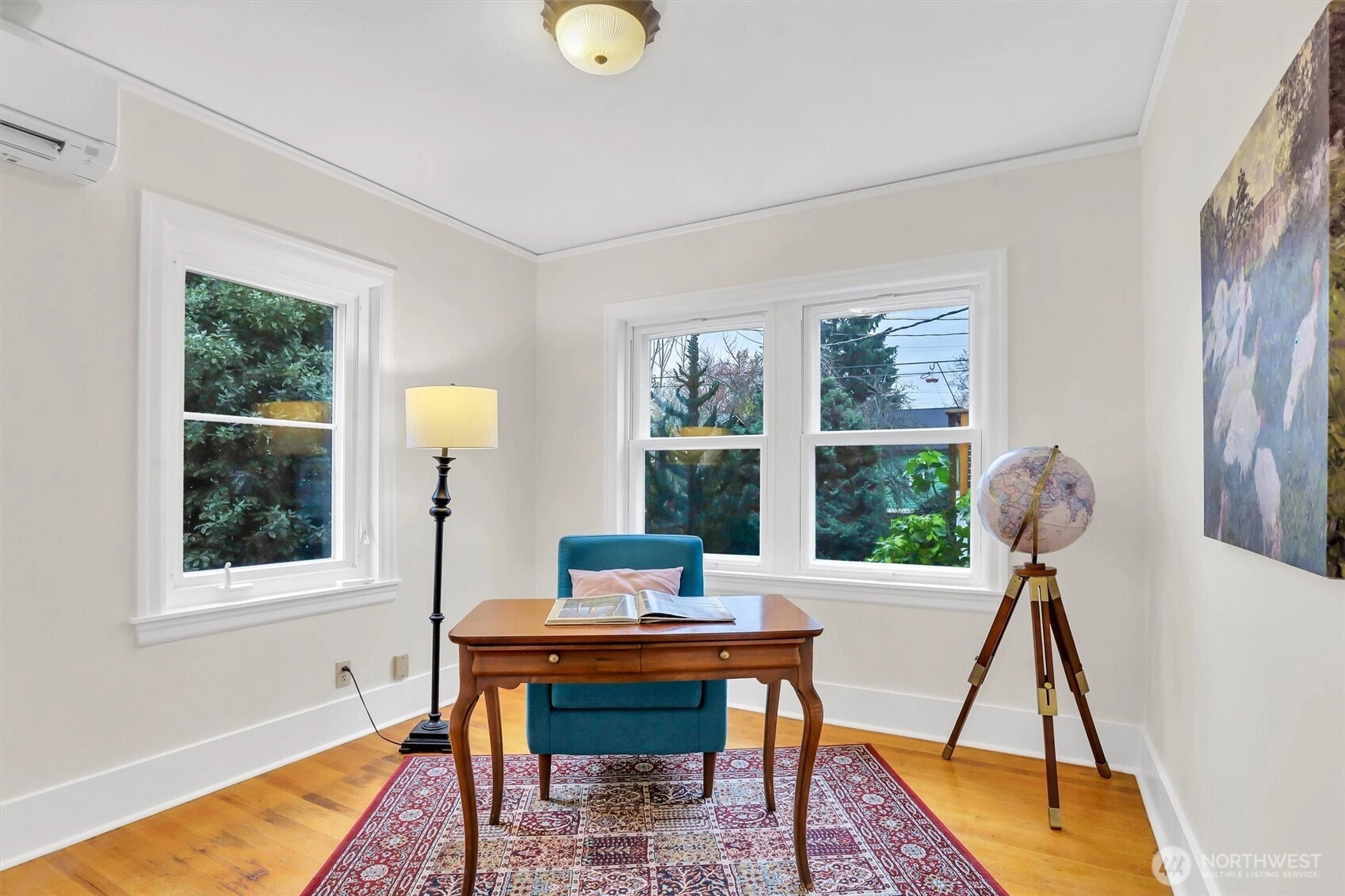 Imagine holidays in this picture-perfect Georgetown Storybook Tudor! Classic tree-lined street blocks from restaurants, pubs, coffee shops, & more - just minutes from DT Seattle. Classic 1930's features include gorgeous Batchelder tile fireplace & hardwood & ceramic floors. Striking remodeled kitchen w/marmoleum floor, italian tile &breakfast nook. Updated electrical, heat pump w/ A/C, & unfinished basement w/ great ceiling height - potential for family room, craft space, workshop, or additional ADU. Detached 2-Car garage on alley built in 2013 w/ DADU studio above (420sf) including full kitchen, bath & huge 2nd story deck. Car charger & extra laundry hook ups for maximum flexibility. The best of new and old worlds right here!