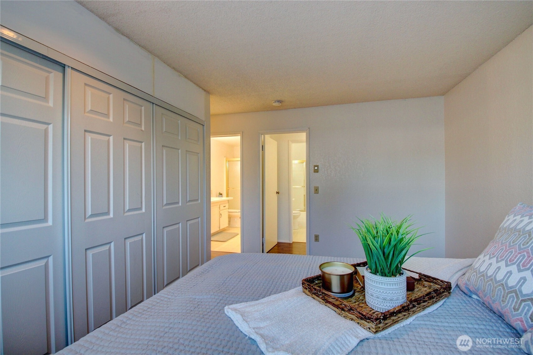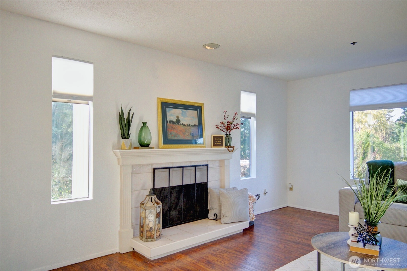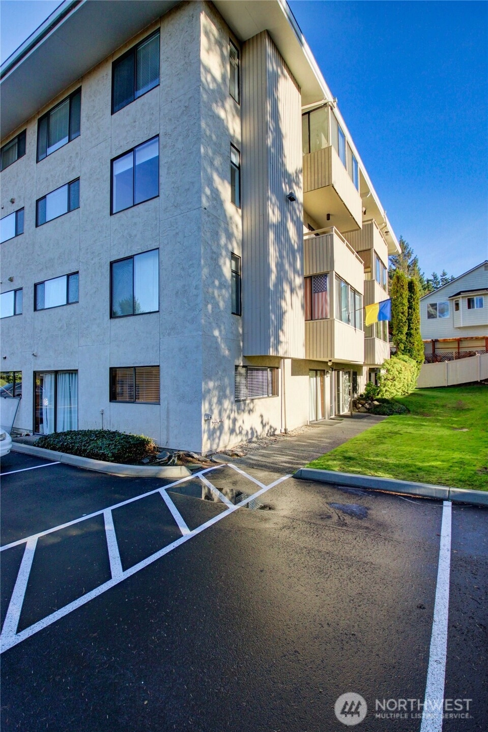 Welcome home! This inviting gated condo in the heart of Lynnwood offers comfort, style, and convenience. Just minutes to the transit center, light rail, shopping, and dining. The spacious 1,025 sq. ft. third-floor unit features fresh paint, southern facing balcony, hardwood floors, a cozy wood-burning fireplace, and a bright kitchen with quartz counters and abundant cabinetry. The primary suite includes large closet and an ensuite with a walk-in shower. Enjoy in-unit laundry and community amenities including party room, library, fitness center, sauna, and secured storage. HOA fee includes water, sewer, garbage. Complex offer zero entry to elevator, or you can take the stairs. 2 parking spaces #47 and 8. Come see it today!