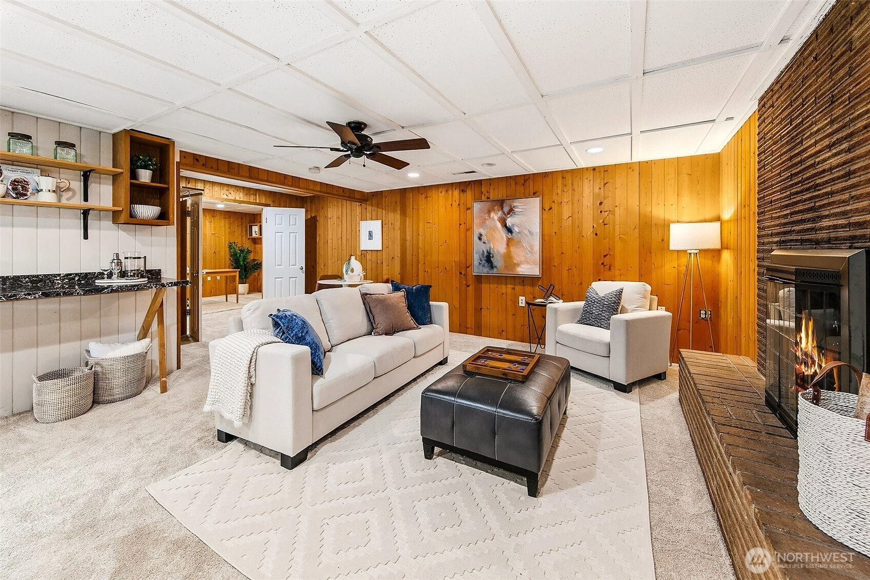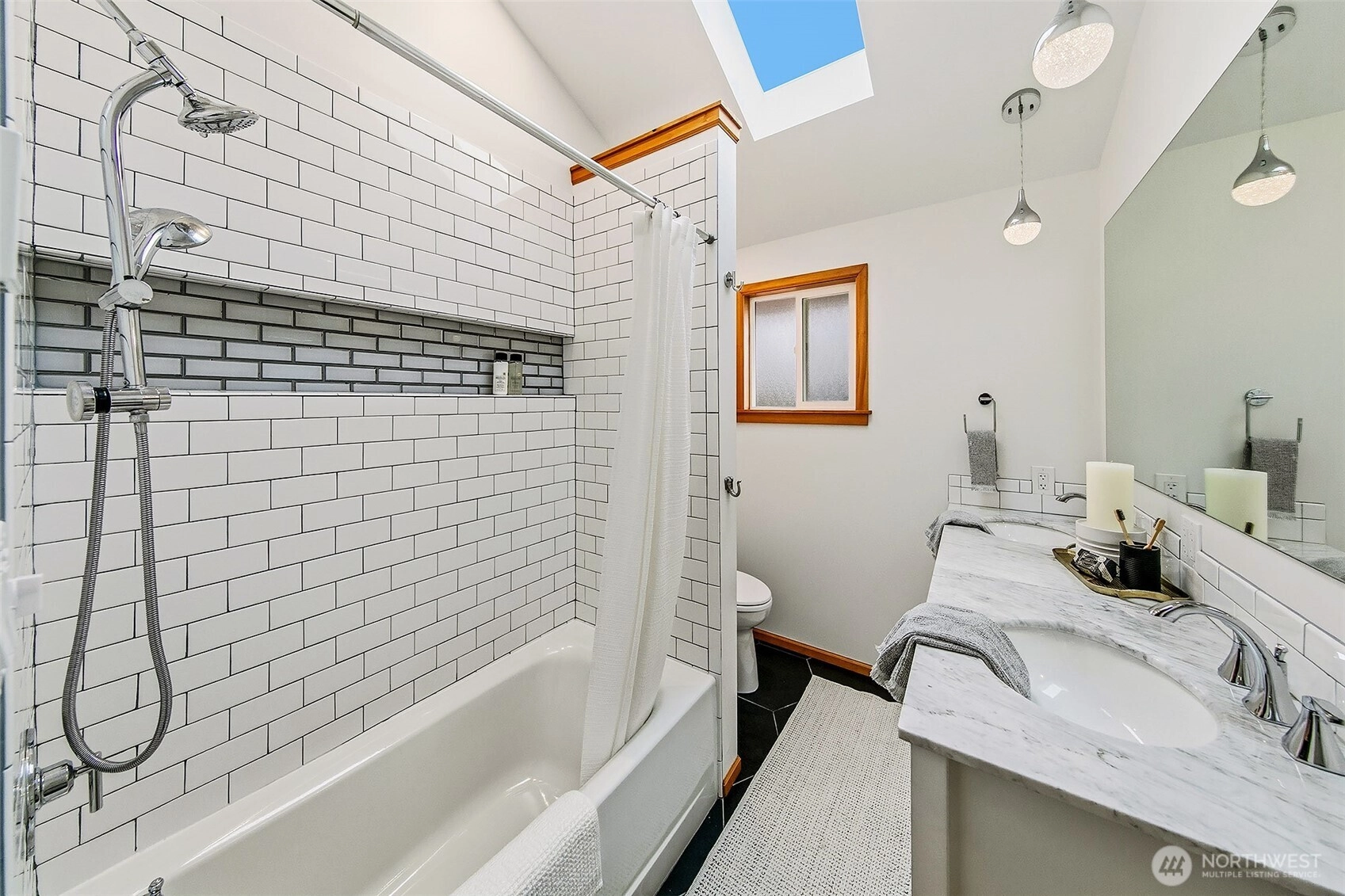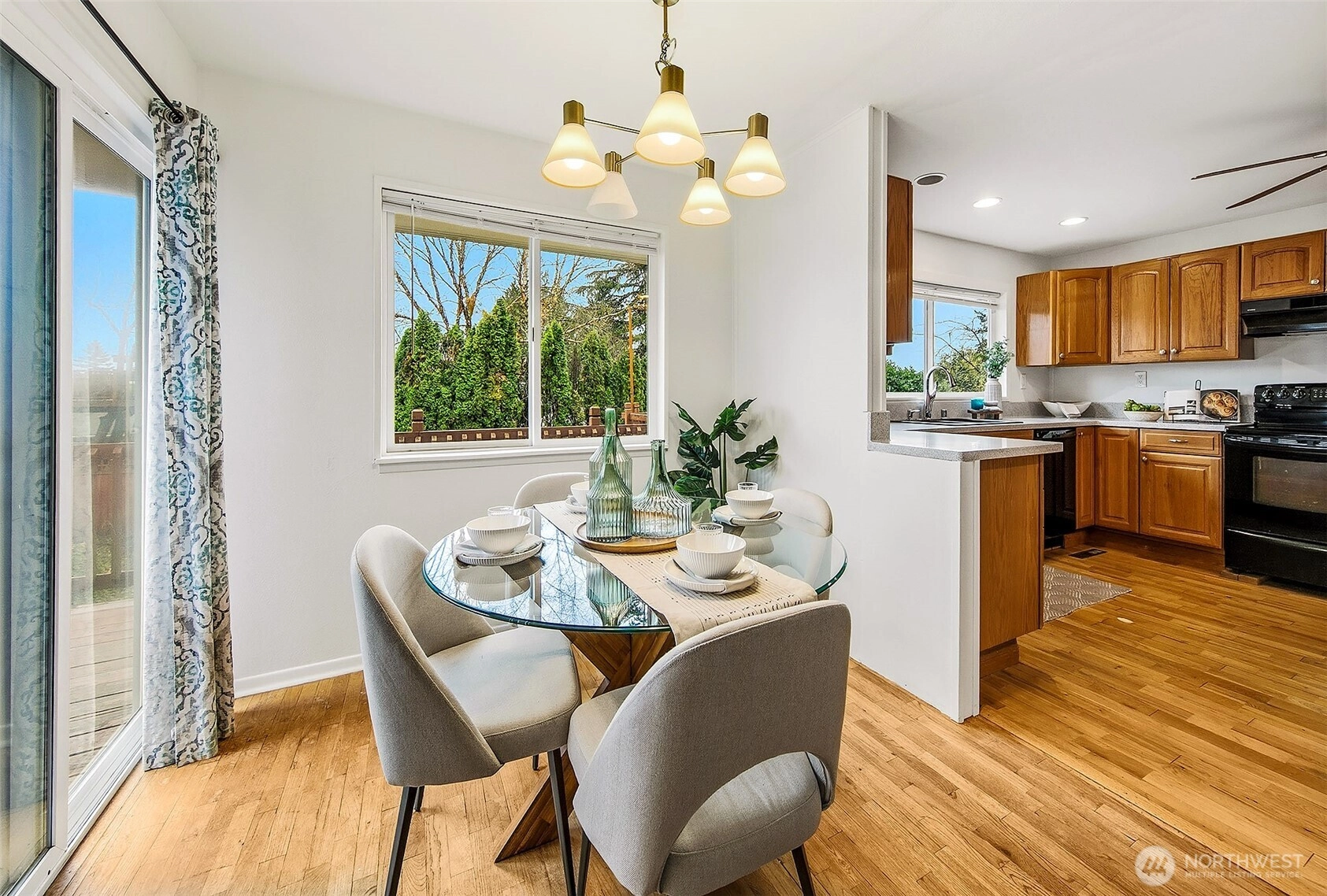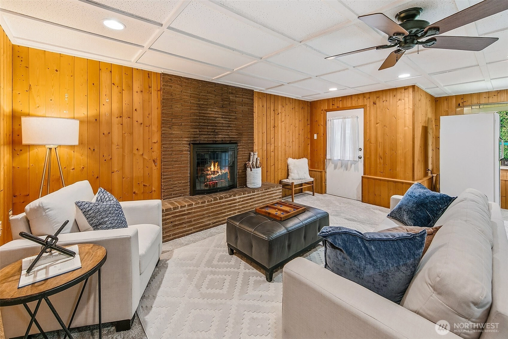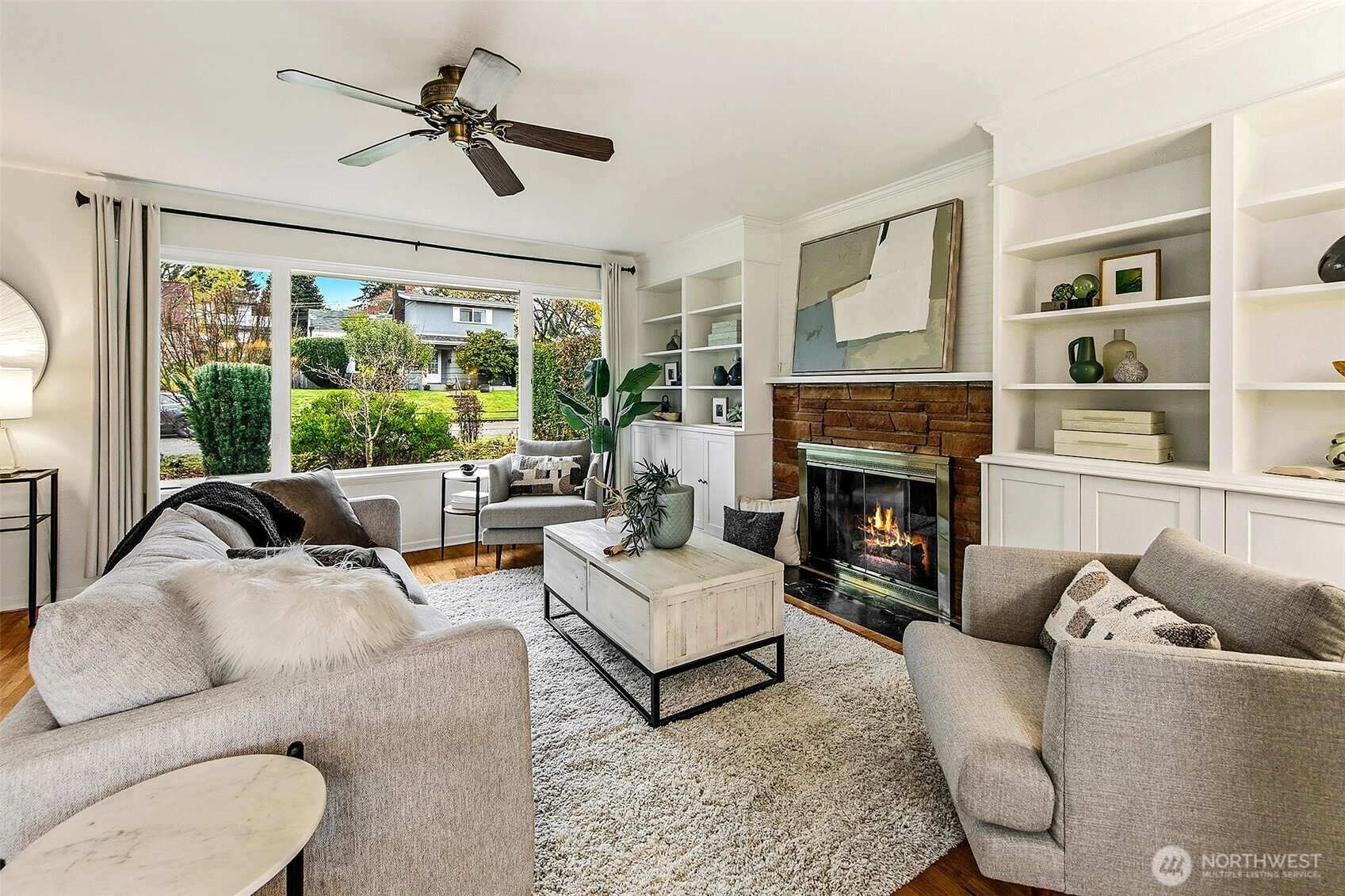 Welcome to this classic 1955 rambler nestled on a quiet street in the Fauntleroy/Gatewood neighborhood of West Seattle. Step inside to find hardwood floors, large picture windows that flood the living spaces with natural light, and a cozy gas fireplace with built-ins, perfect for cool Seattle evenings. The kitchen features clean lines and efficient design, opening to a spacious dining area, large deck and huge private backyard - ideal for gatherings or outdoor living. Three comfortable bedrooms and a remodeled full bath on the freshly painted main floor. Daylight lower level with rec room, 3/4 bath and kitchenette perfect for entertaining and relaxing. One car attached garage. Great location near parks, schools and shopping!
